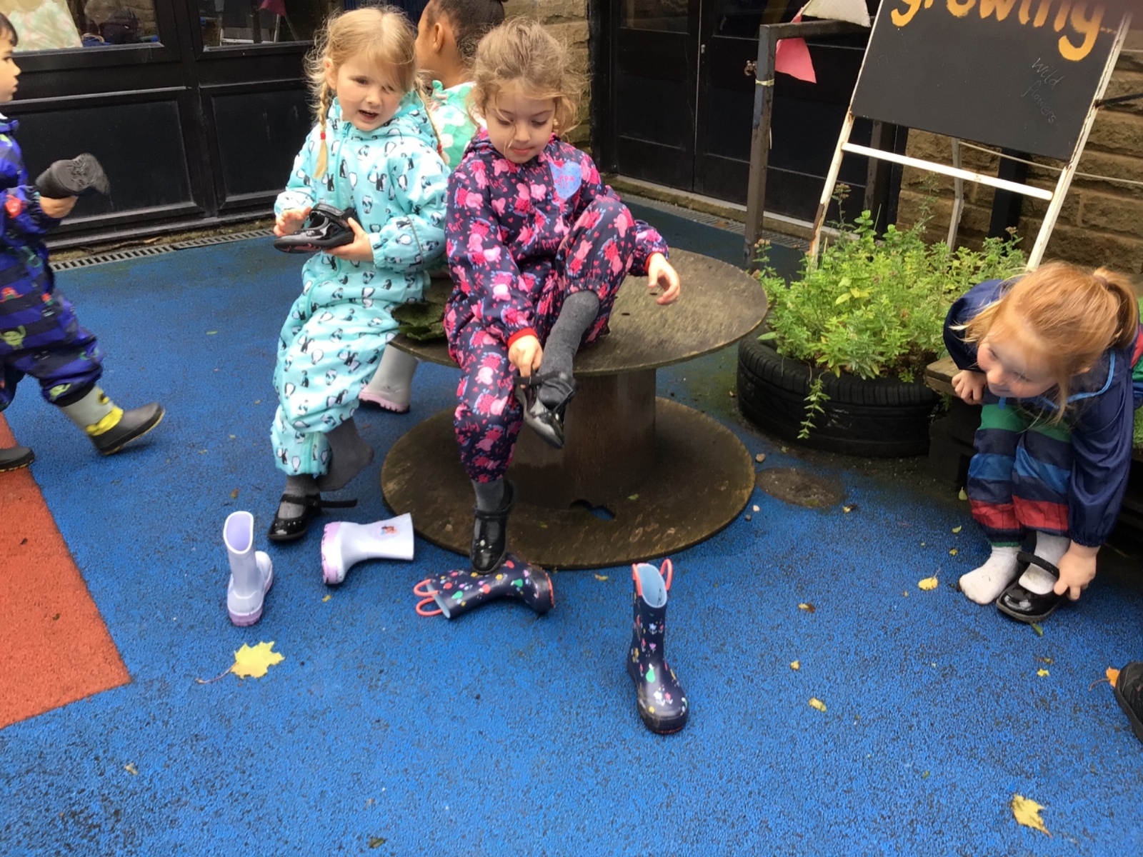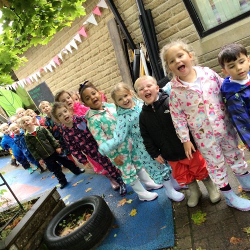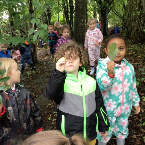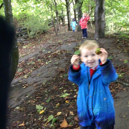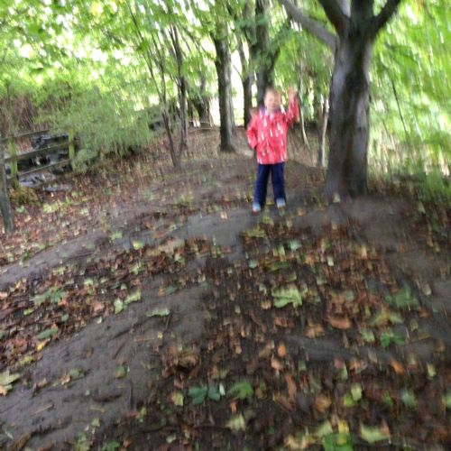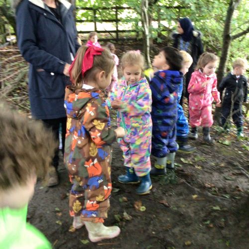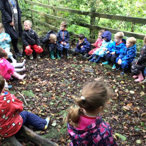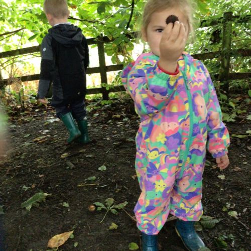 This week we put on our wellies and puddle suits to go and explore our woodland area. We talked about our safety rules and all the fun things we can do on 'Welly Wednesday'. We collected some treasures to put in our nature tray.