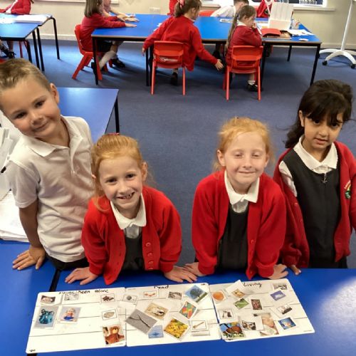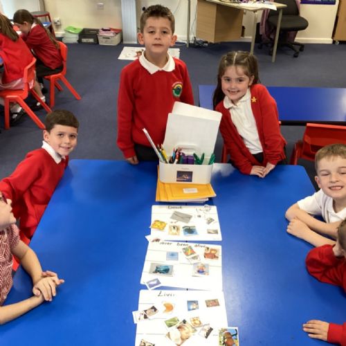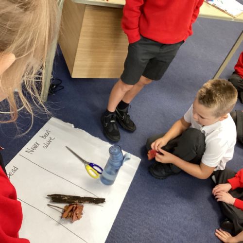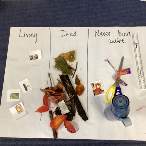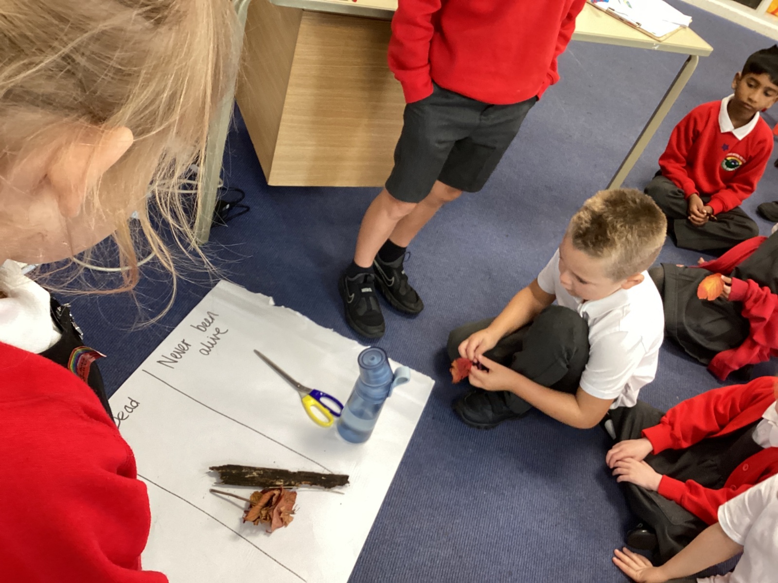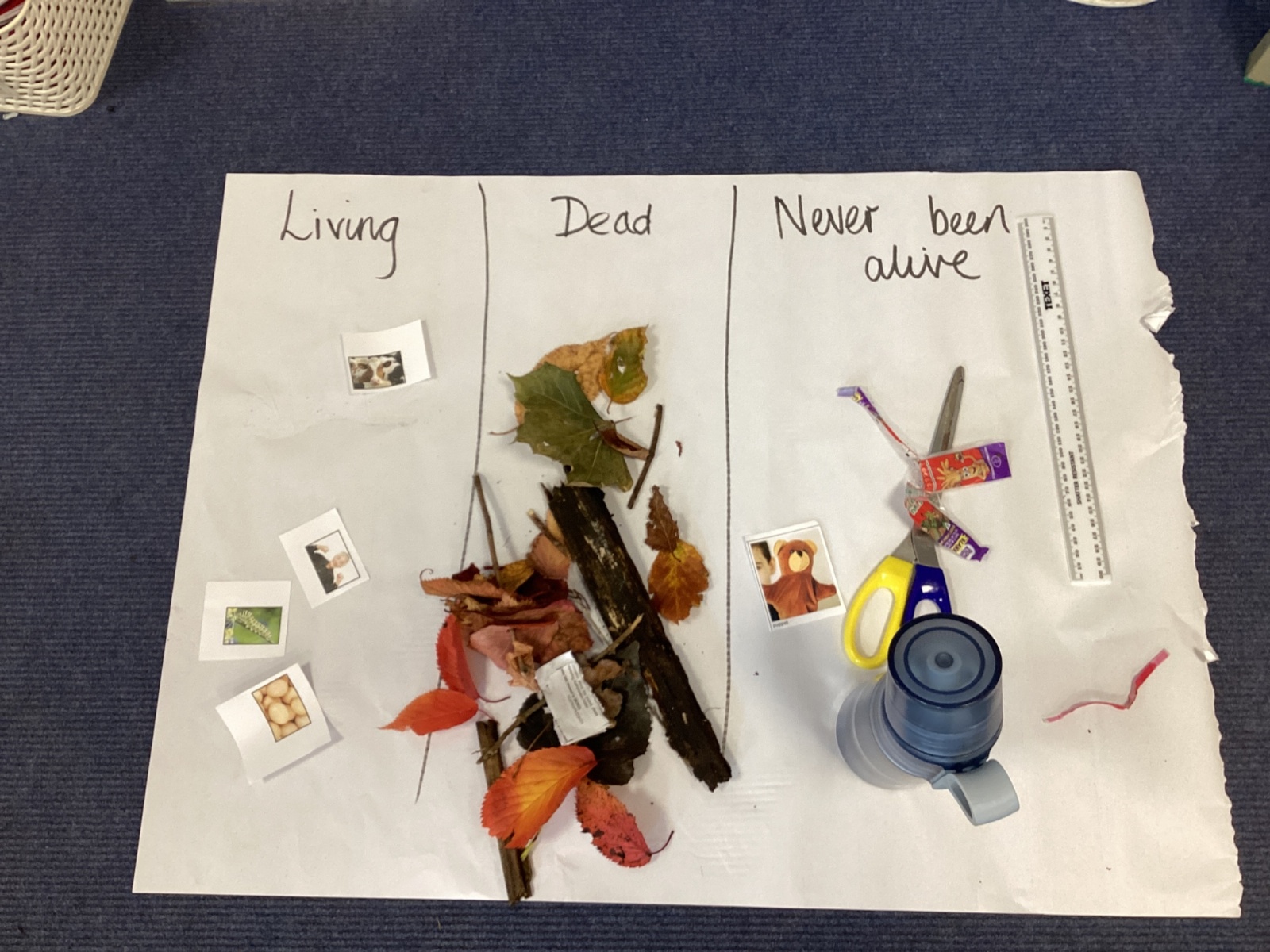 Some great effort in writing using conjunctions. We also had a great time exploring the outdoors and looking for objects that were either, living, dead, or never been alive!