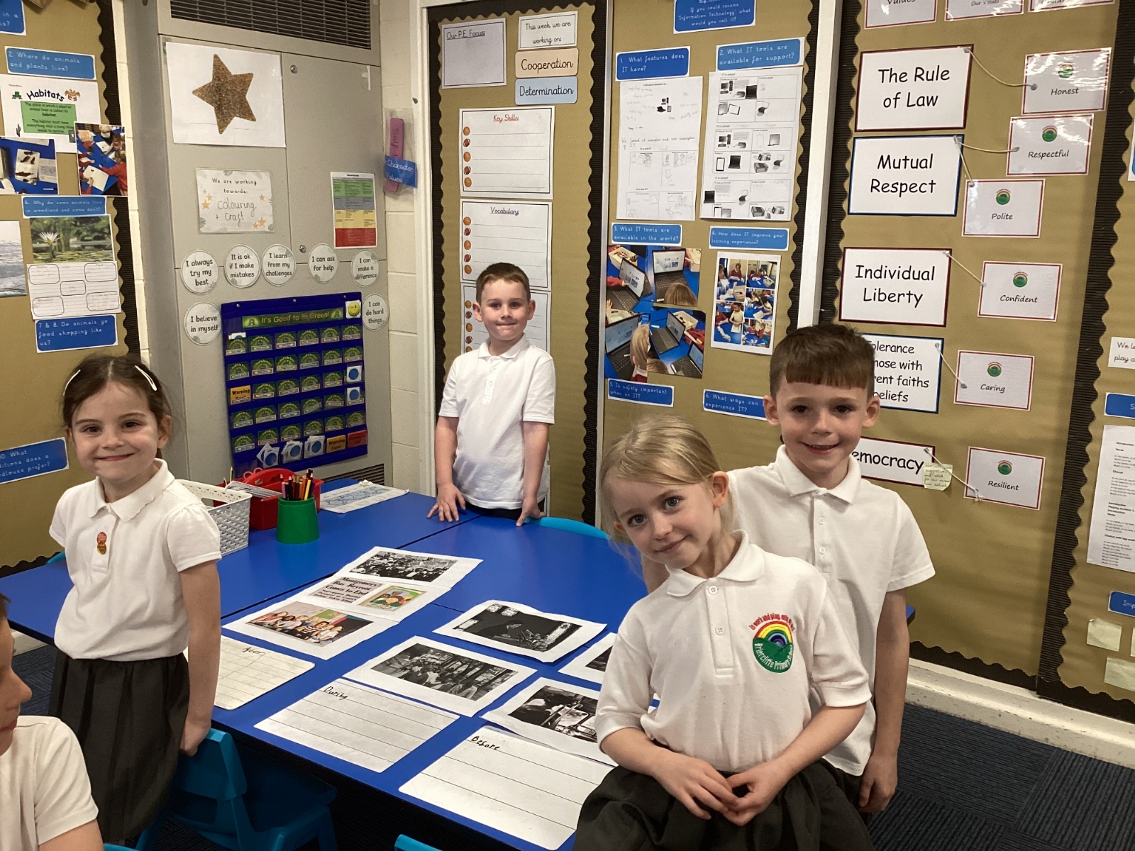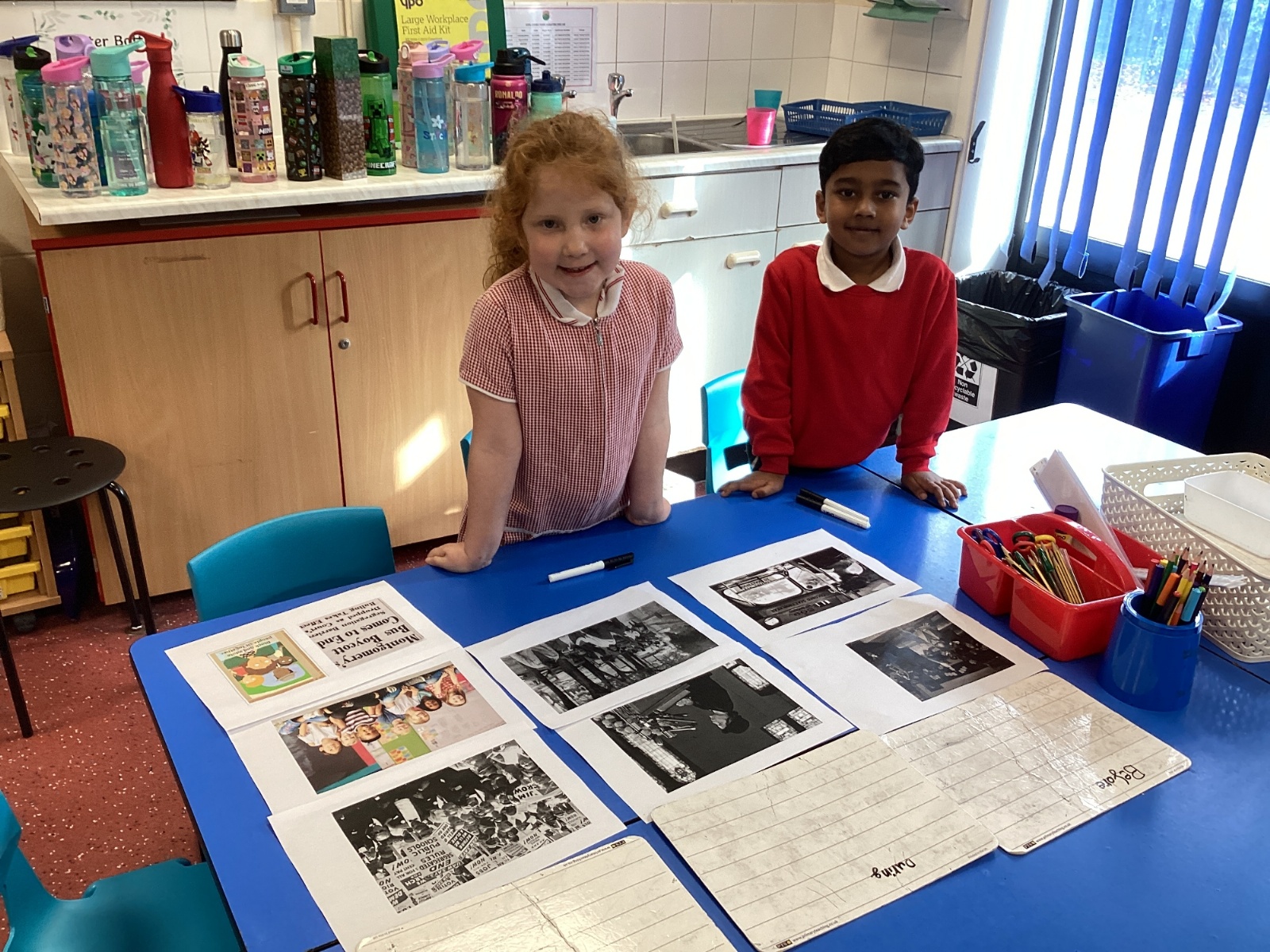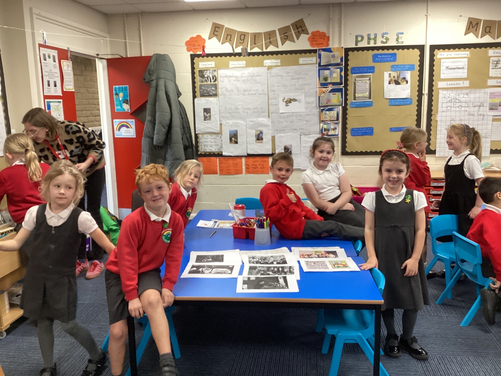 In History, we have been finding out more about Rosa Parks. We made a timeline of her life and chose some artifacts to make a museum all about why she was important. All this learning helped us to put together a display outside our classroom!