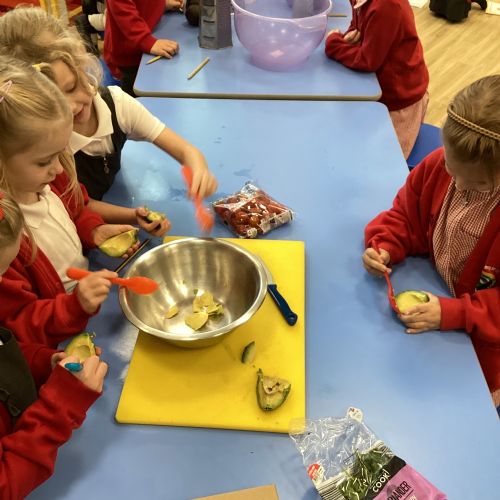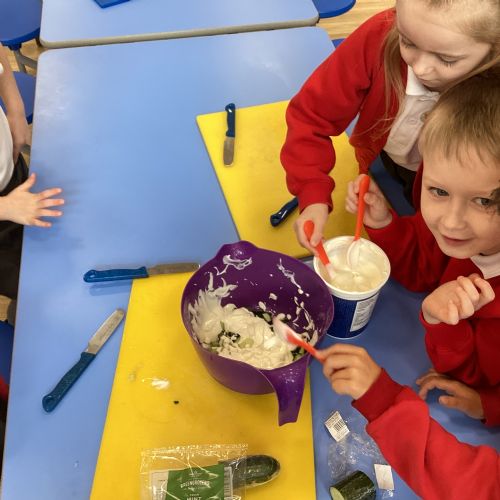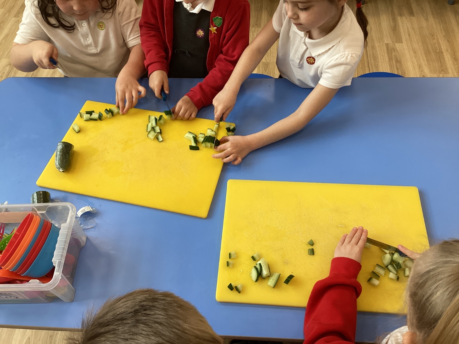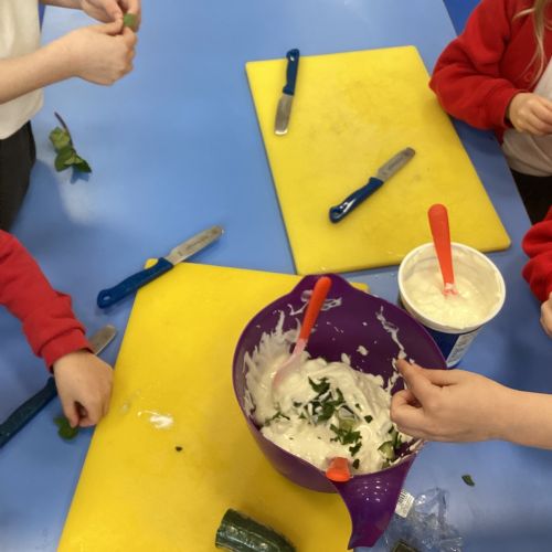 This week, we made our own dips in DT. We practiced our chopping, grating, blending, mixing and tasting skills!