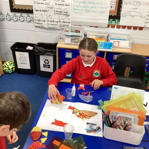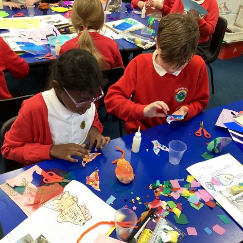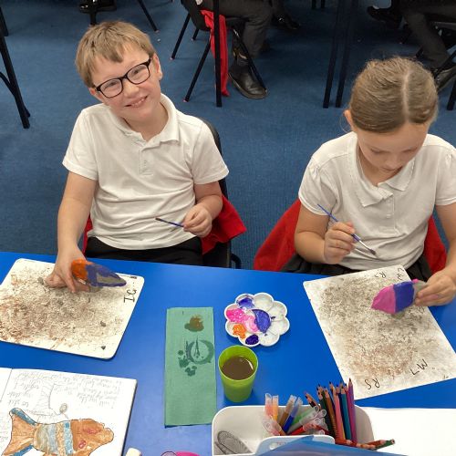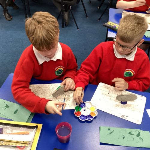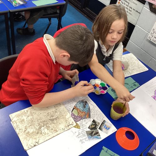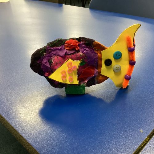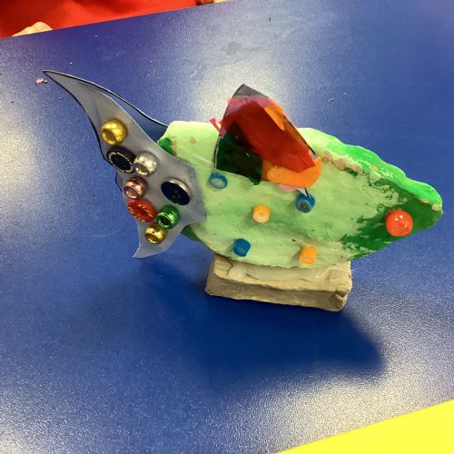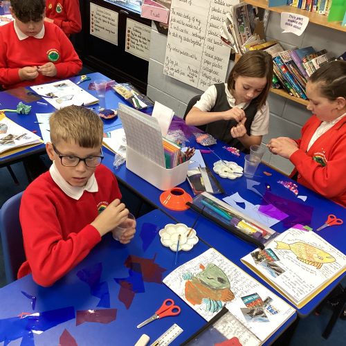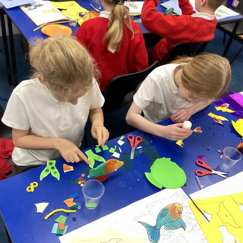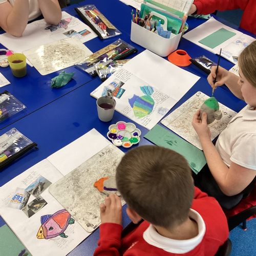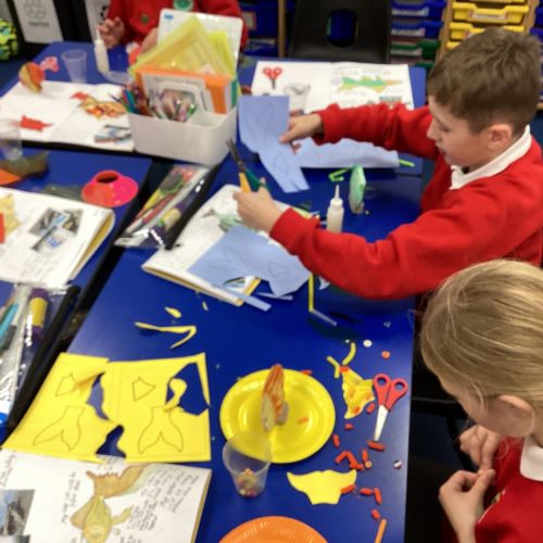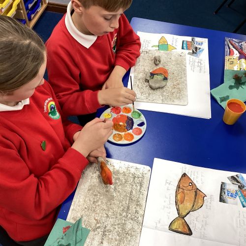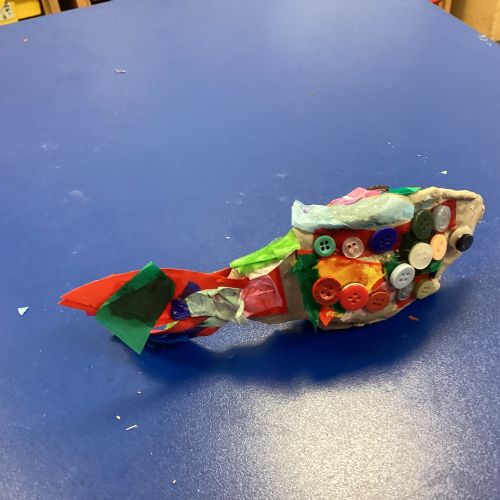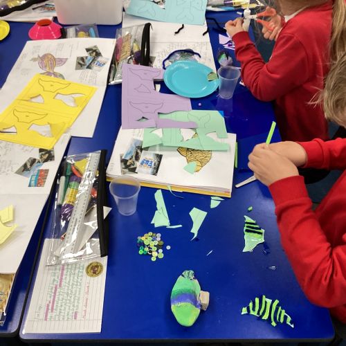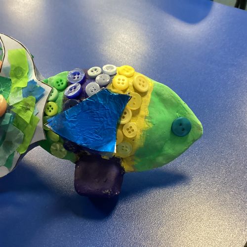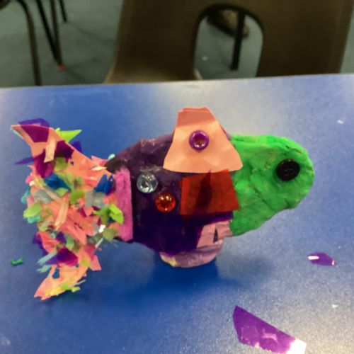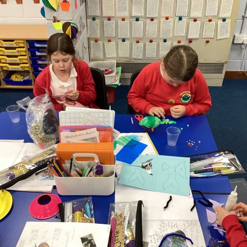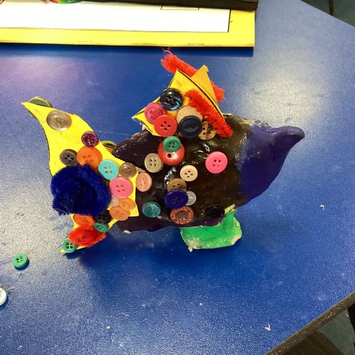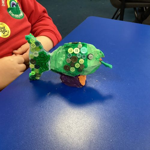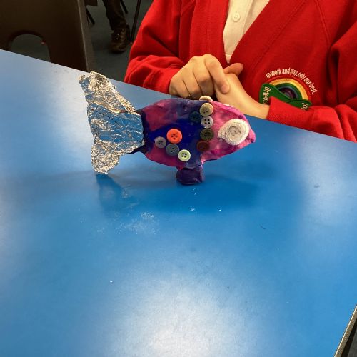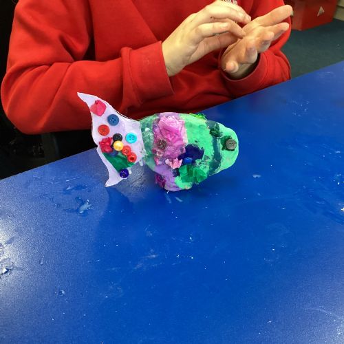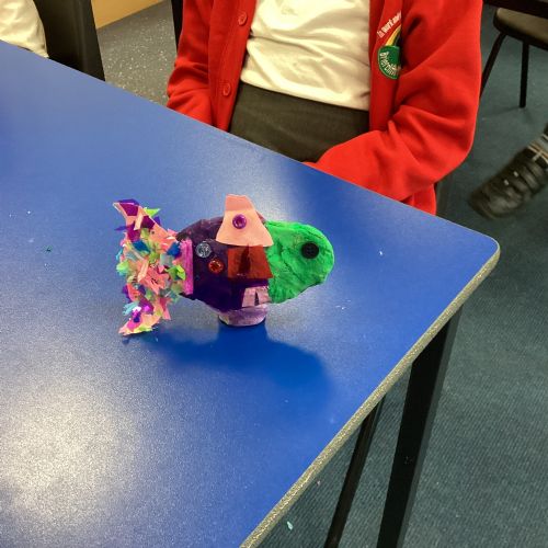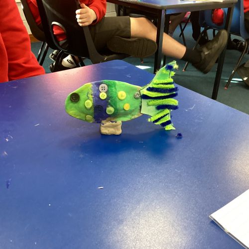 We enjoyed using the clay techniques practised to sculpt our fish this week. We then painted them and added the recycled materials. The final sculptures were fantastic. We also had the pleasure of welcoming 4H into our classroom on Friday morning so that they could read and share their amazing non-chronological report about the Loch Ness Monster. We also read our reports on mythical creatures. It was lovely to see all the children proudly sharing their work.