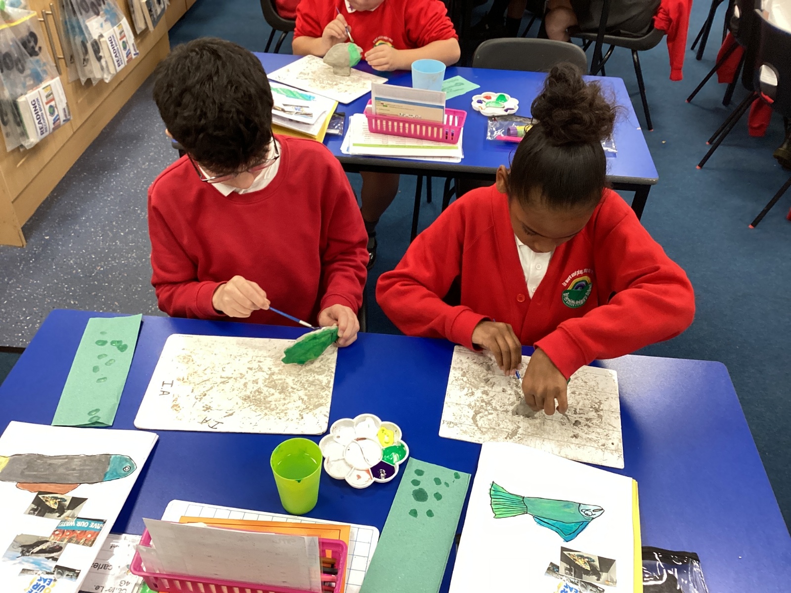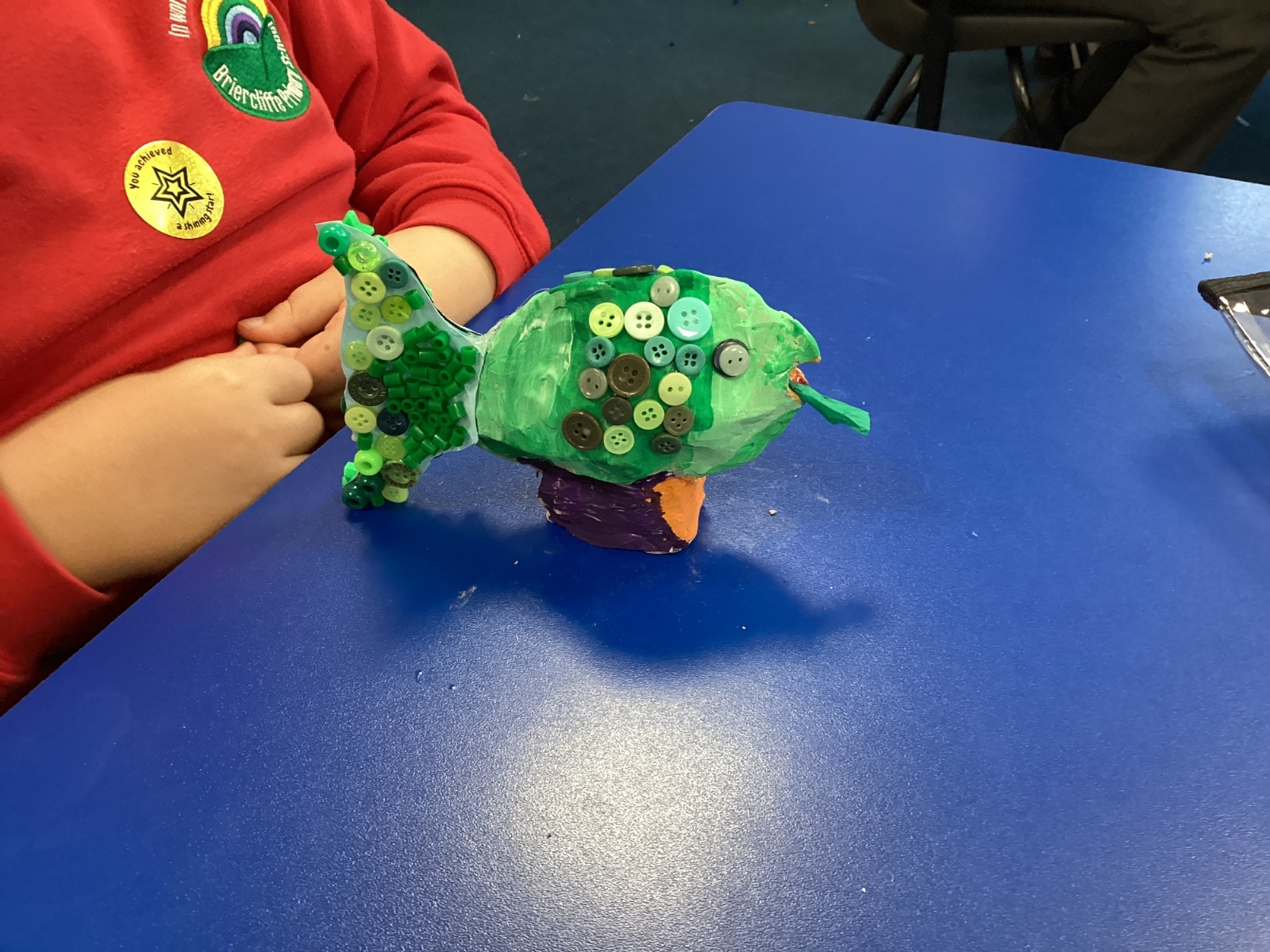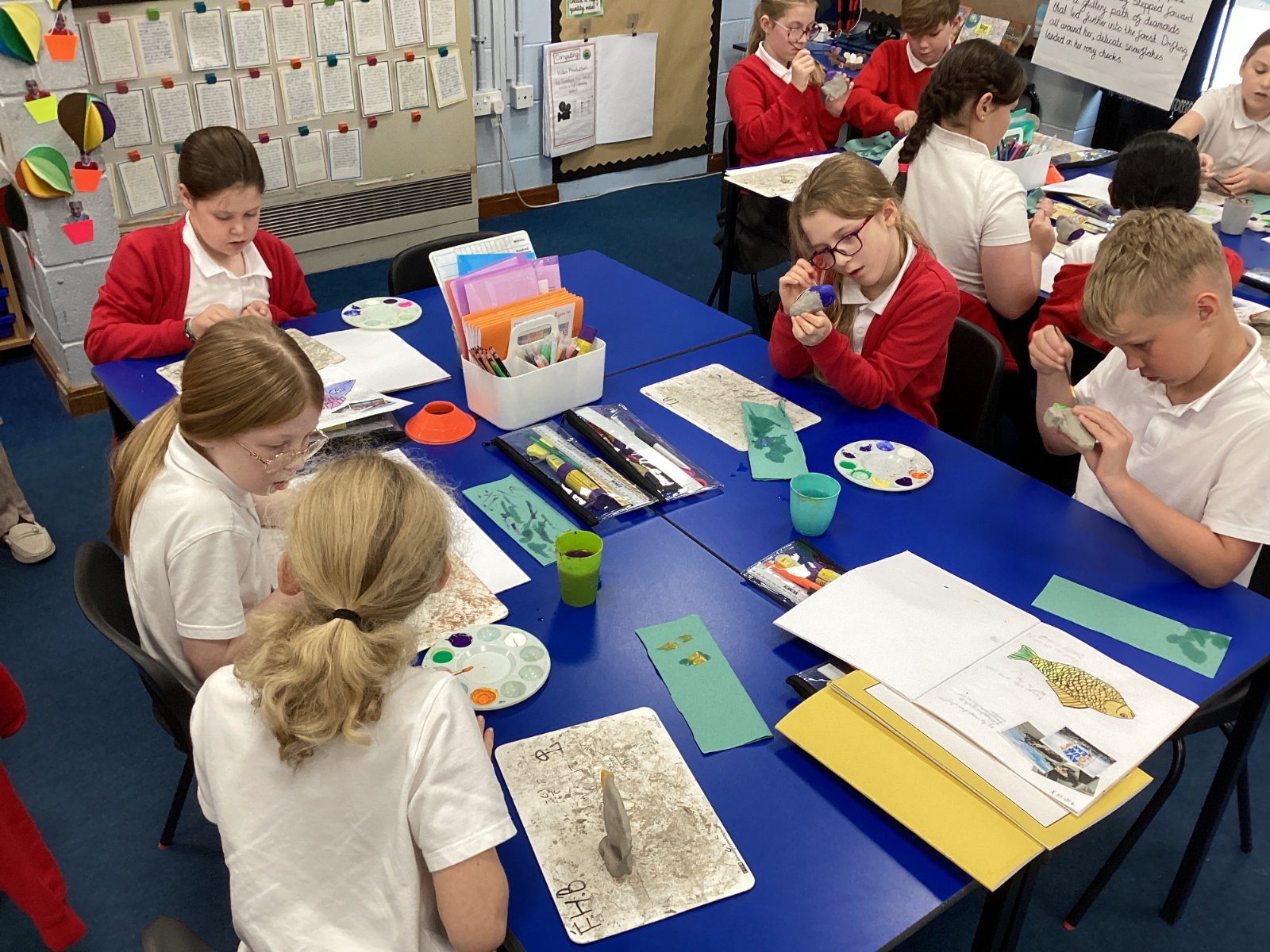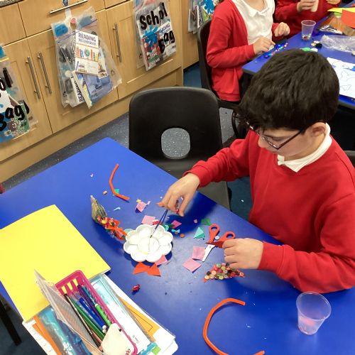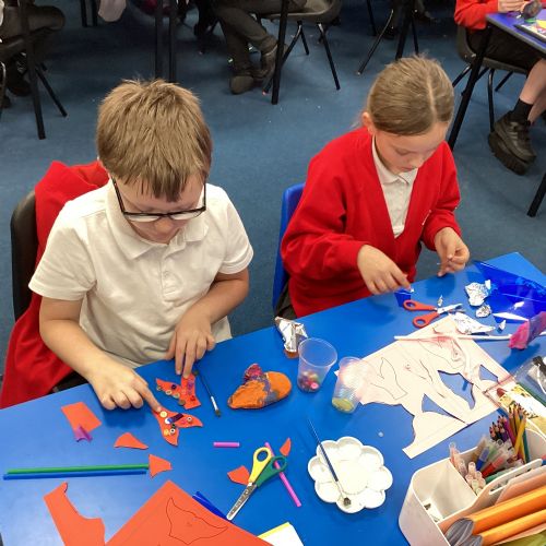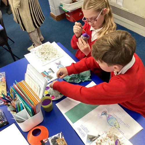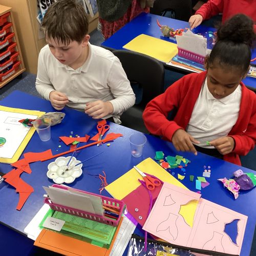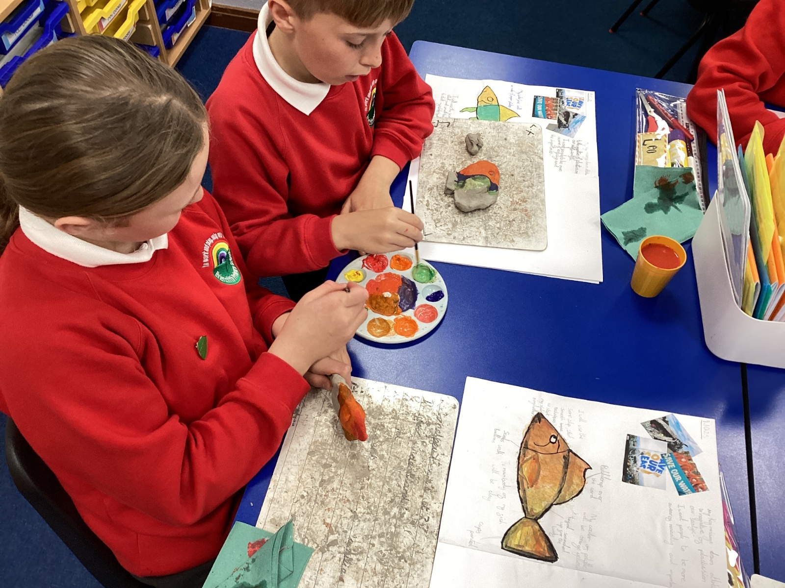 We enjoyed using the clay techniques practised to sculpt our fish this week. We then painted them and added the recycled materials. The final sculptures were fantastic. We also had the pleasure of welcoming 4H into our classroom on Friday morning so that they could read and share their amazing non-chronological report about the Loch Ness Monster. We also read our reports on mythical creatures. It was lovely to see all the children proudly sharing their work.