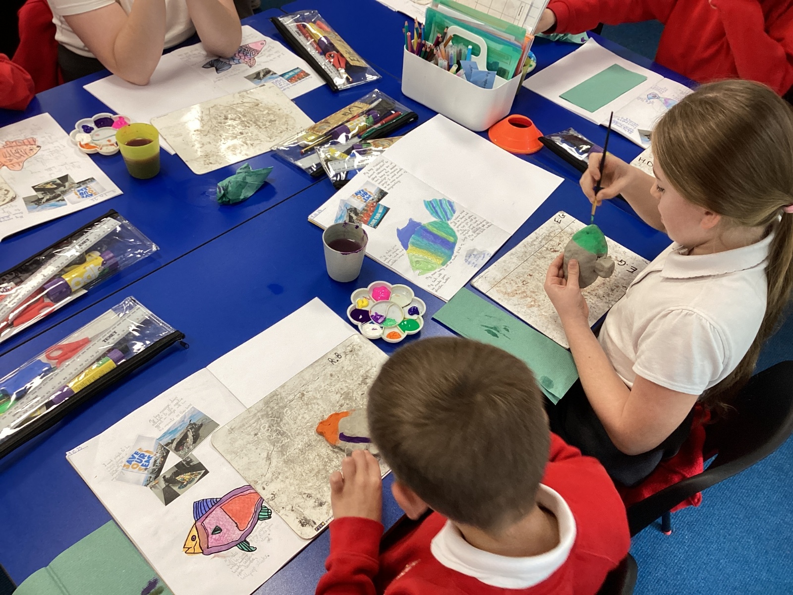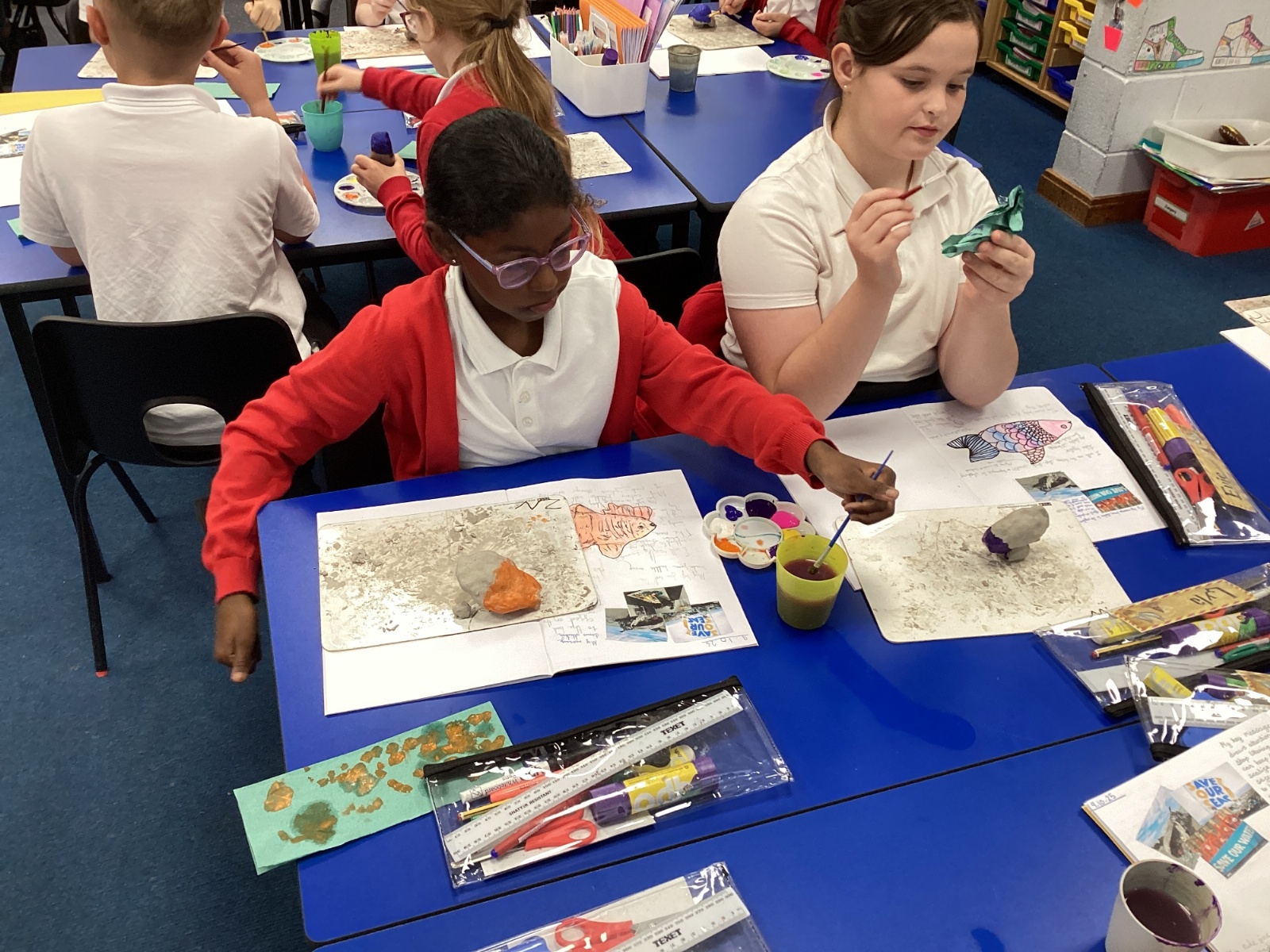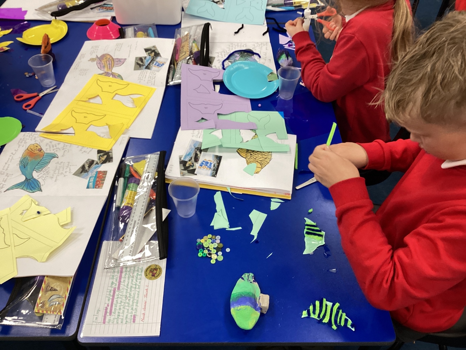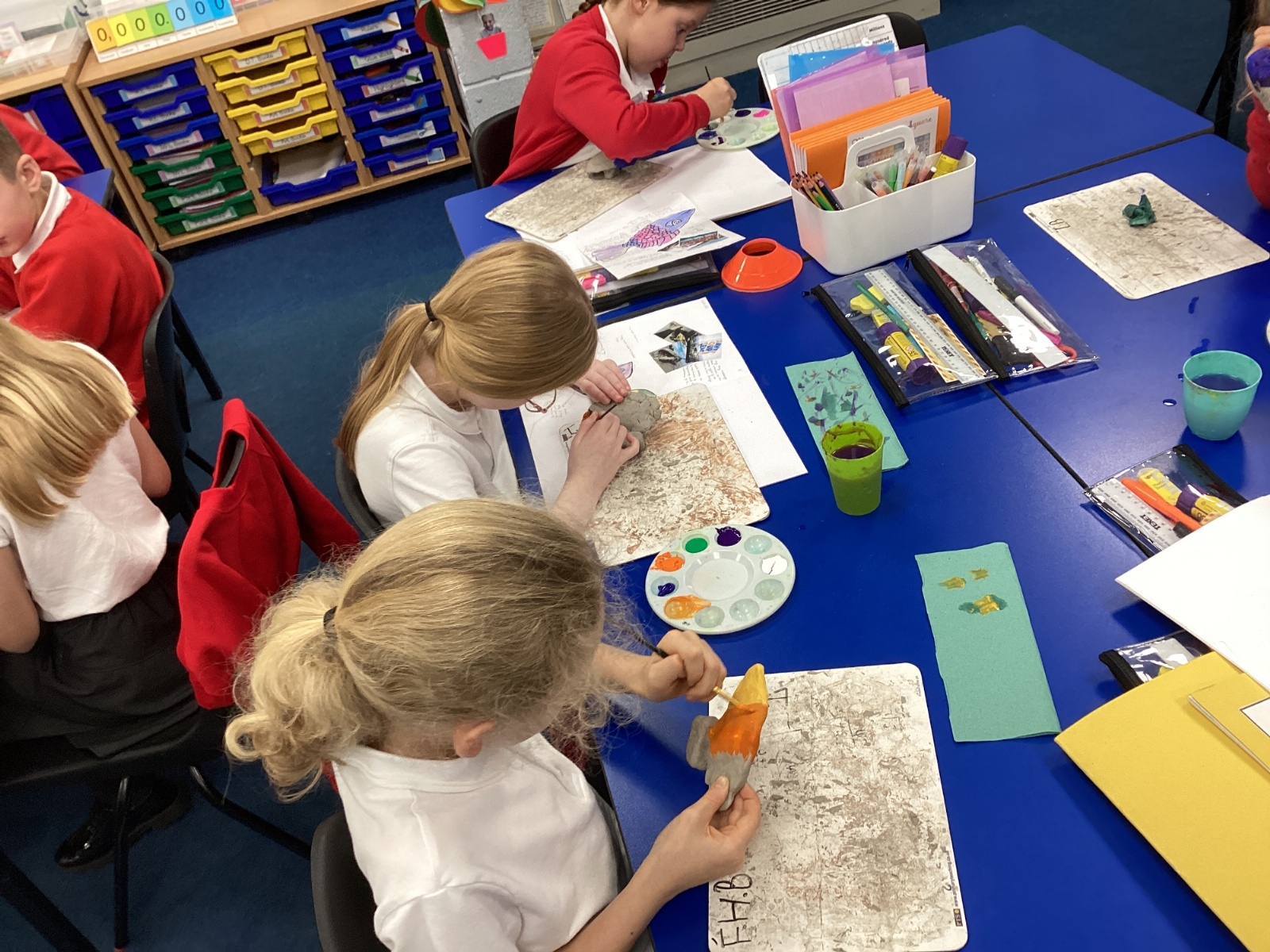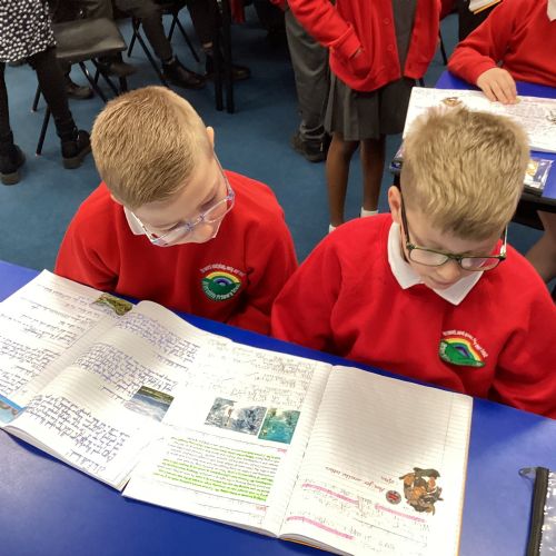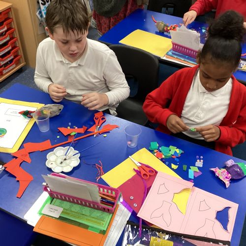 We enjoyed using the clay techniques practised to sculpt our fish this week. We then painted them and added the recycled materials. The final sculptures were fantastic. We also had the pleasure of welcoming 4H into our classroom on Friday morning so that they could read and share their amazing non-chronological report about the Loch Ness Monster. We also read our reports on mythical creatures. It was lovely to see all the children proudly sharing their work.