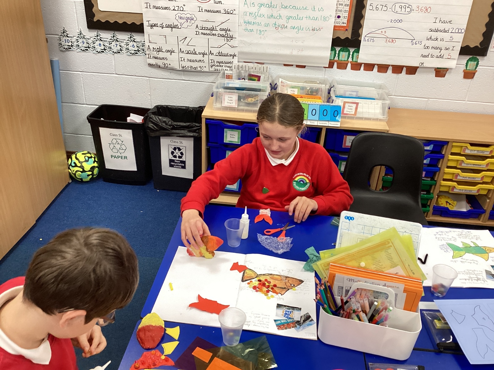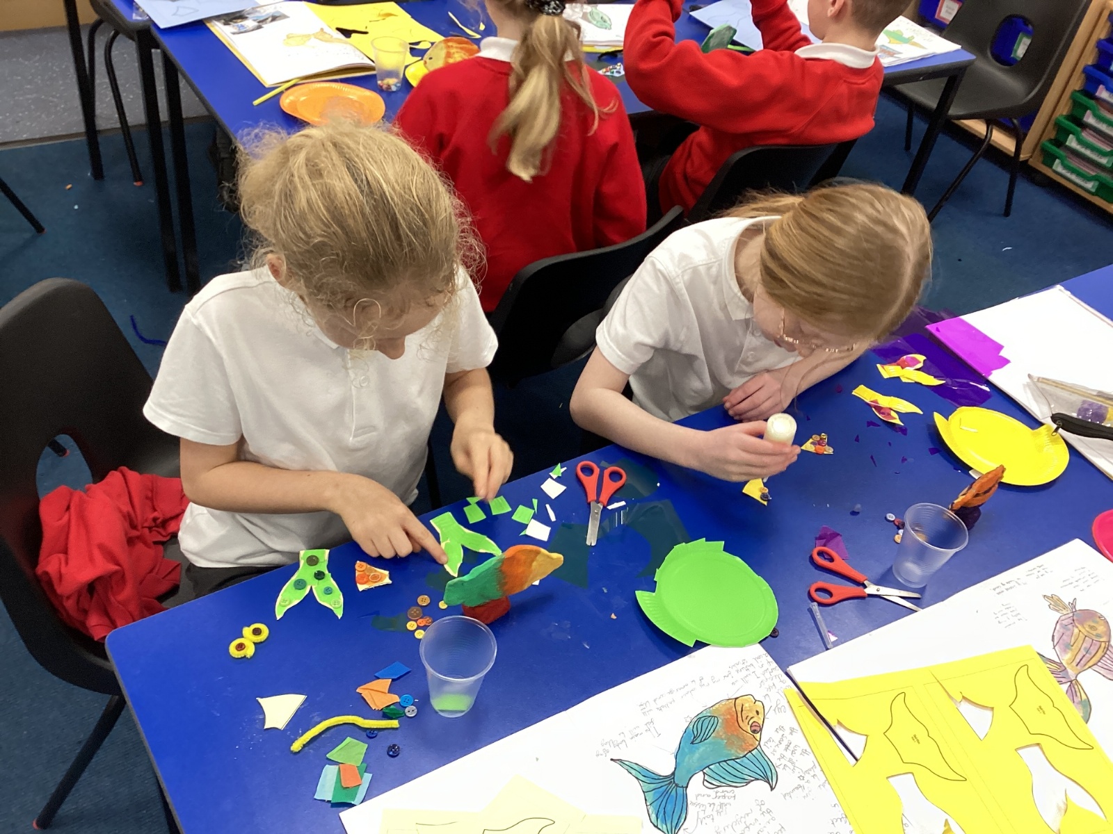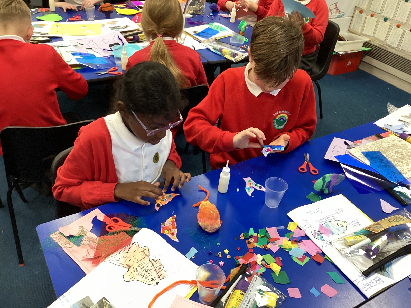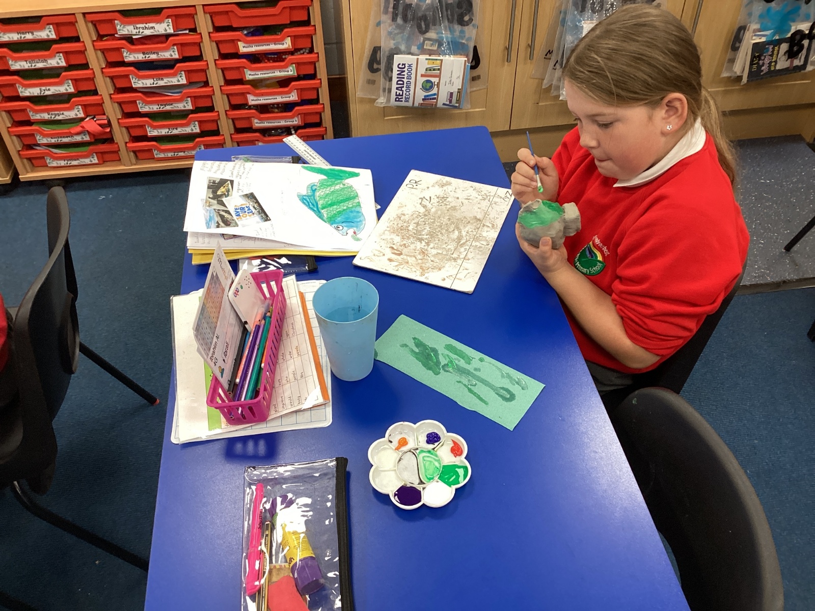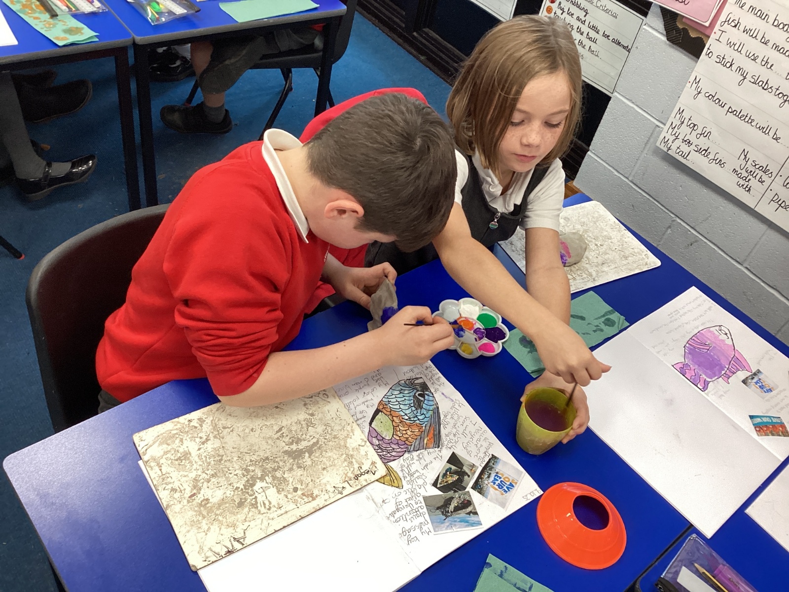 We enjoyed using the clay techniques practised to sculpt our fish this week. We then painted them and added the recycled materials. The final sculptures were fantastic. We also had the pleasure of welcoming 4H into our classroom on Friday morning so that they could read and share their amazing non-chronological report about the Loch Ness Monster. We also read our reports on mythical creatures. It was lovely to see all the children proudly sharing their work.