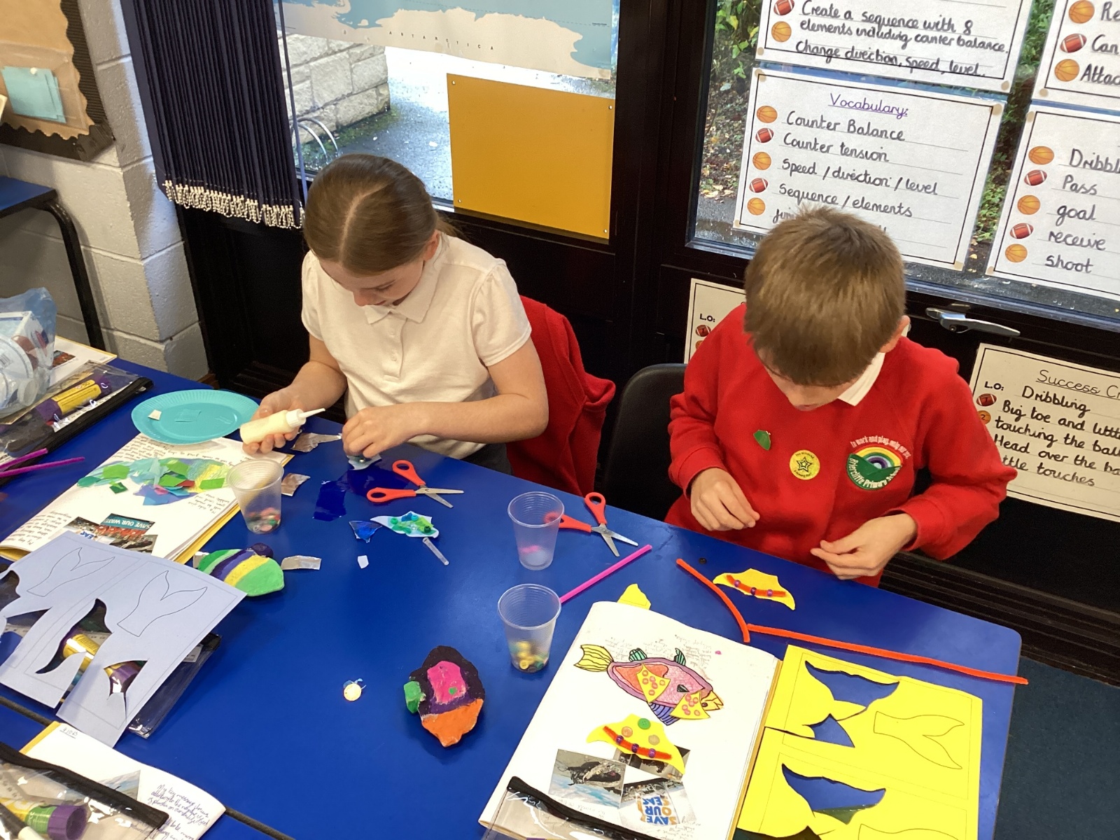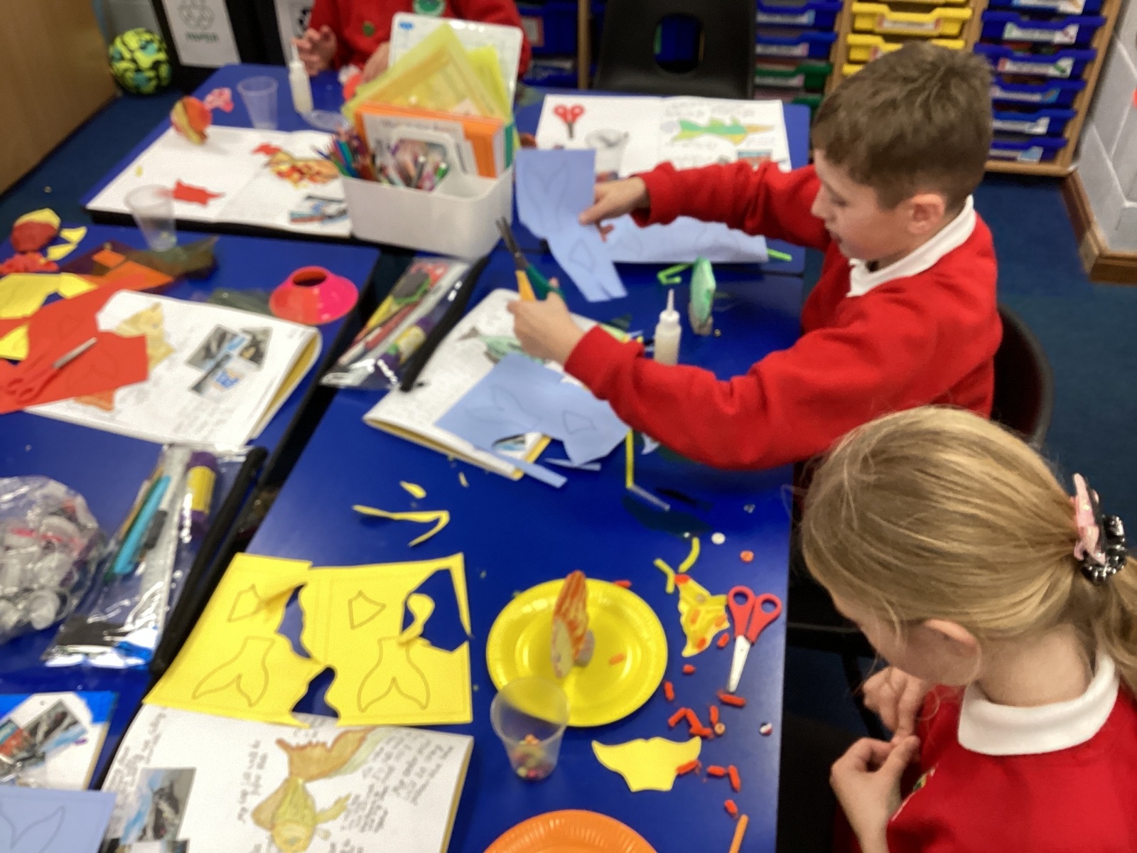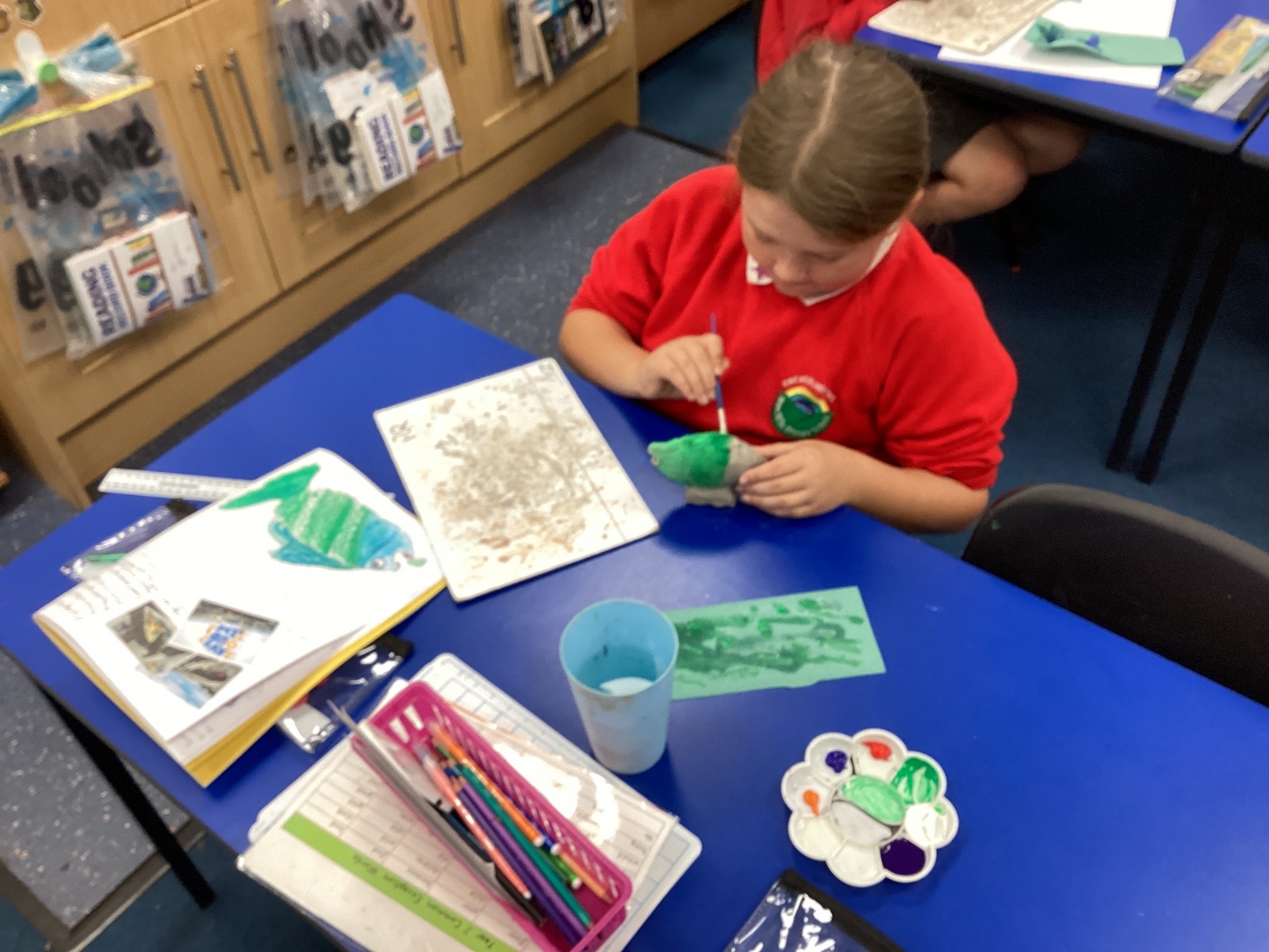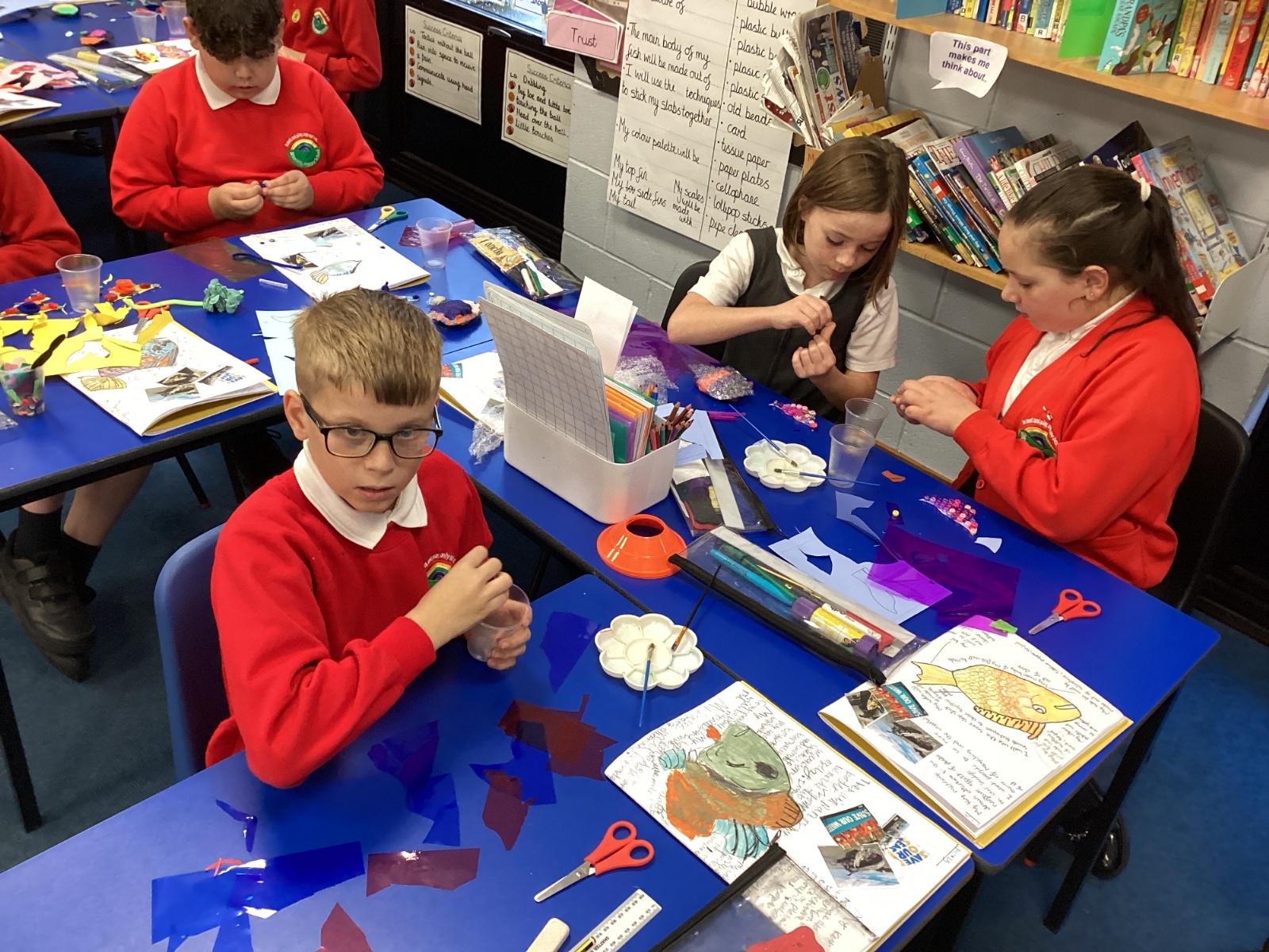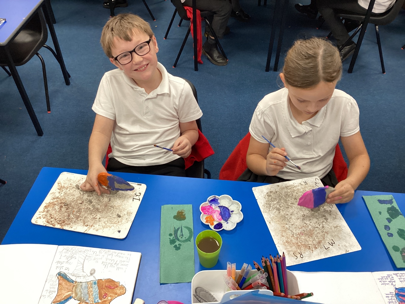 We enjoyed using the clay techniques practised to sculpt our fish this week. We then painted them and added the recycled materials. The final sculptures were fantastic. We also had the pleasure of welcoming 4H into our classroom on Friday morning so that they could read and share their amazing non-chronological report about the Loch Ness Monster. We also read our reports on mythical creatures. It was lovely to see all the children proudly sharing their work.