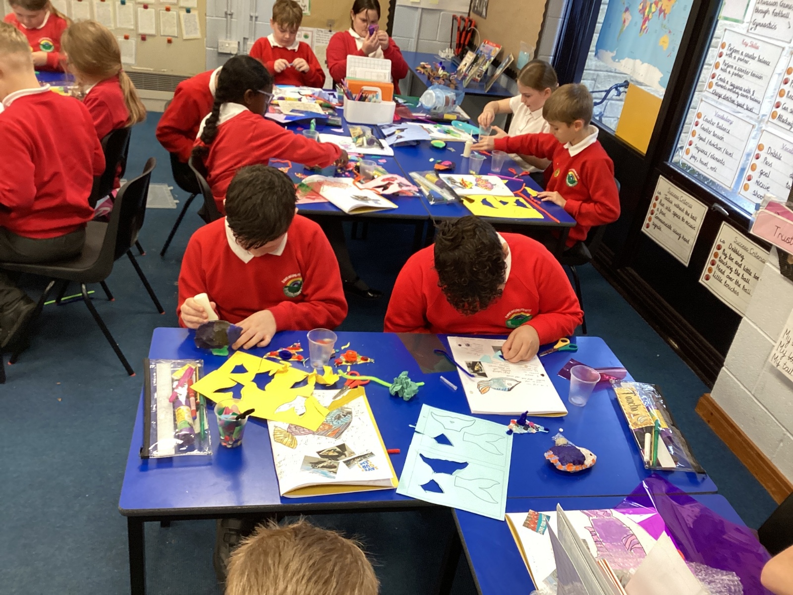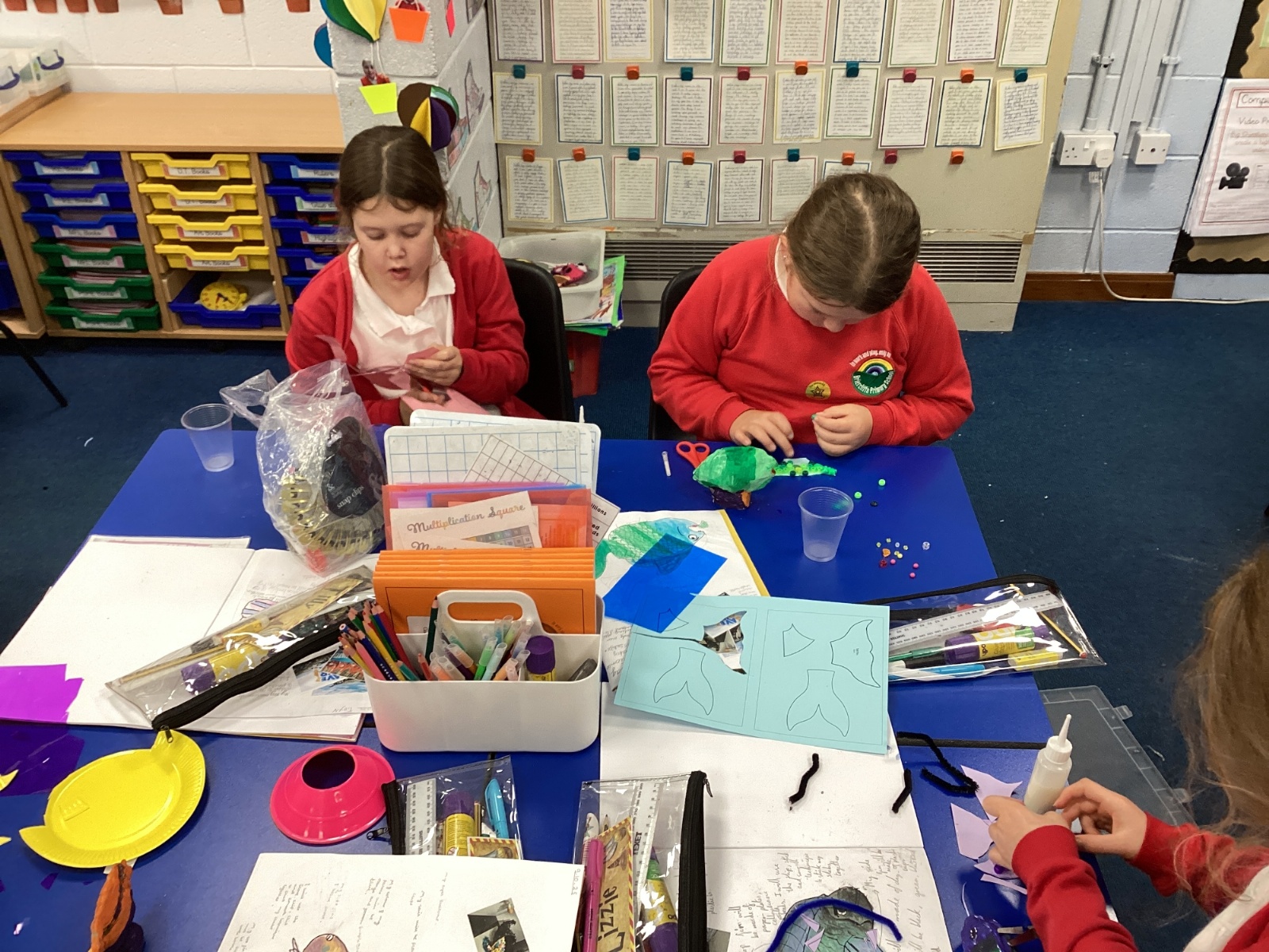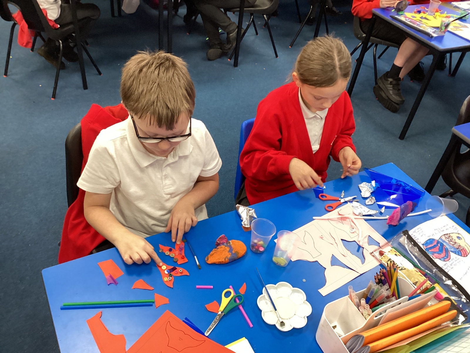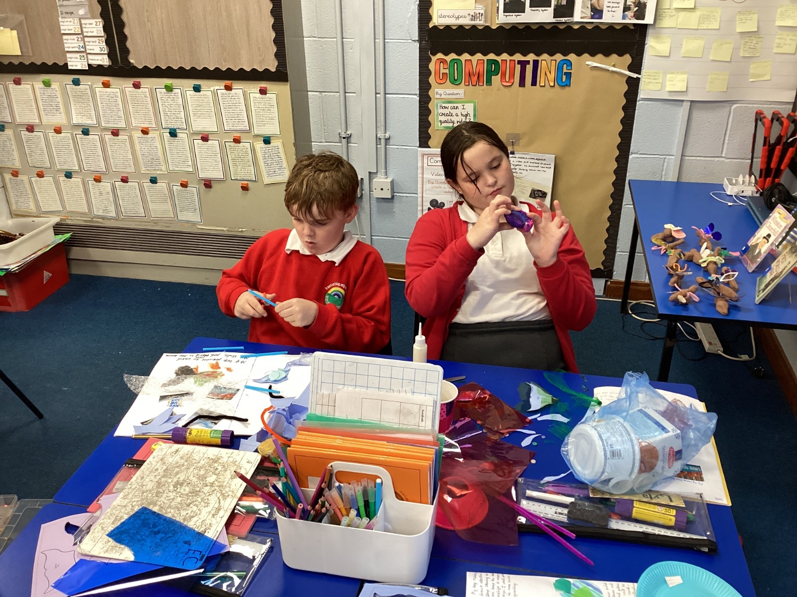 We enjoyed using the clay techniques practised to sculpt our fish this week. We then painted them and added the recycled materials. The final sculptures were fantastic. We also had the pleasure of welcoming 4H into our classroom on Friday morning so that they could read and share their amazing non-chronological report about the Loch Ness Monster. We also read our reports on mythical creatures. It was lovely to see all the children proudly sharing their work.
