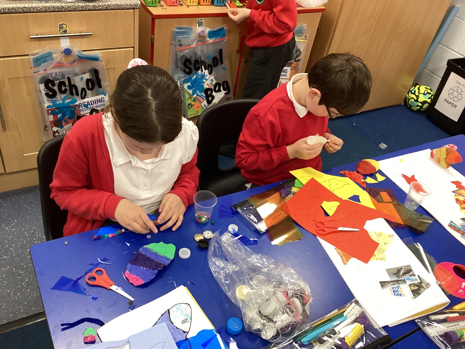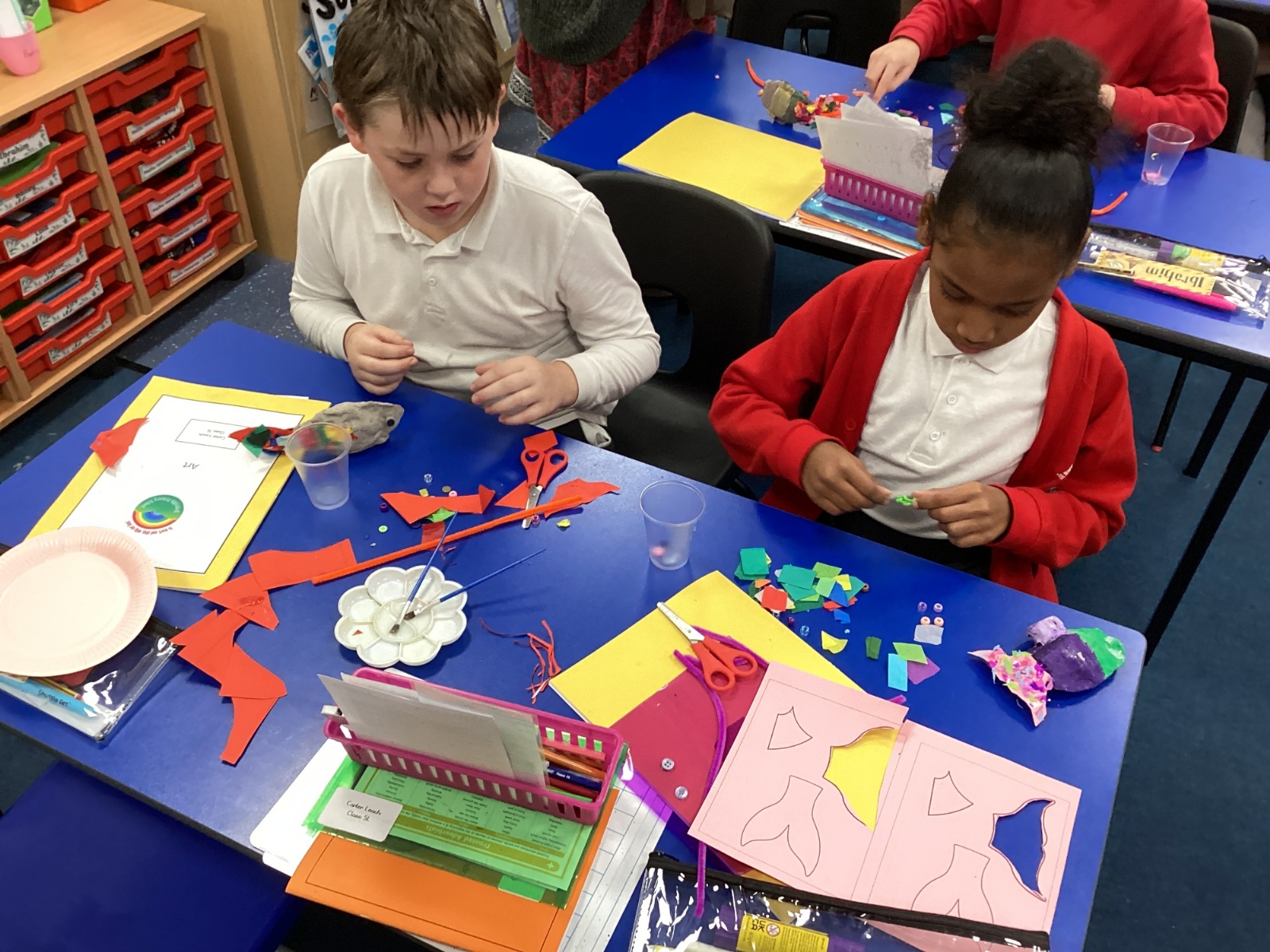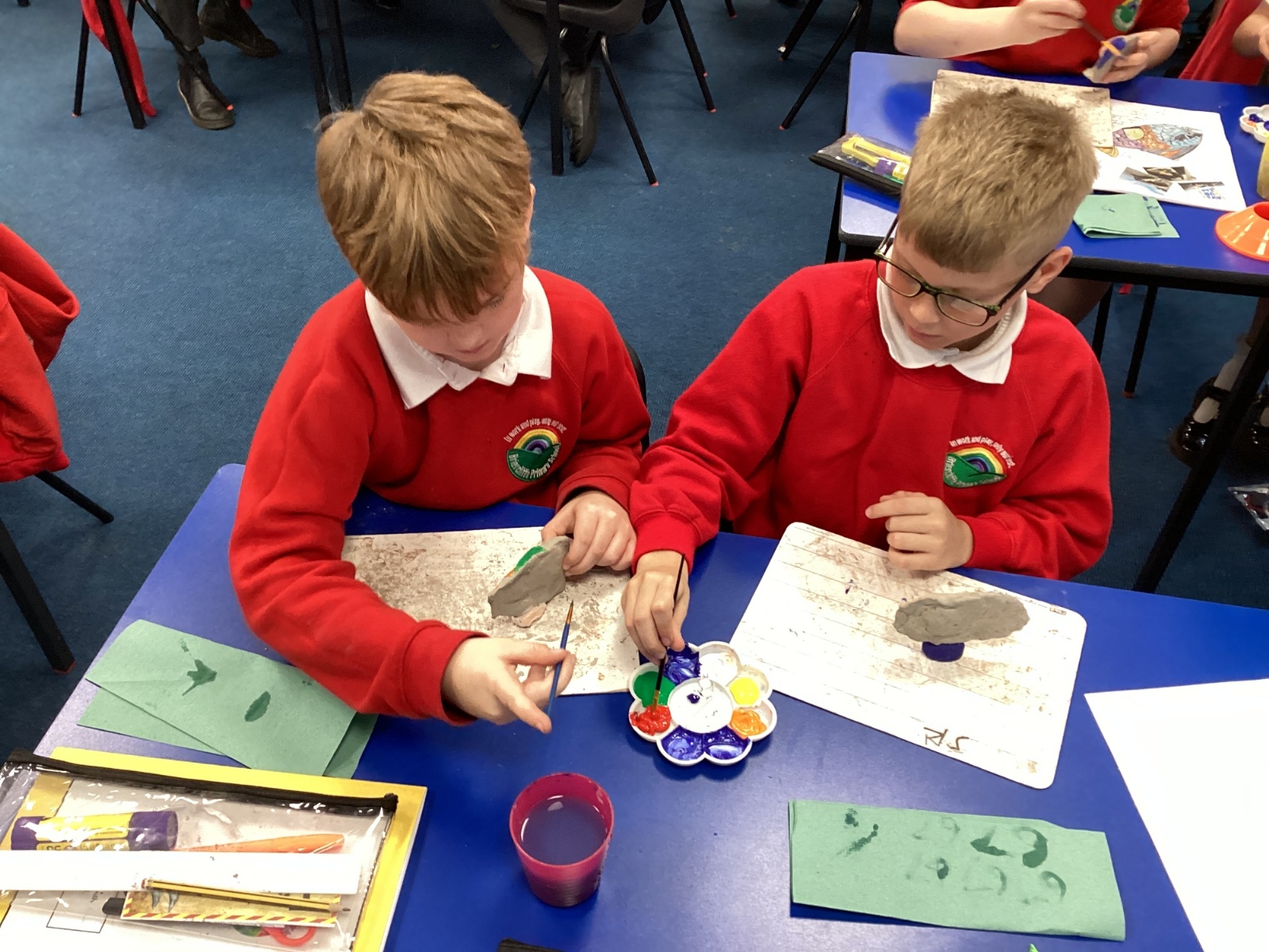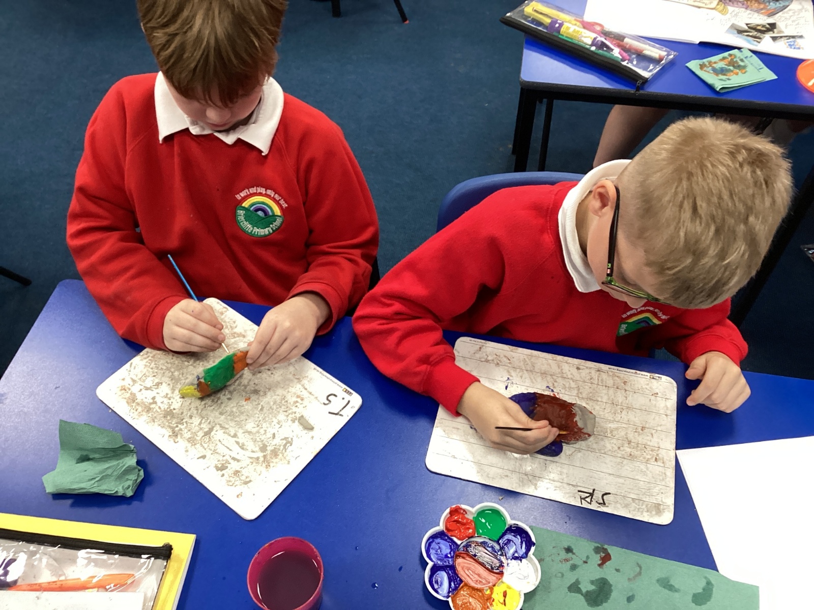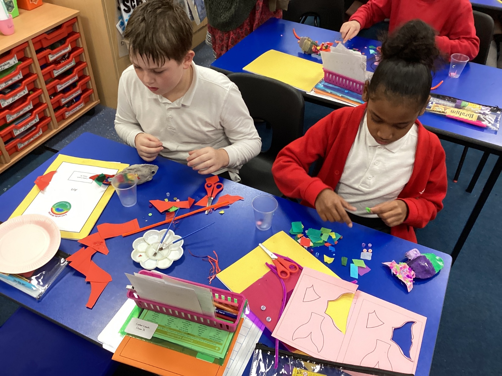 We enjoyed using the clay techniques practised to sculpt our fish this week. We then painted them and added the recycled materials. The final sculptures were fantastic. We also had the pleasure of welcoming 4H into our classroom on Friday morning so that they could read and share their amazing non-chronological report about the Loch Ness Monster. We also read our reports on mythical creatures. It was lovely to see all the children proudly sharing their work.