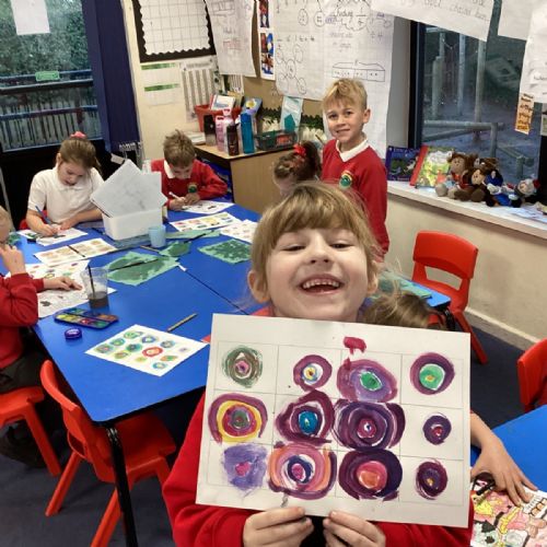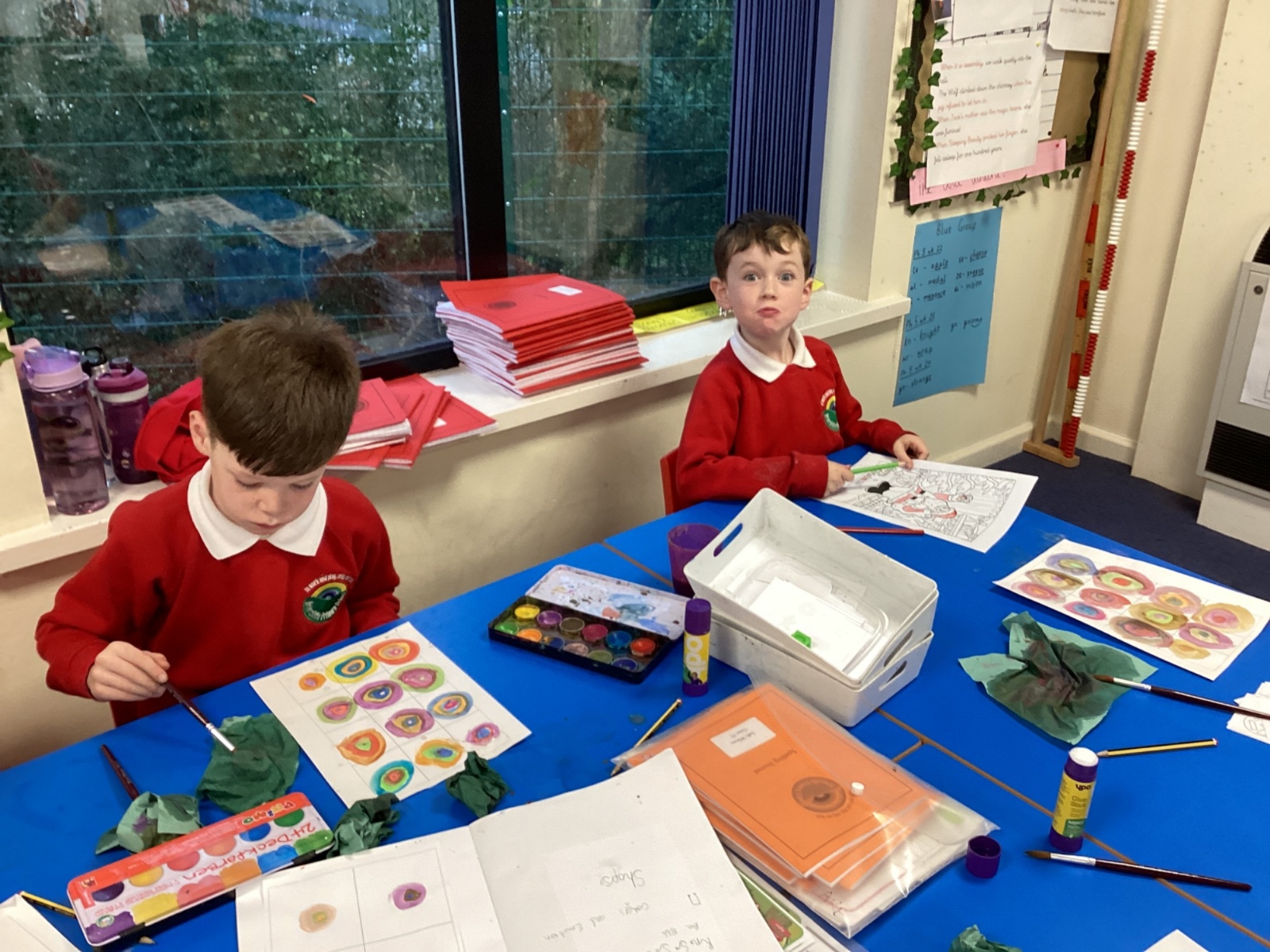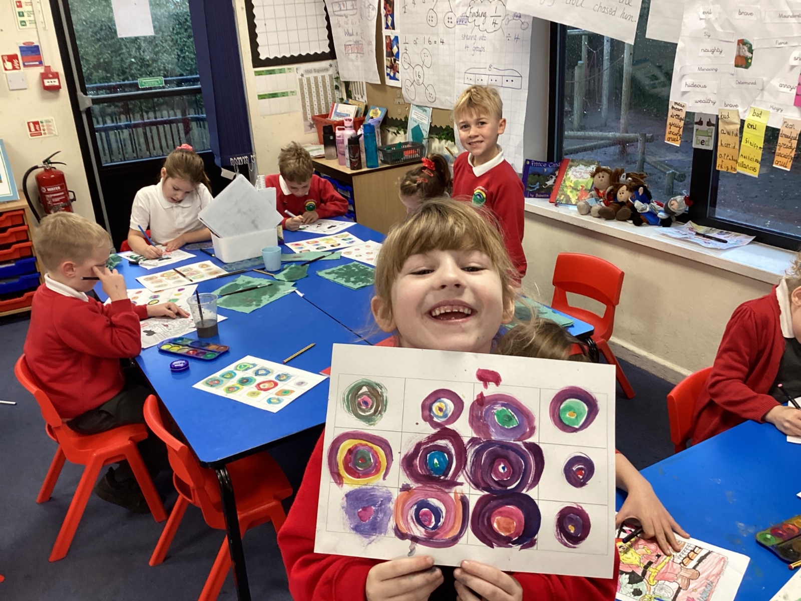 A lovely day studying the art of Kandinsky and creating our calendar masterpieces! Great job using watercolours and concentric circles!