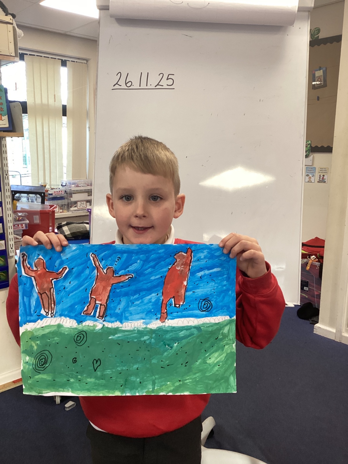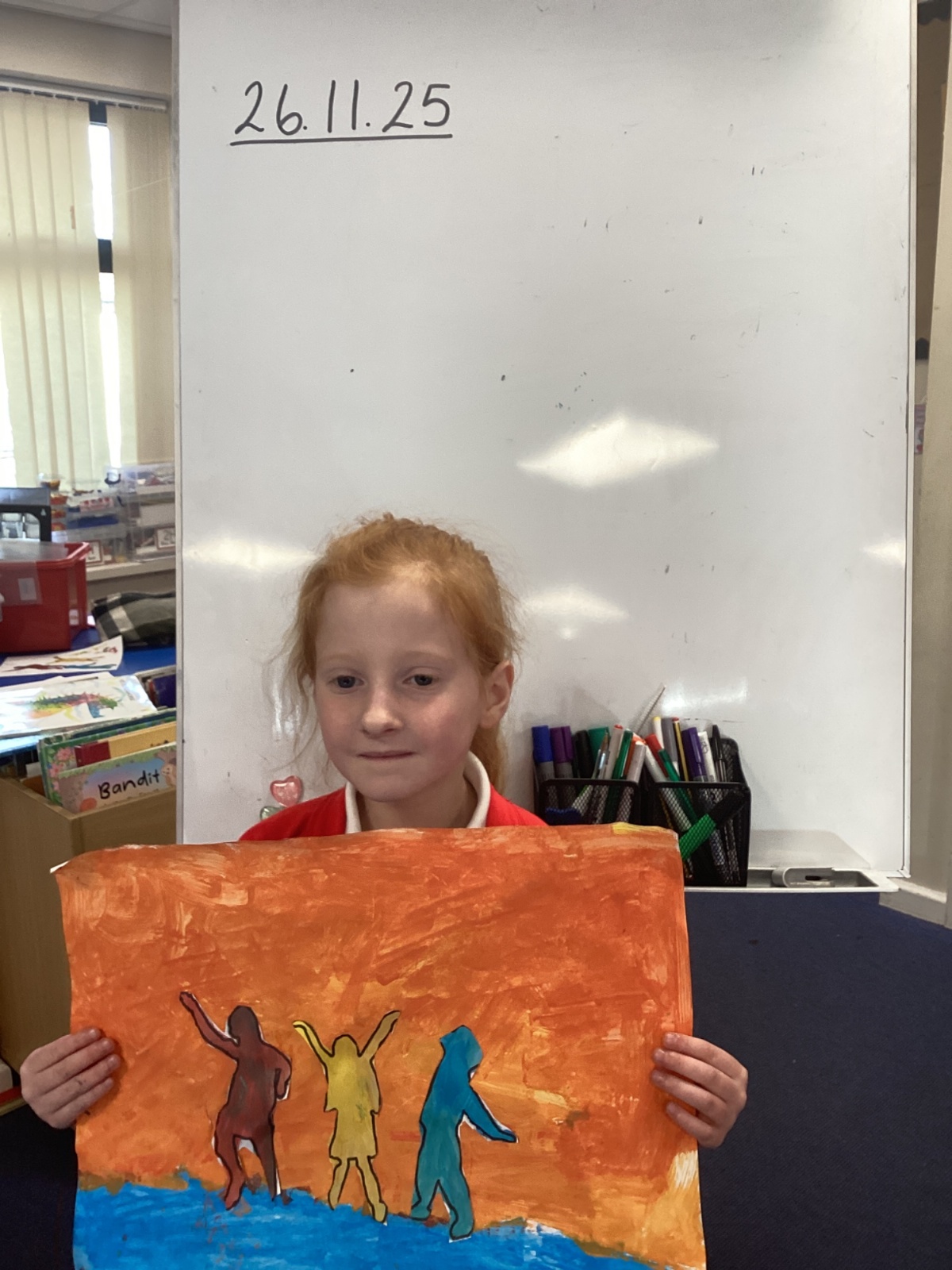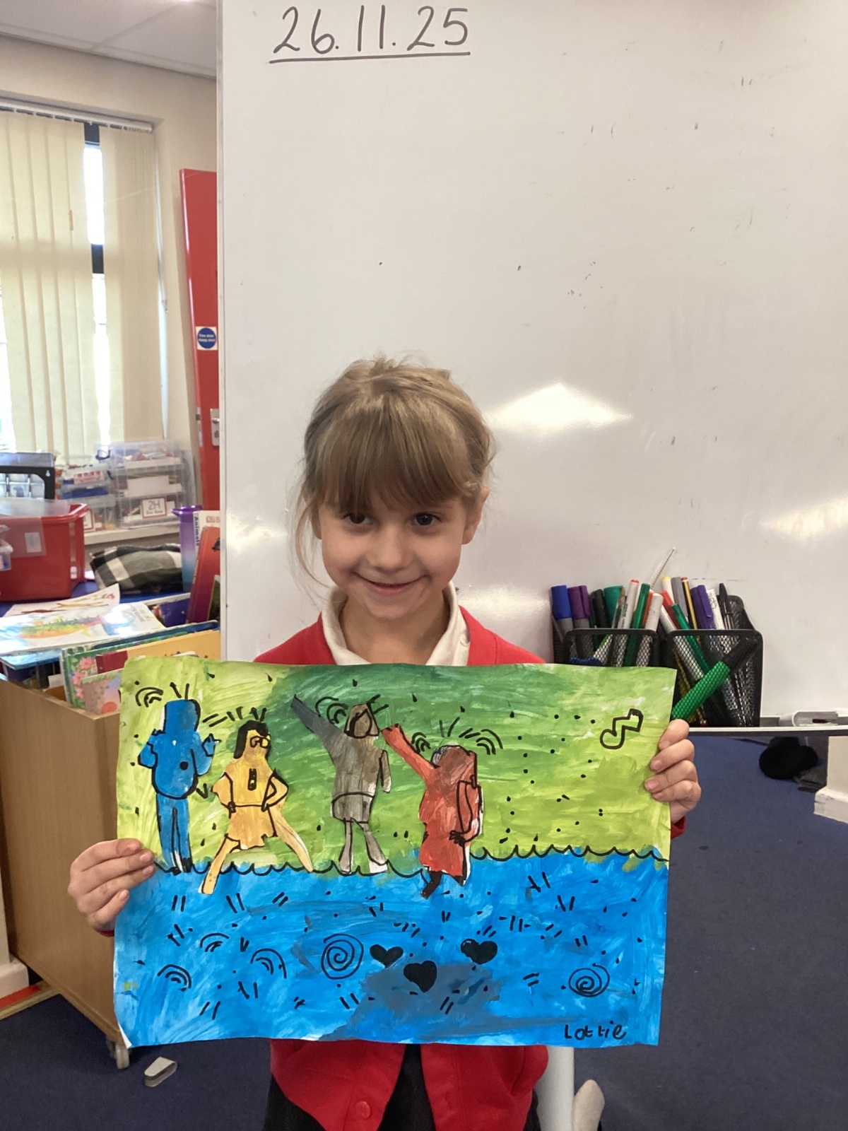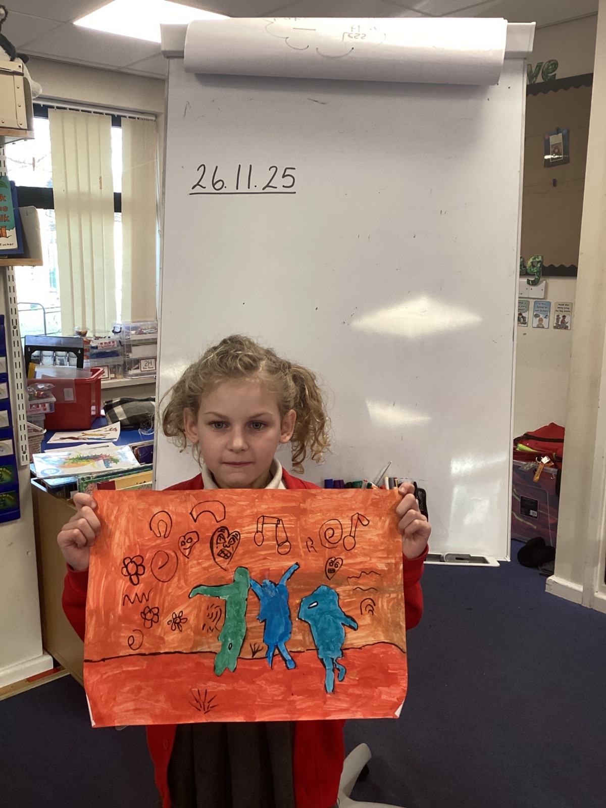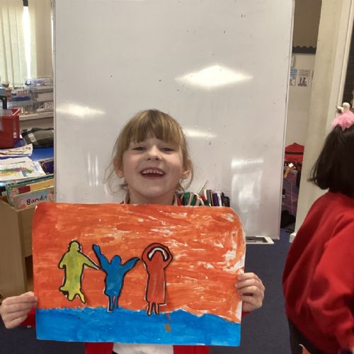 Our end-of-unit art pieces inspired by Keith Haring. Lots of colour mixing work and thinking about colour and emotions.