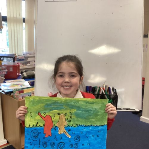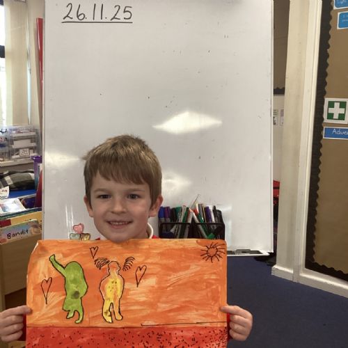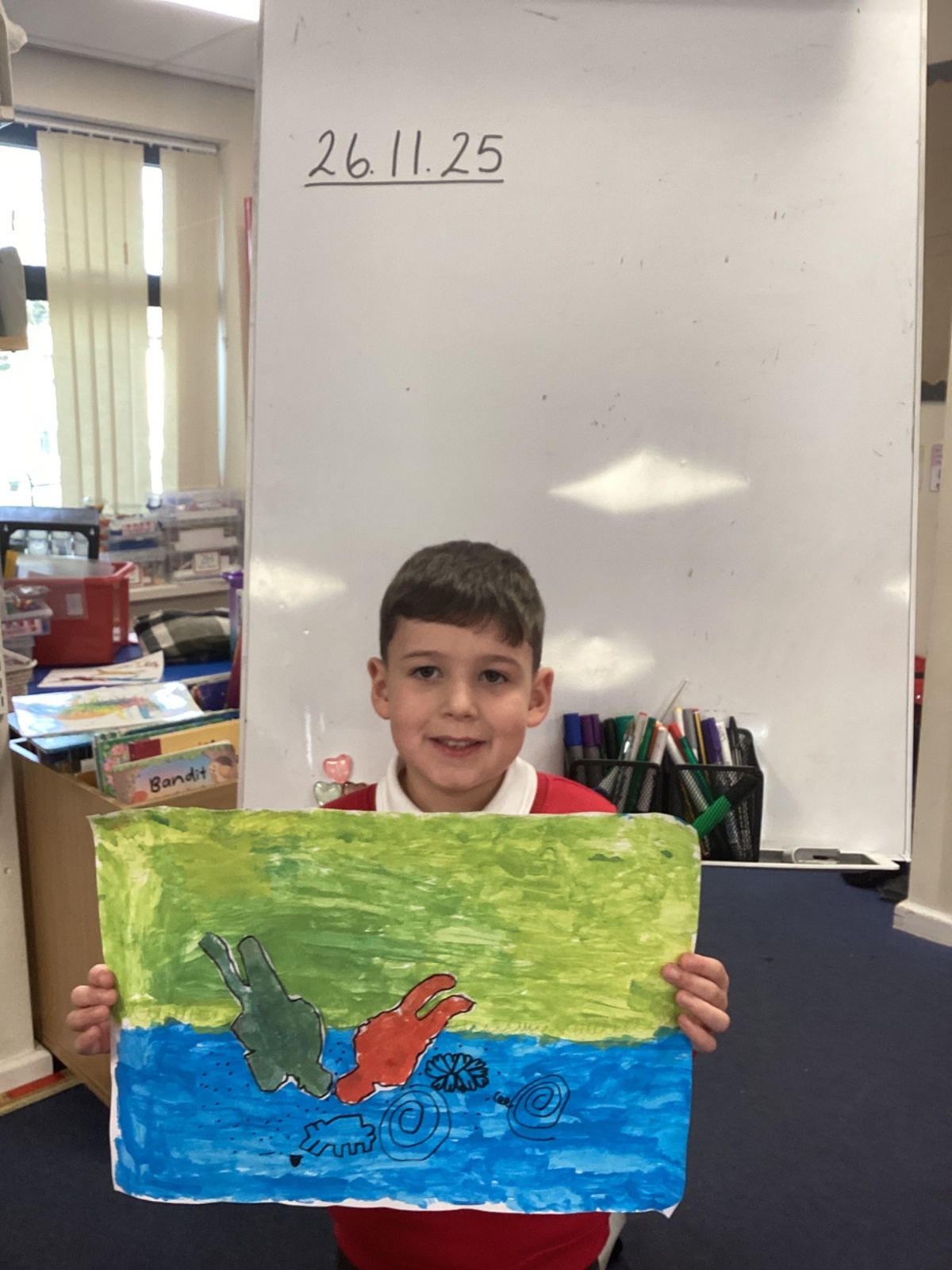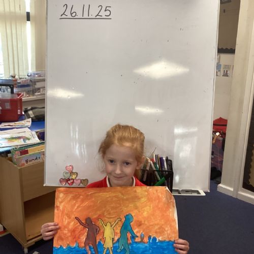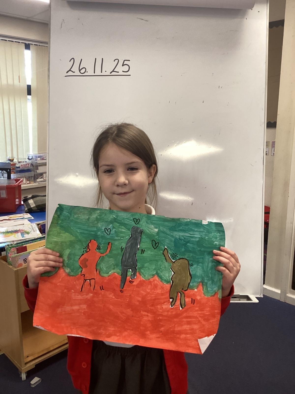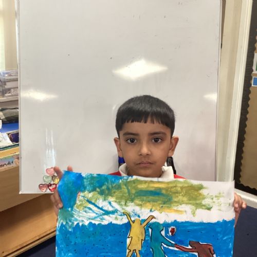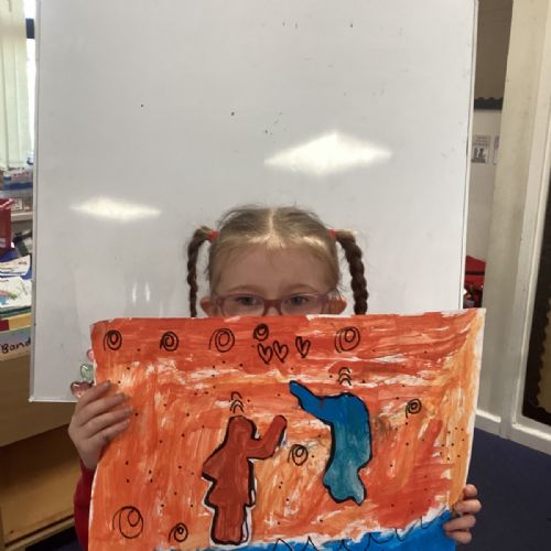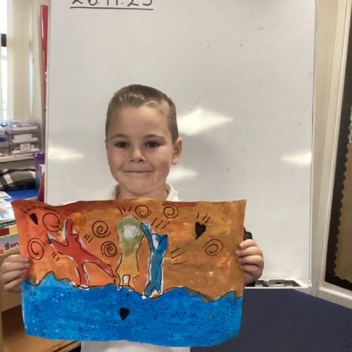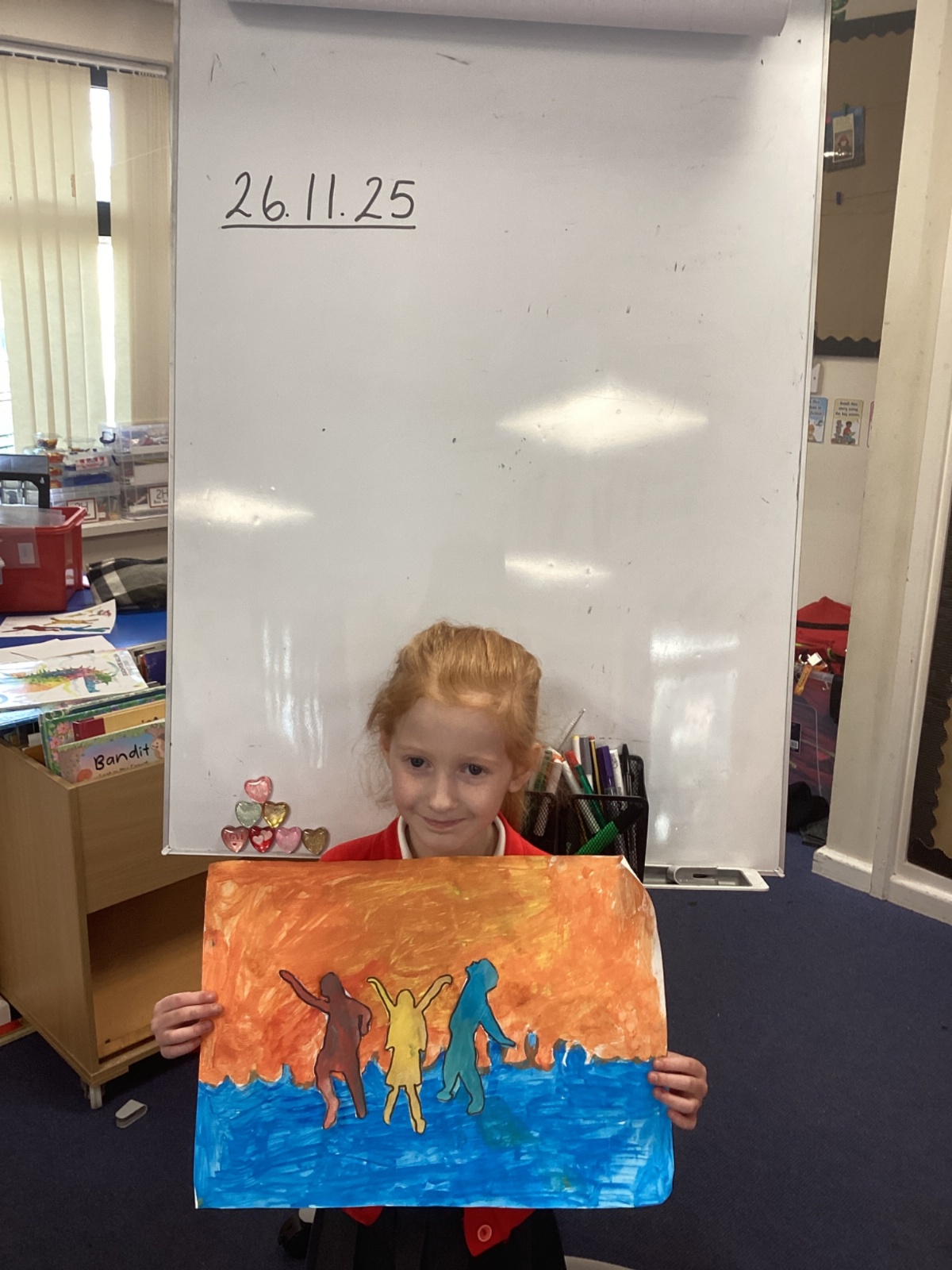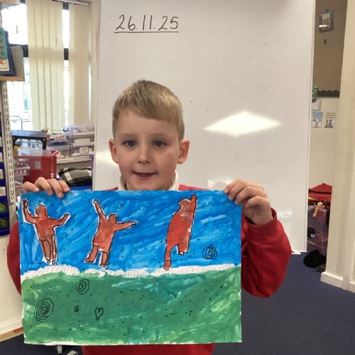 Our end-of-unit art pieces inspired by Keith Haring. Lots of colour mixing work and thinking about colour and emotions.