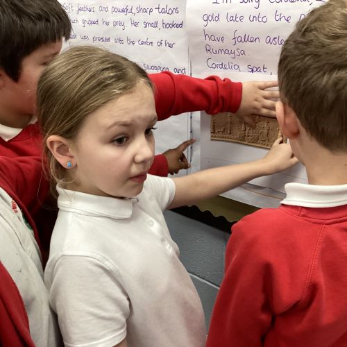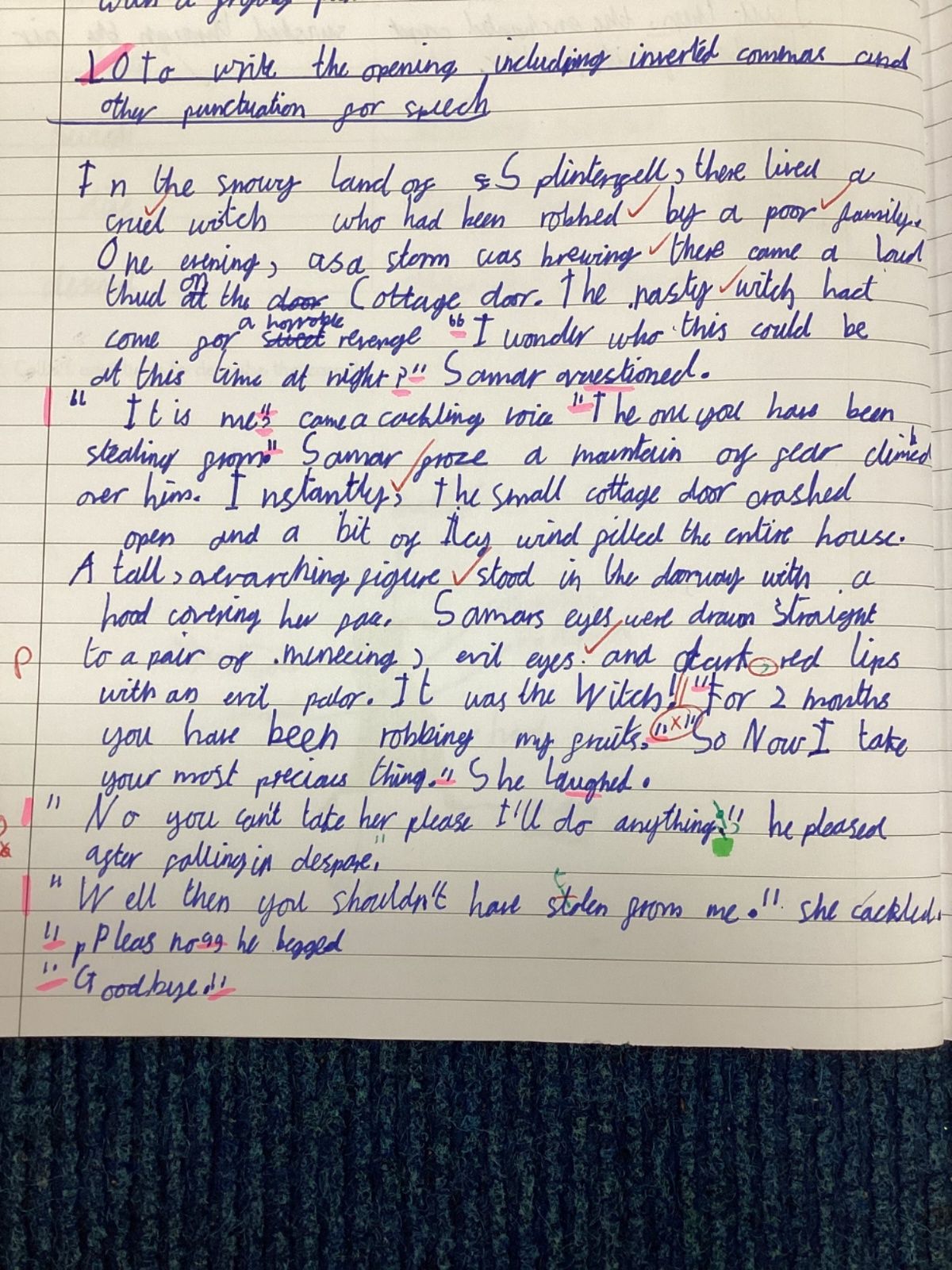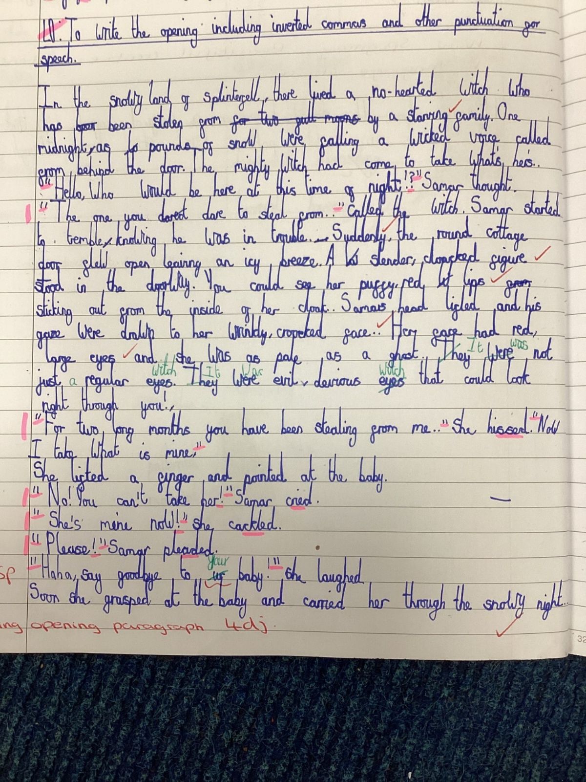 In English, the children have produced some amazing openings to their Rumaysa narratives. They've written some excellent dialogue and fantastic descriptions using expanded noun phrases.
