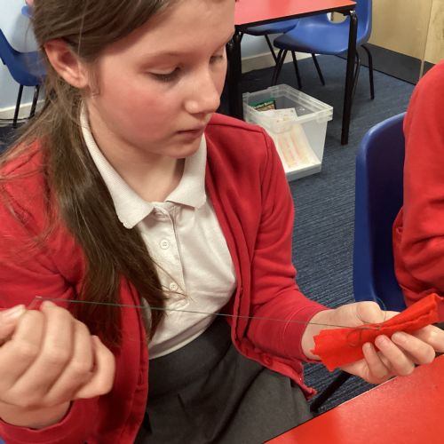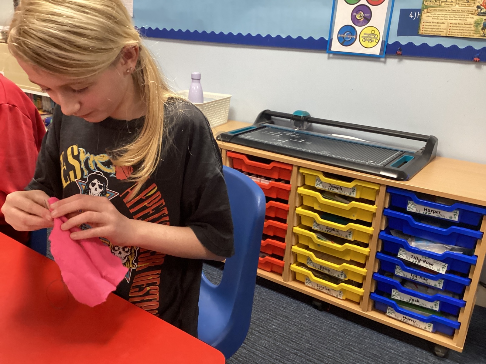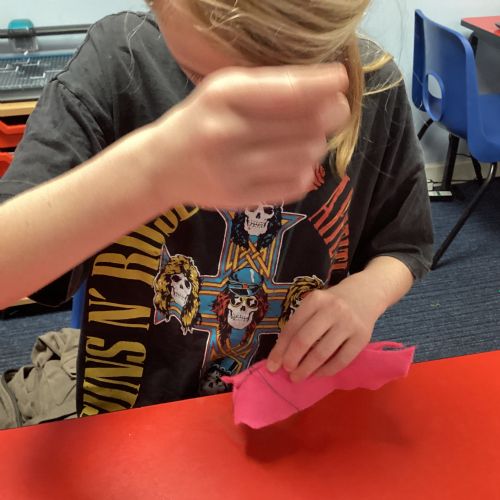 This week we developed the skill of joining textiles together using the invisible stitch. In DT, we are going to be designing and making a phone case. We chose the invisible stitch as it would be invisible and make the seam look neat. We had to persevere a lot today, and it took practice, but most of us were successful.