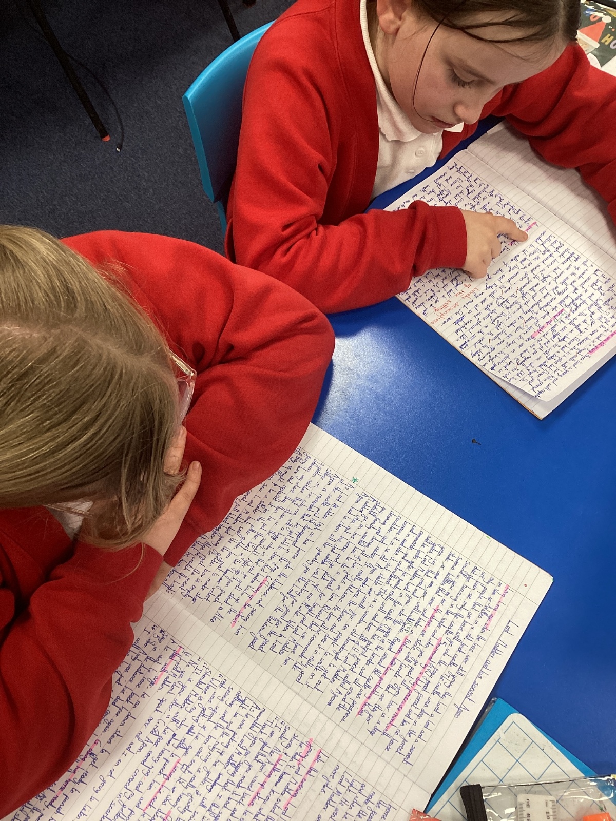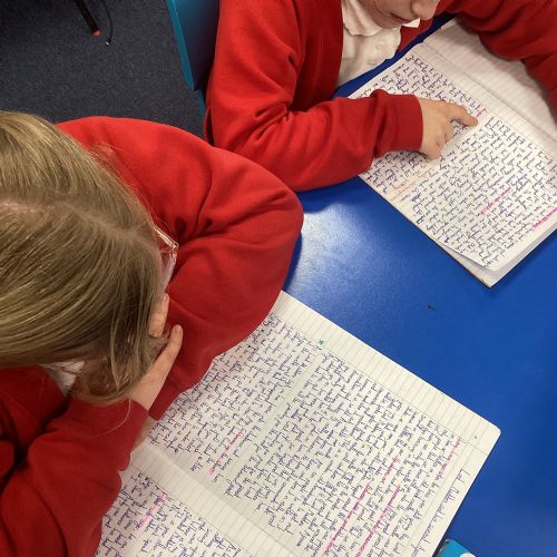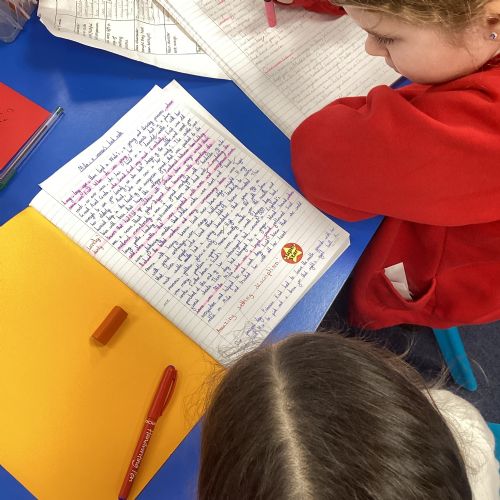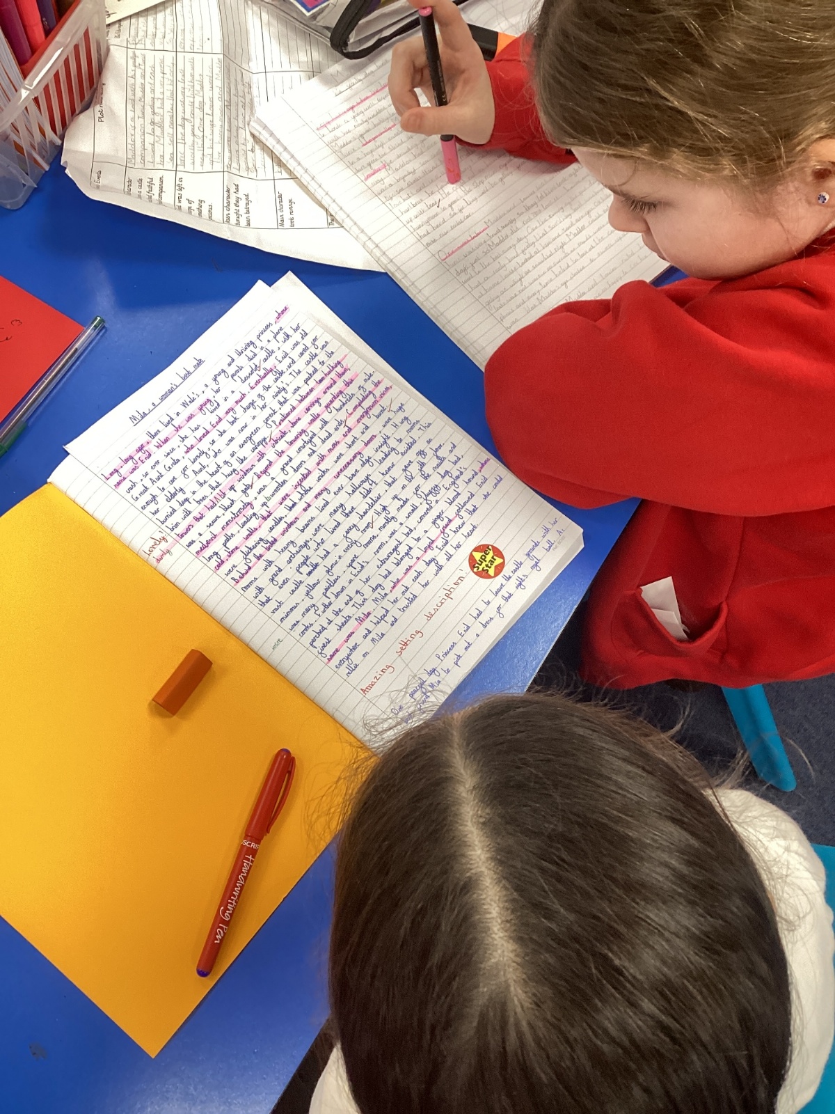 The children finished their legend stories in English and shared these with their peers.