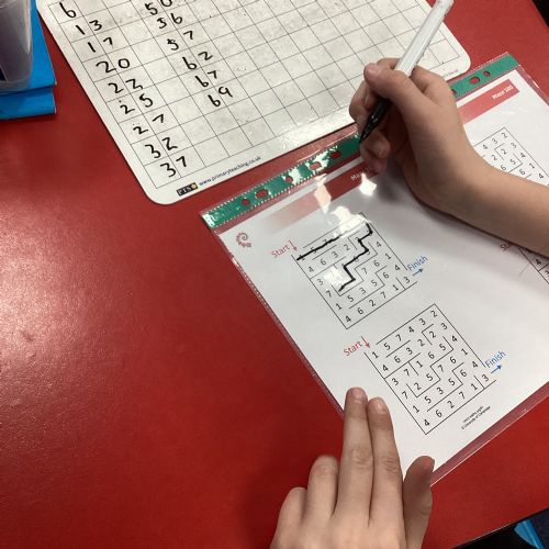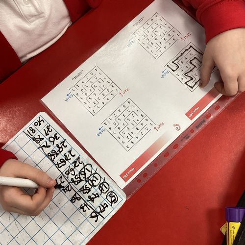 In Maths, we were problem solving to work our way through the maze whilst also reaching the number 100. The children showed great resilience and determination with this challenge.