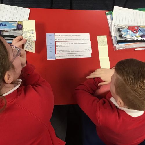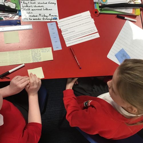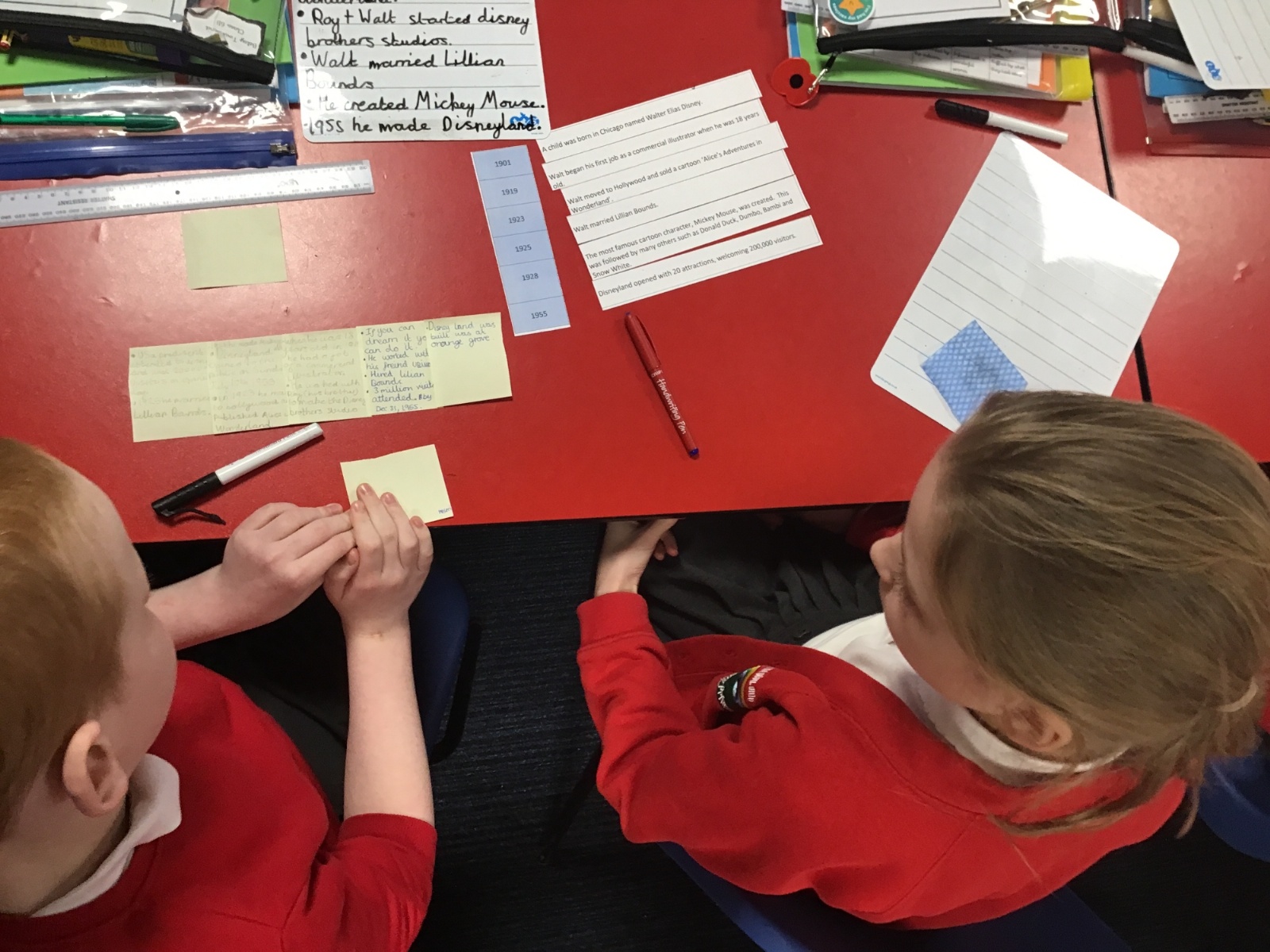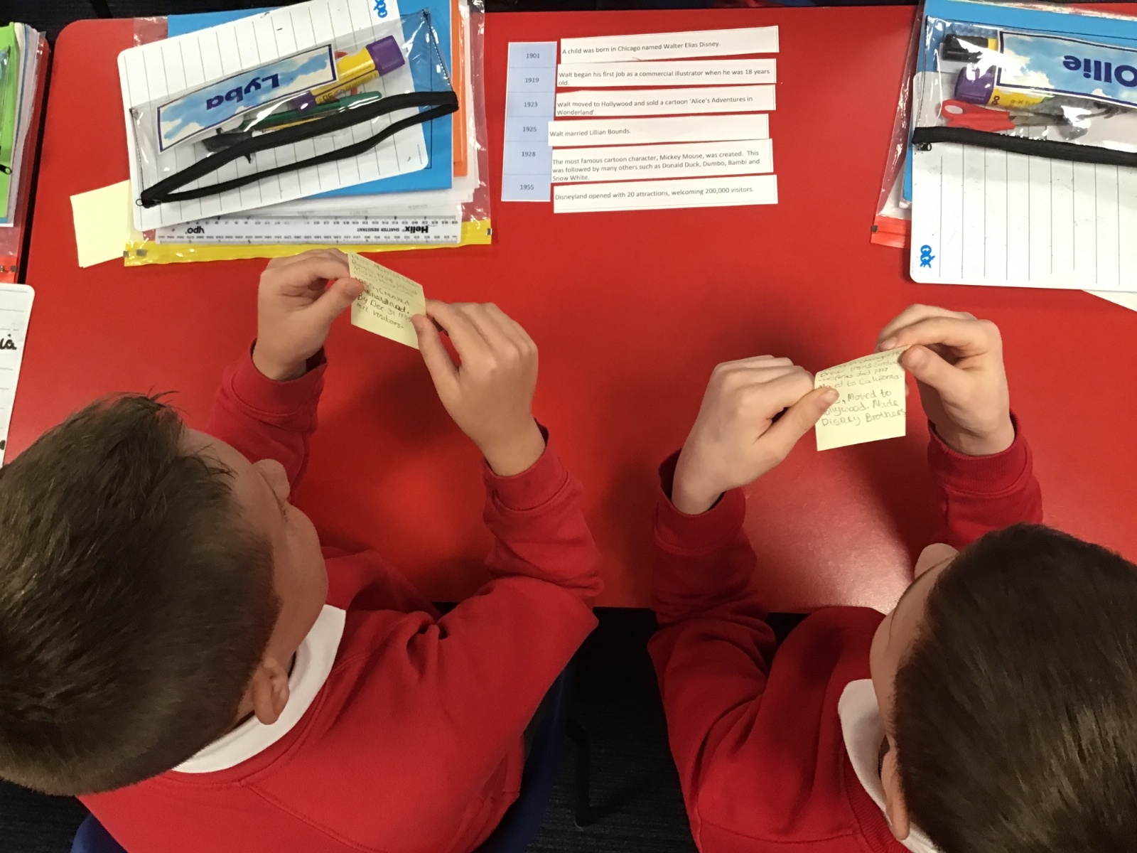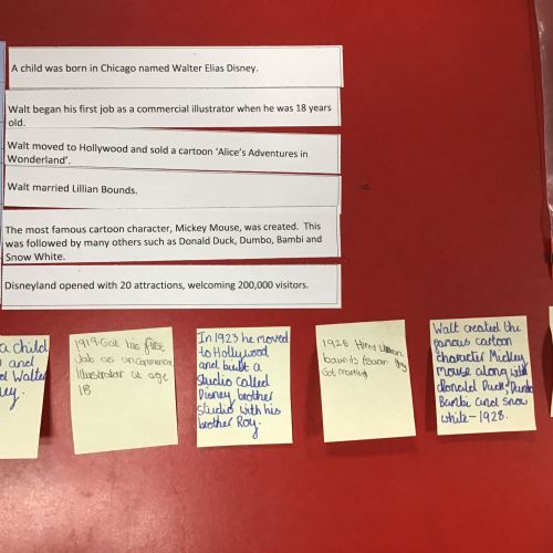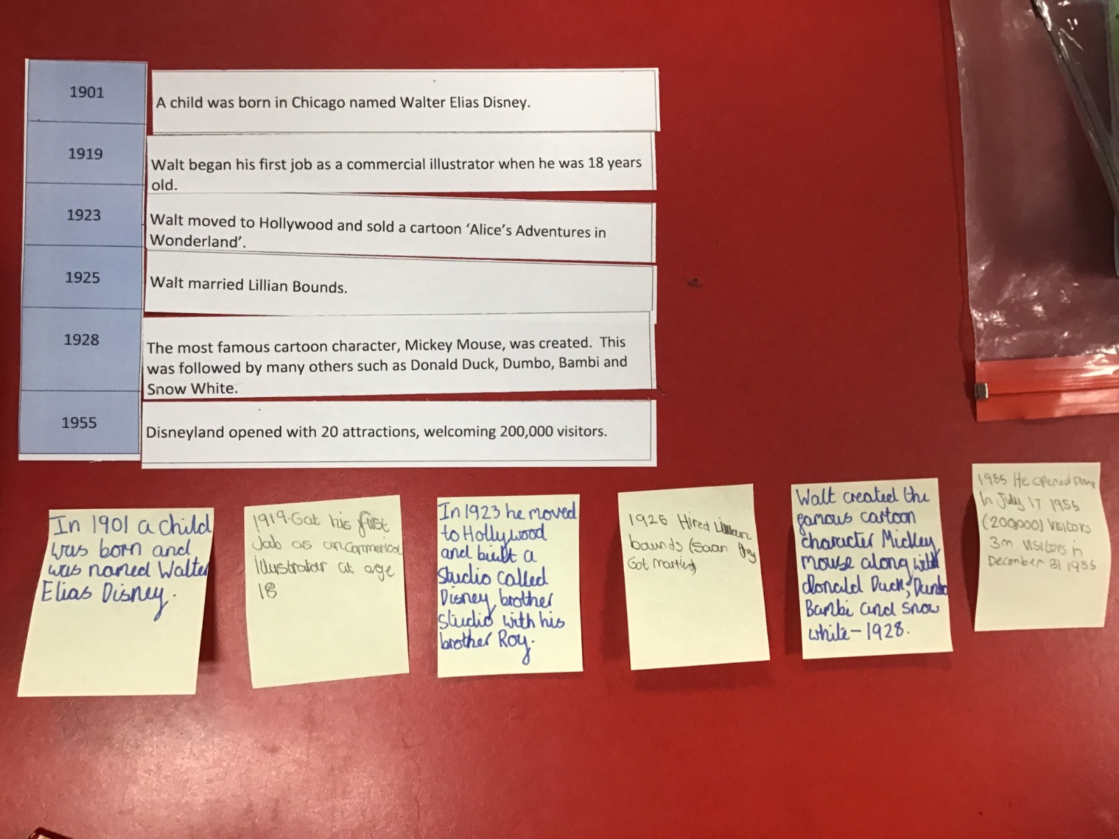 This week, we prepared an oral biography about Walt Disney. We began by sorting facts into correct dates and then adding more information to the facts. When we orally delivered the biography, we focused on linking information using cohesive devices.,