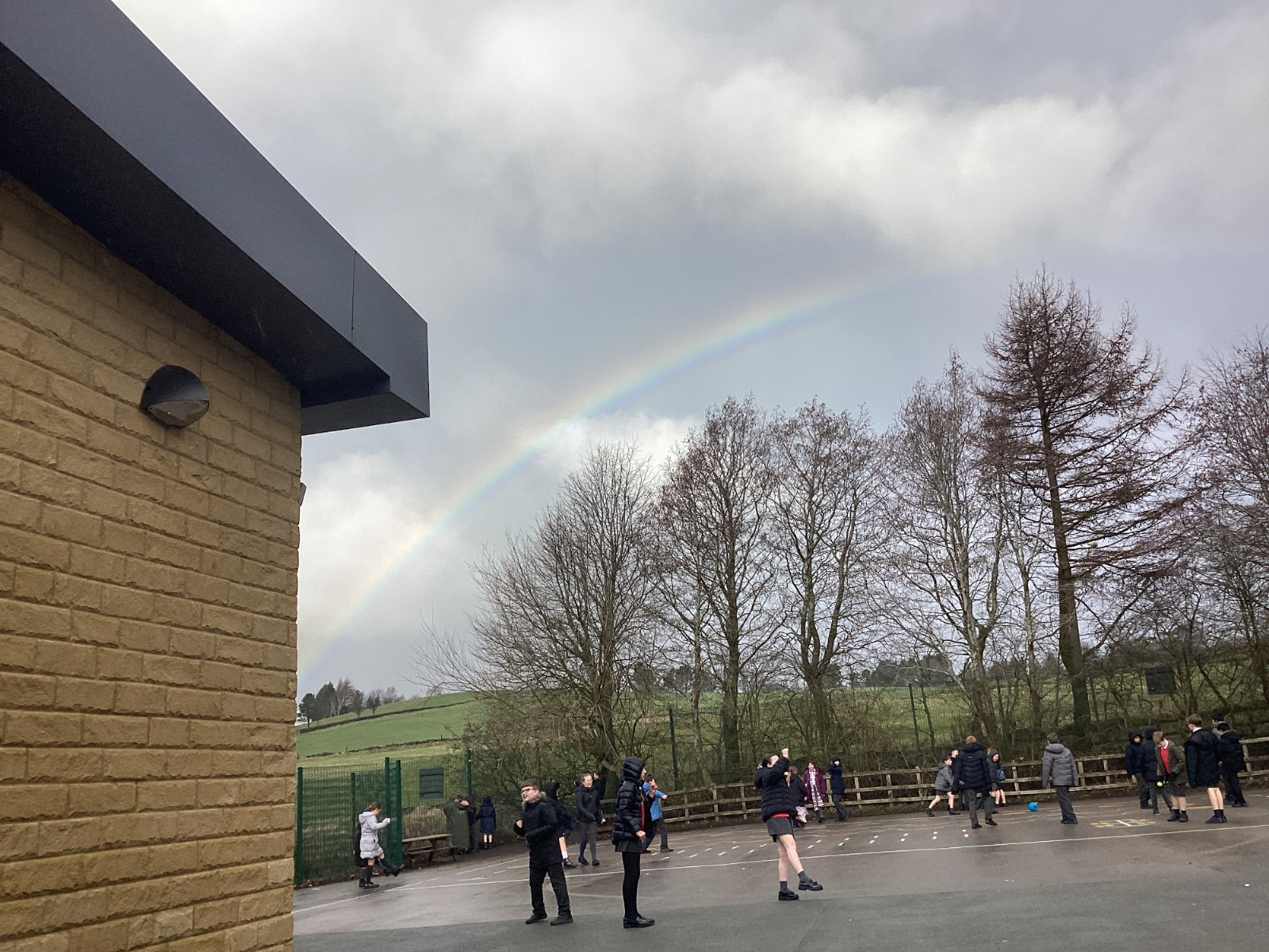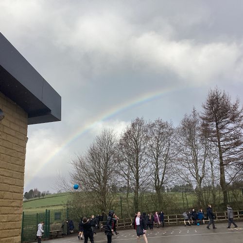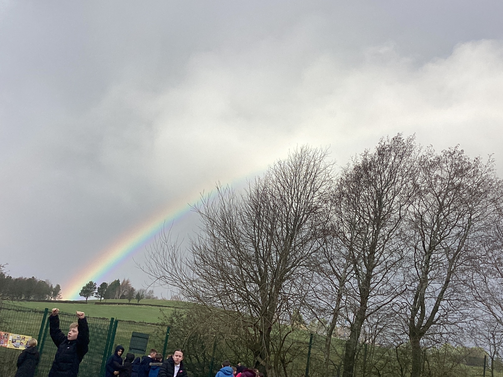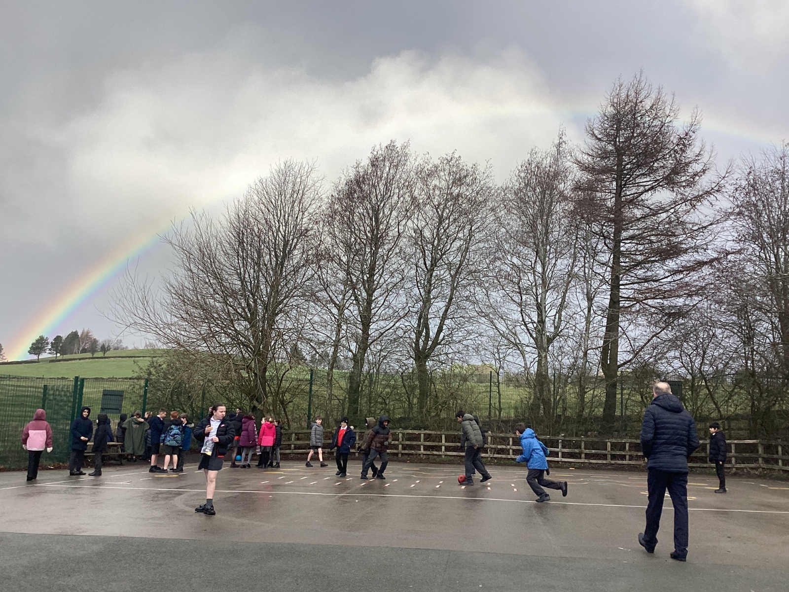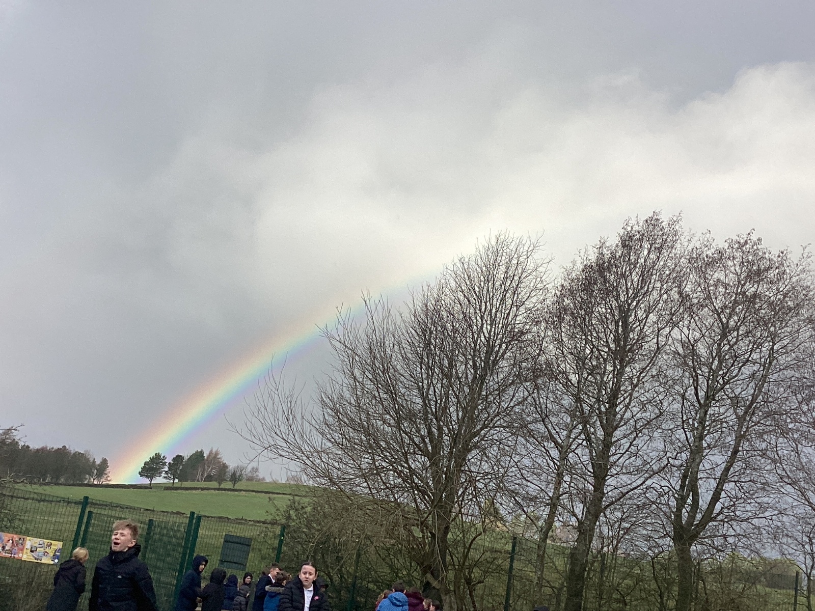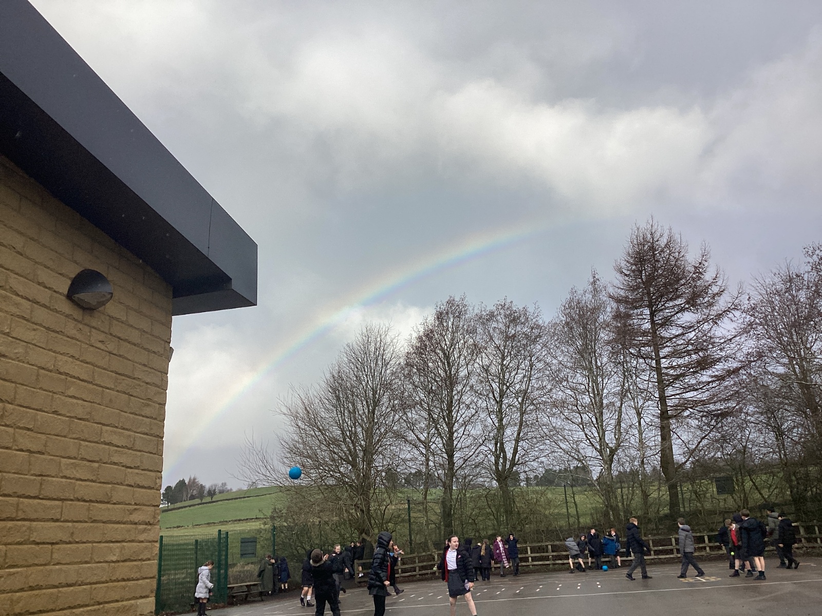 A rainbow right across the sky at break time. Francesca ran to get the iPad and took some cracking pictures!