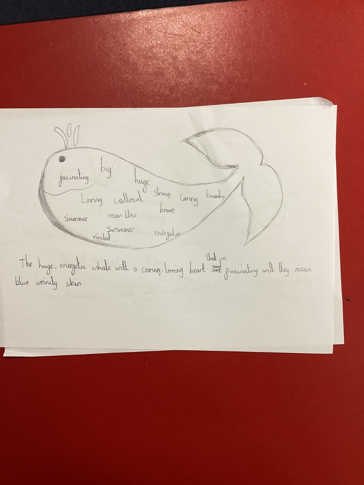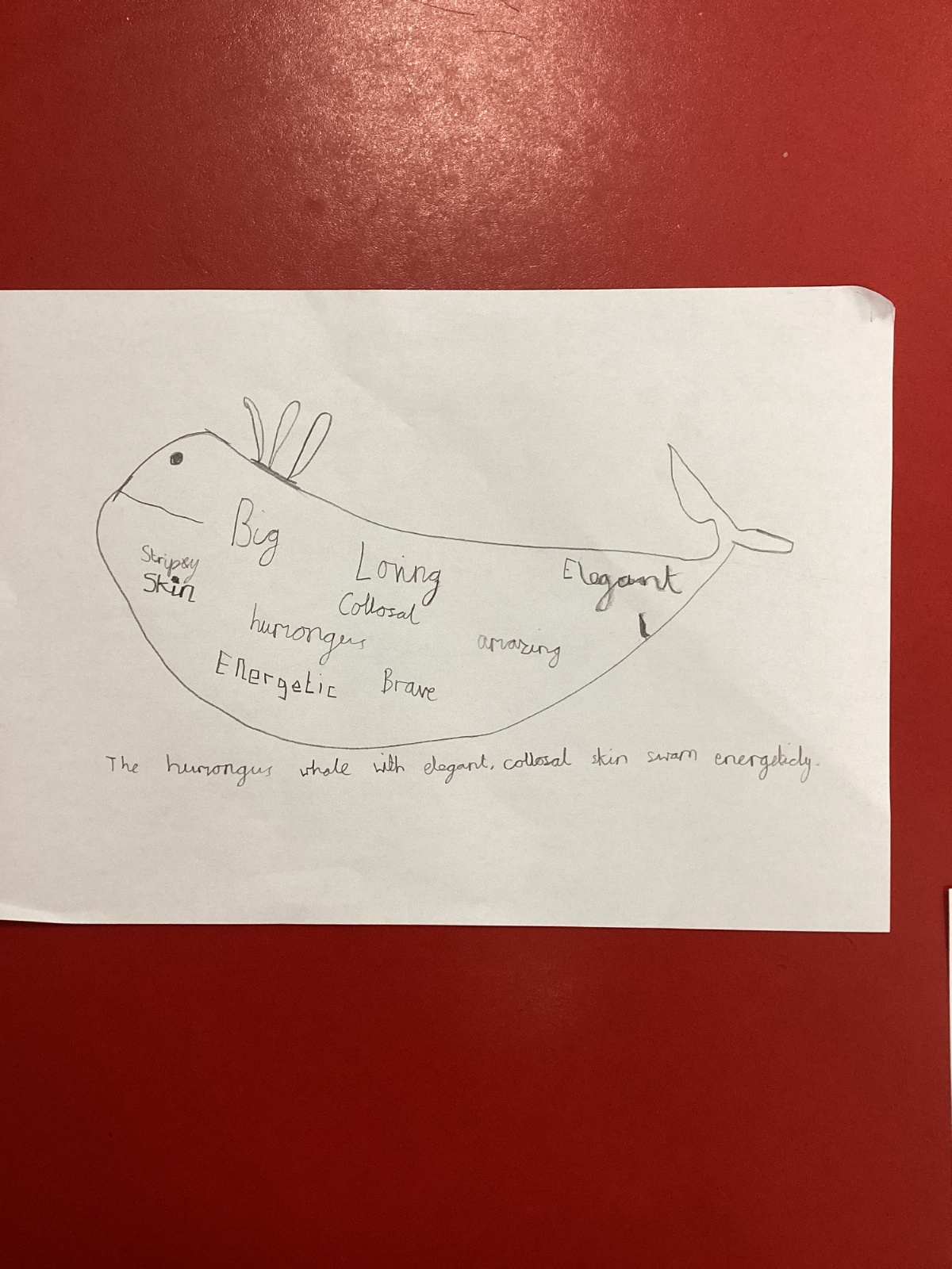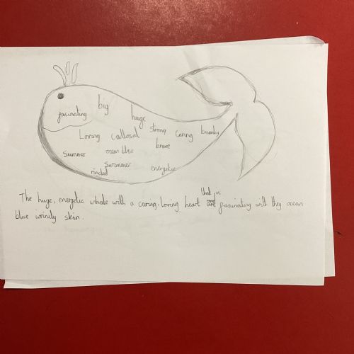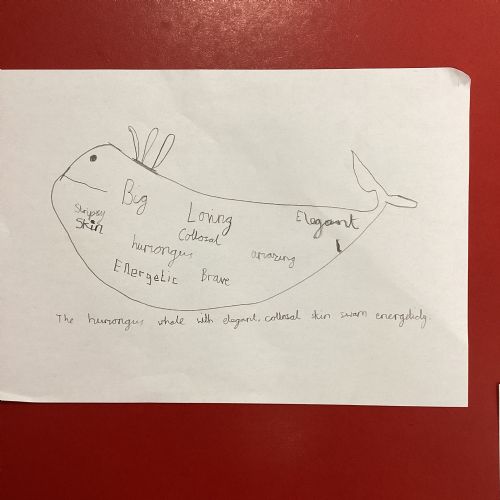 This week we had a workshop with the author Jenny McLachlan who has been hosting Friday book club's. In this session, we learnt how to draw a whale and then developed vocabulary to describe a whale.
