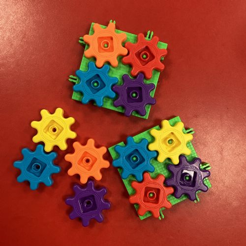 We learnt about gears in Science; how they work and what they are useful for. We found out that gears have 'teeth' that stick out and that when one gear turns the other interlocked gear turns too.