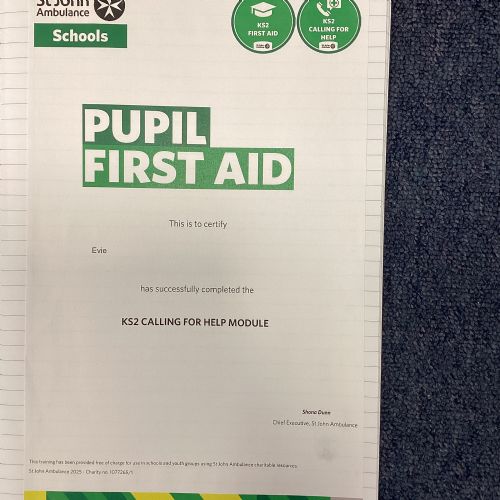 We also completed our PSHE unit on First Aid and got awarded certificates. We know lots more now about how to treat head injuries, choking and much more.
