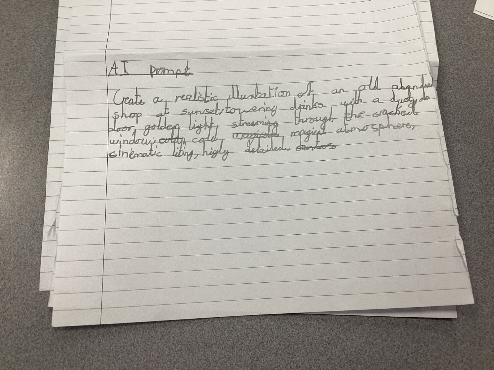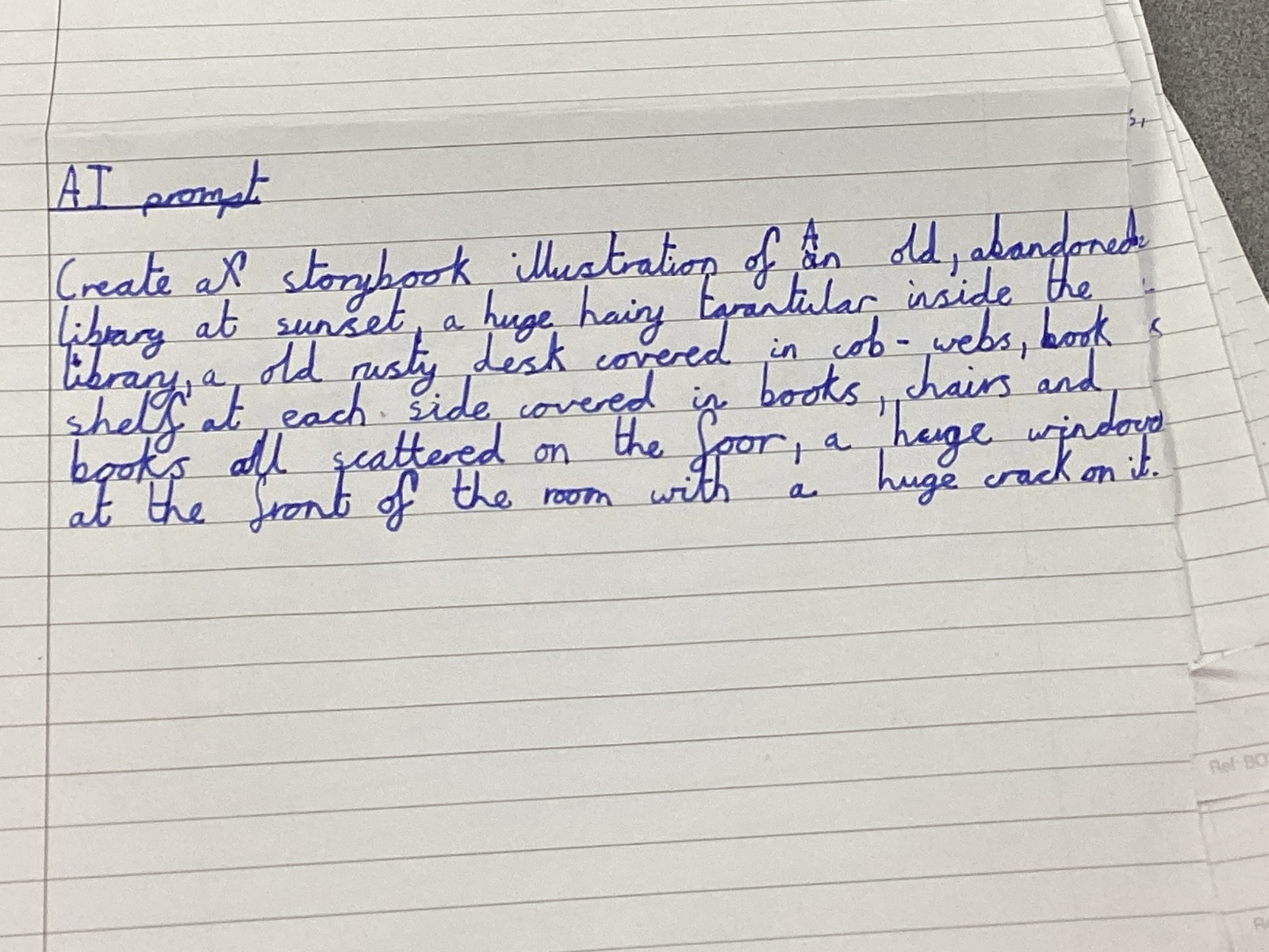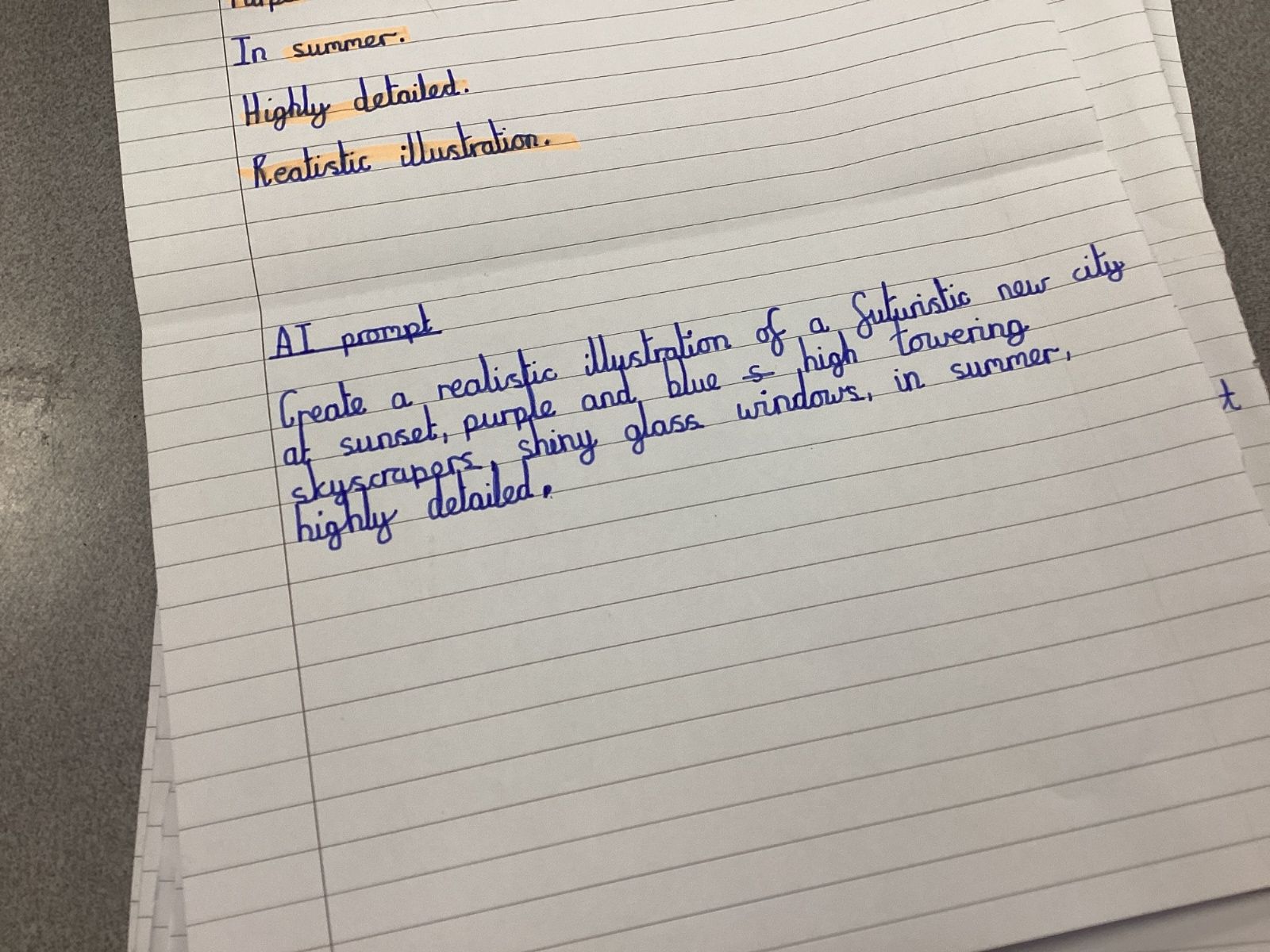As it is Online Safety Week and we have been learning all about how to keep safe on AI. We create an AI prompt to share with an AI software for it to make an AI generated image.