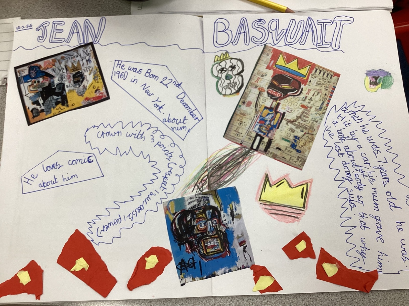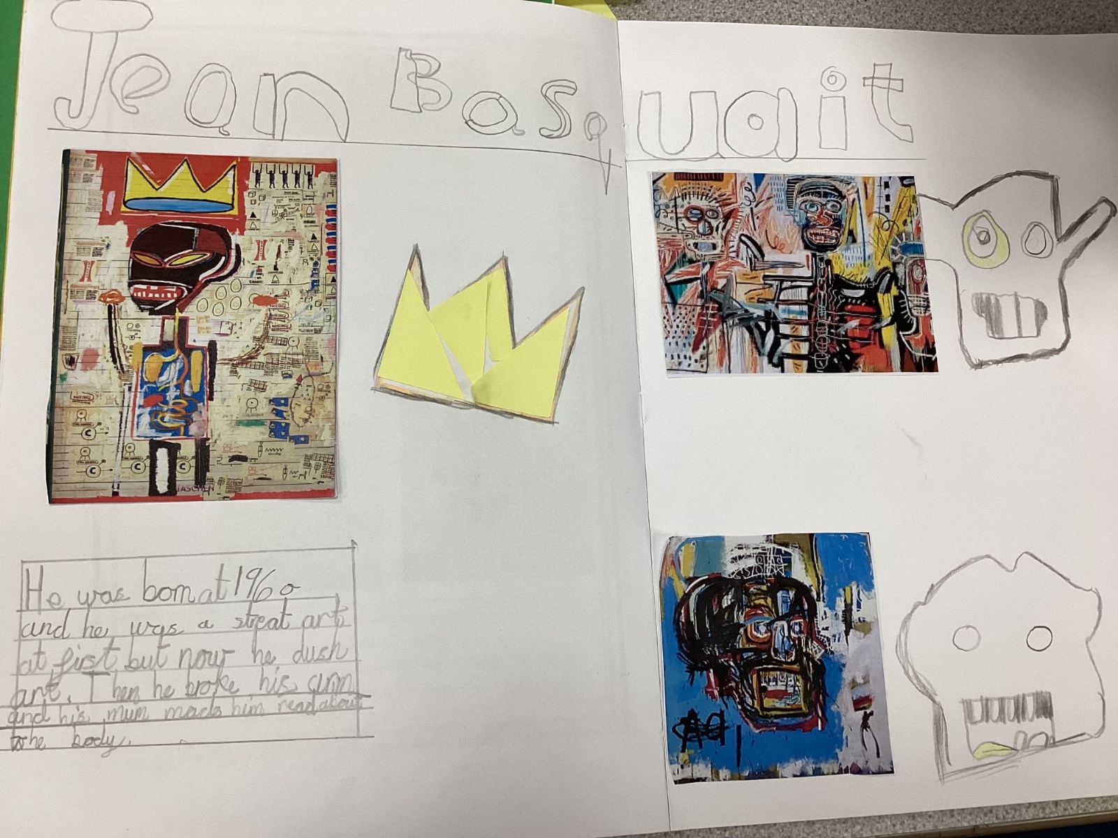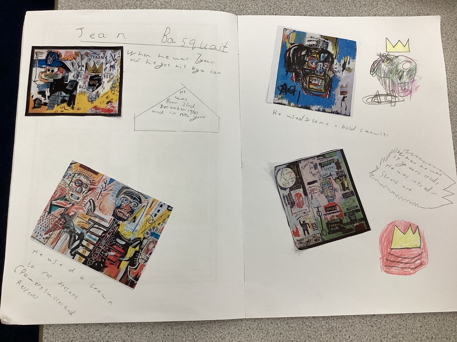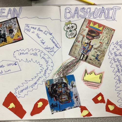 In Art, we started researching the artist Jean Basquait, his life and his style. We then created a page of information about him.