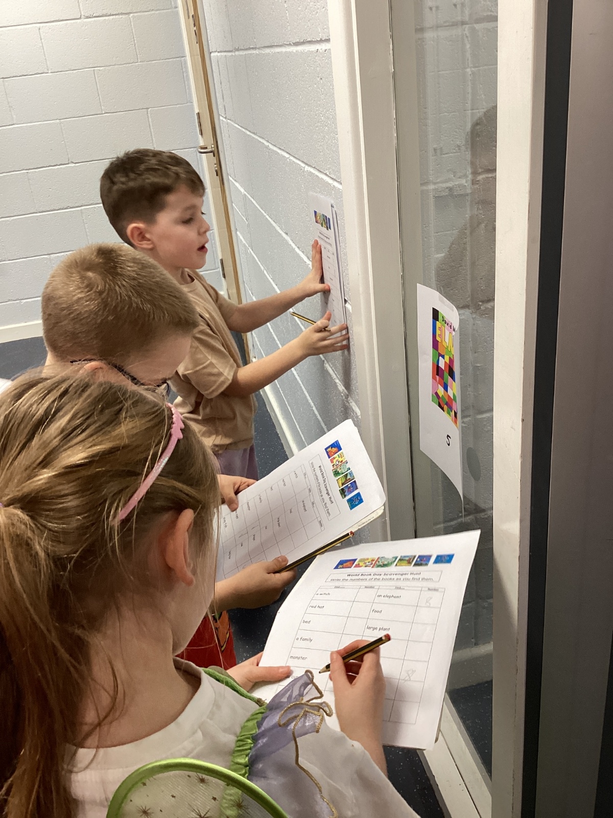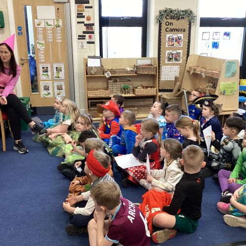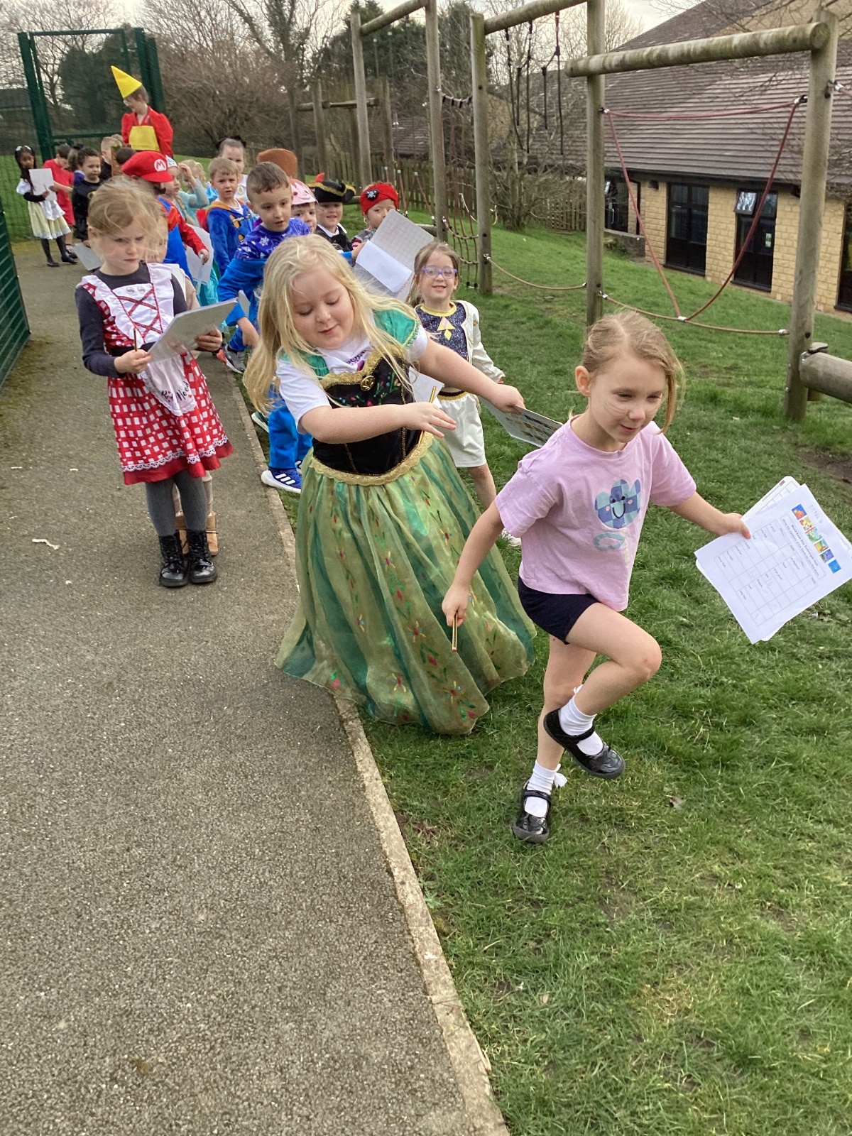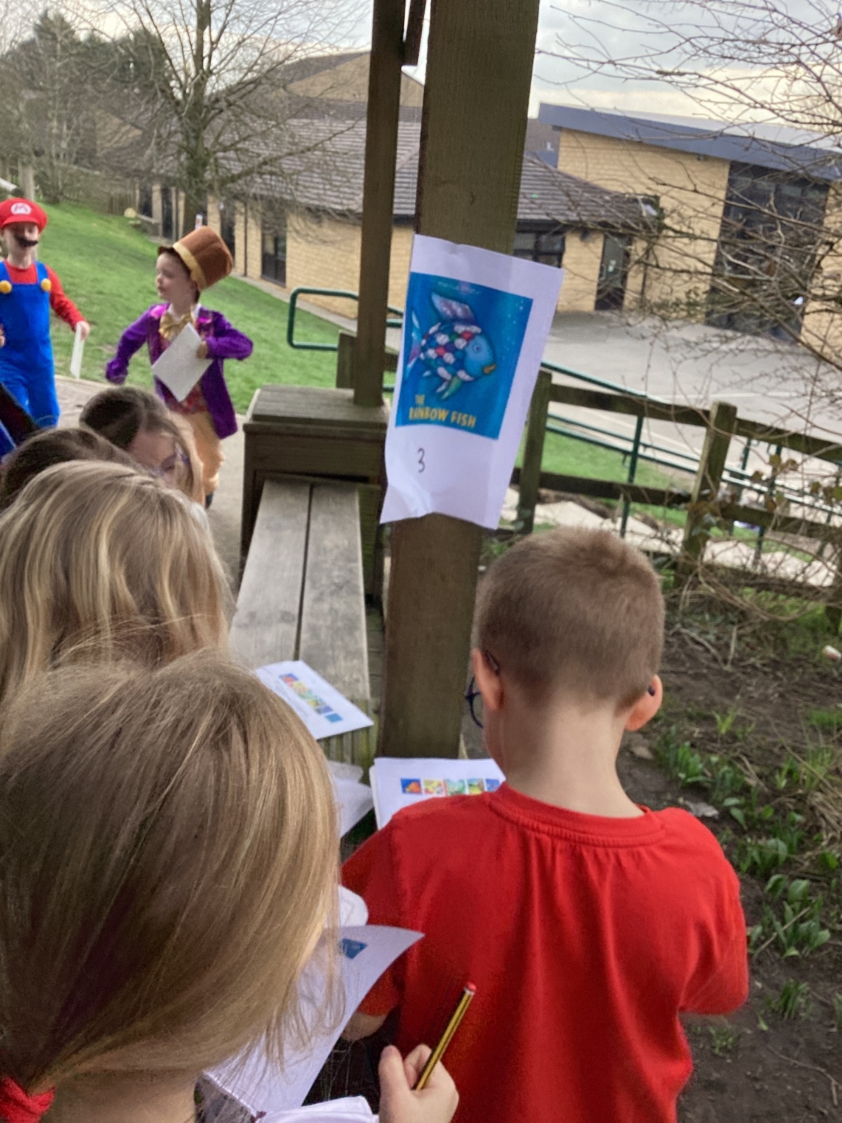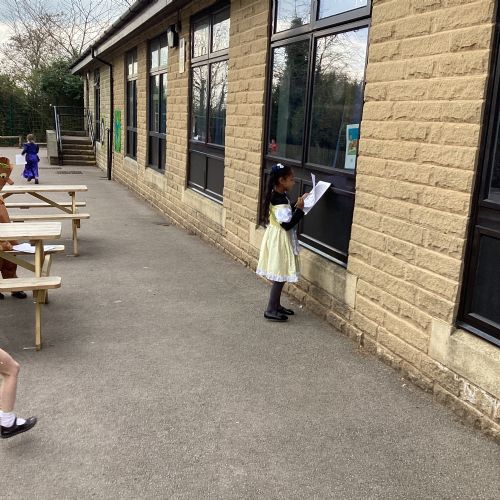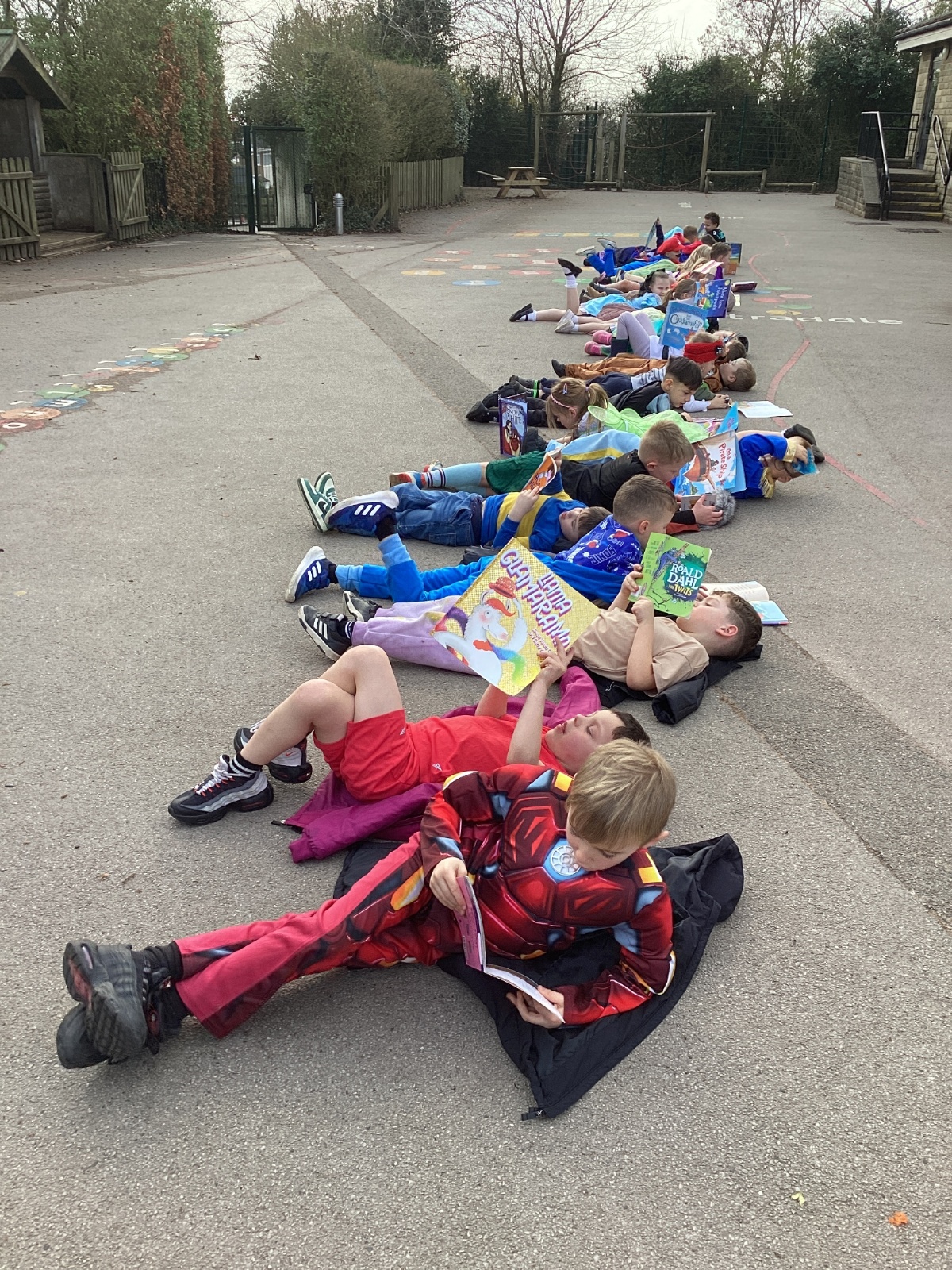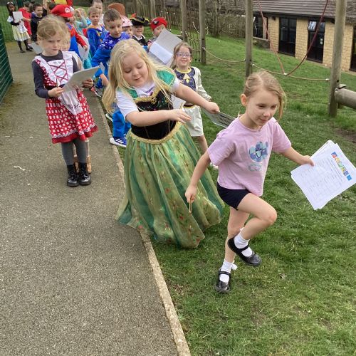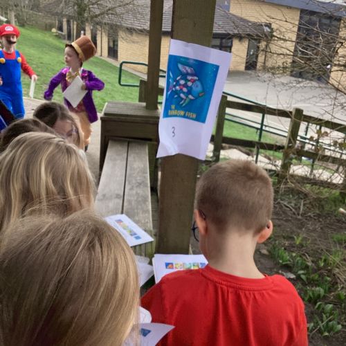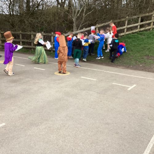 World Book Day fun! We visited Class 1, Class 2 and 1S completing a variety of World Book Day activities. In 1SP we went on a scavenger hunt acting out the story of "We're Going on a Bear Hunt." Then we did some 'extreme reading' of sorts by enjoying the sunshine while reading our books with 1S.