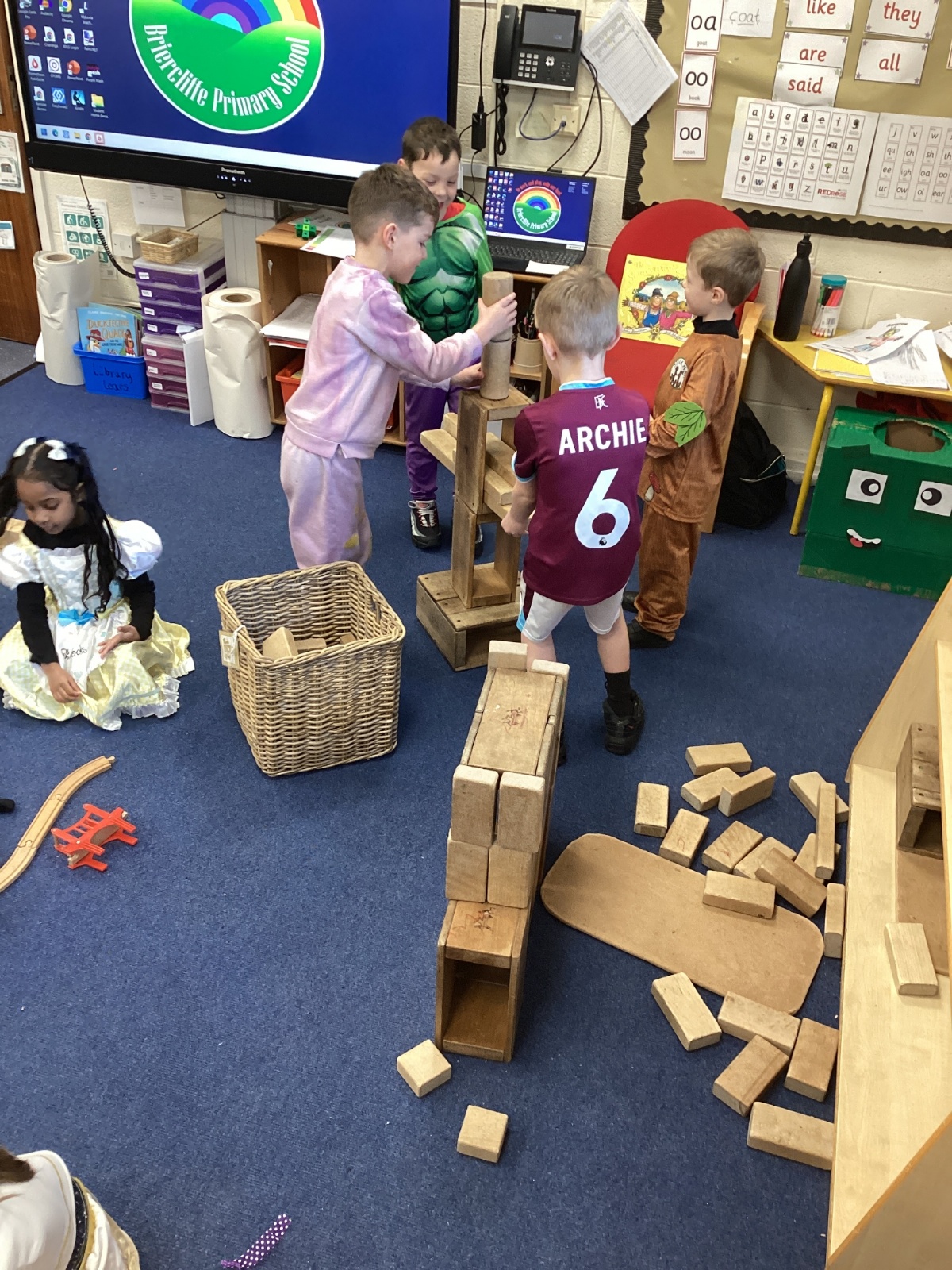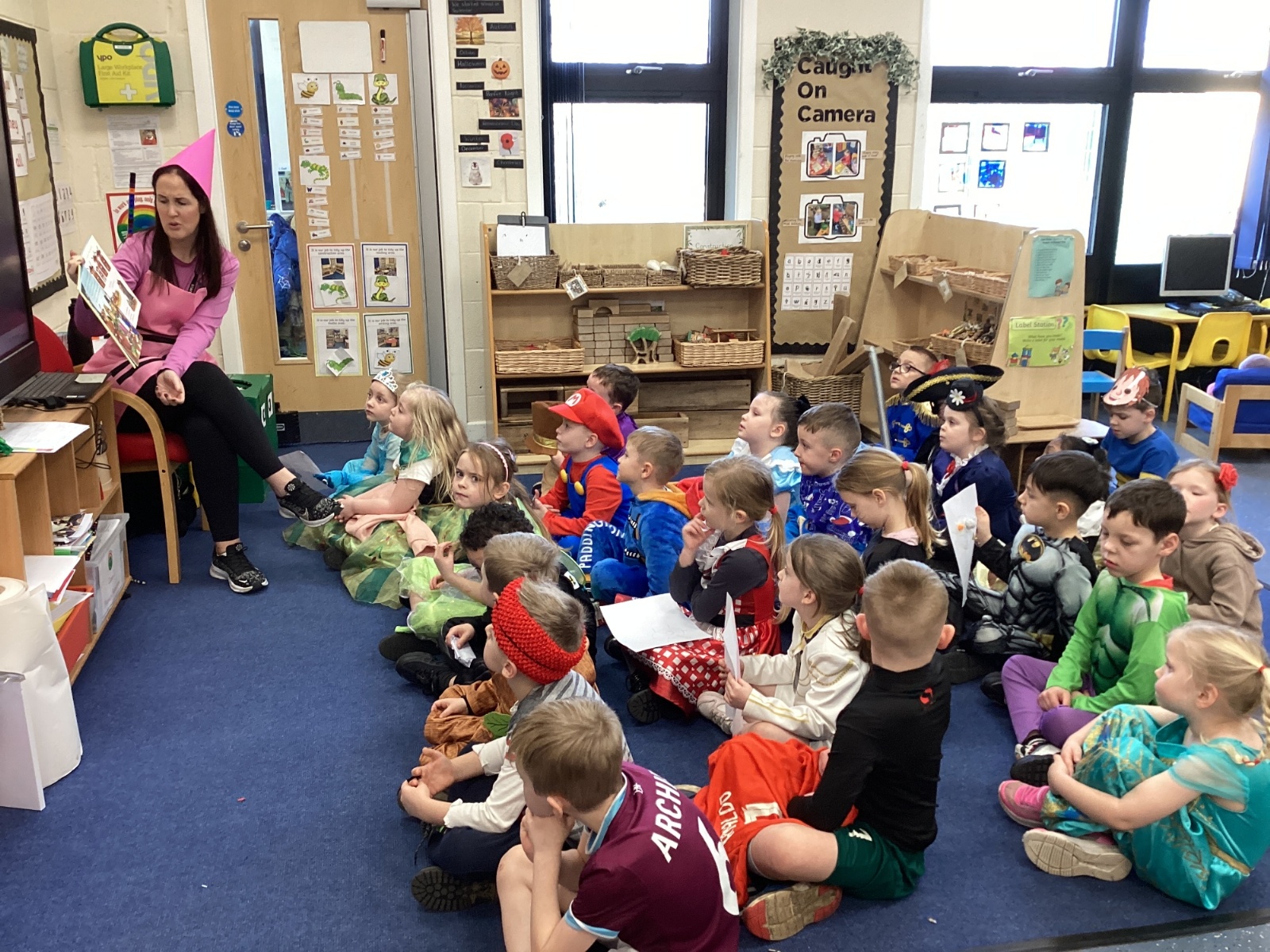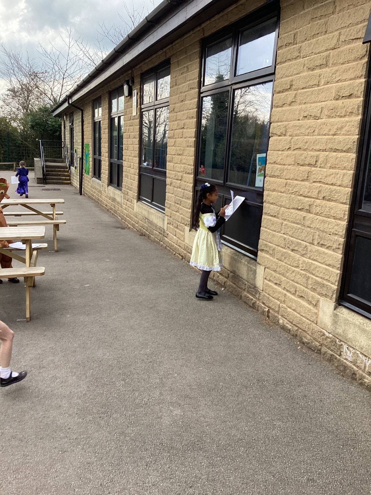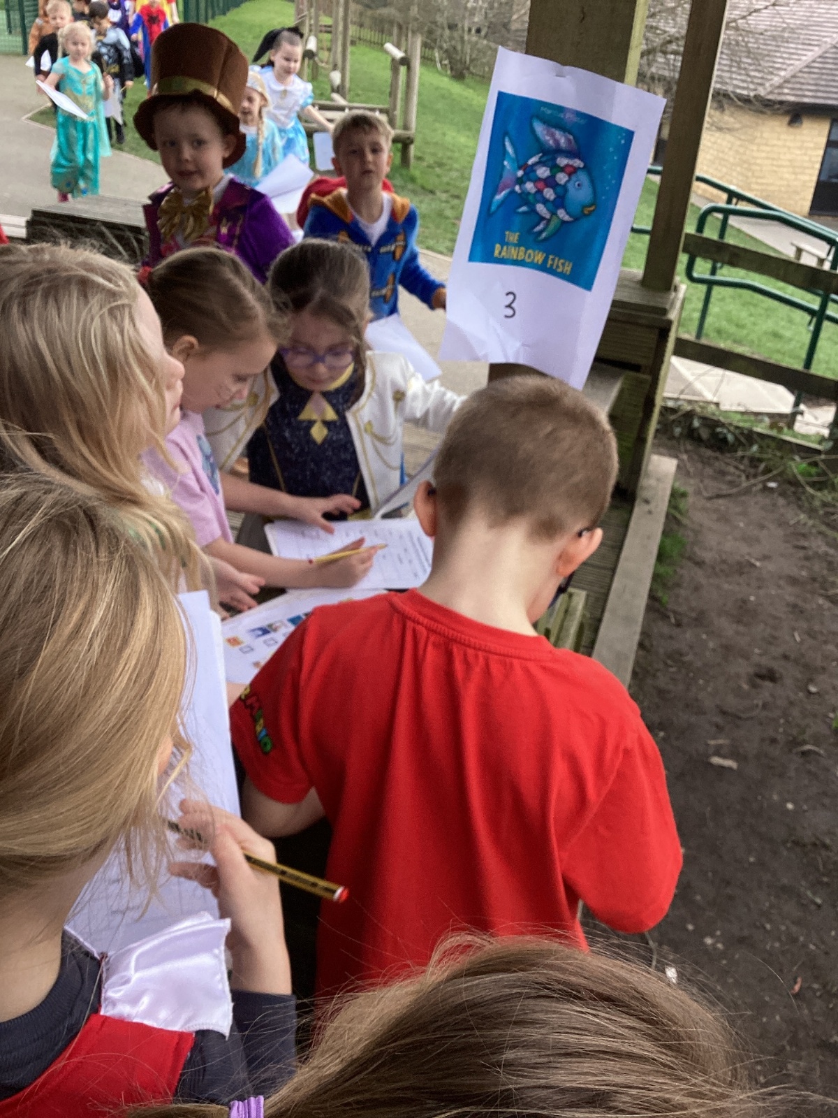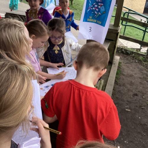 World Book Day fun! We visited Class 1, Class 2 and 1S completing a variety of World Book Day activities. In 1SP we went on a scavenger hunt acting out the story of "We're Going on a Bear Hunt." Then we did some 'extreme reading' of sorts by enjoying the sunshine while reading our books with 1S.