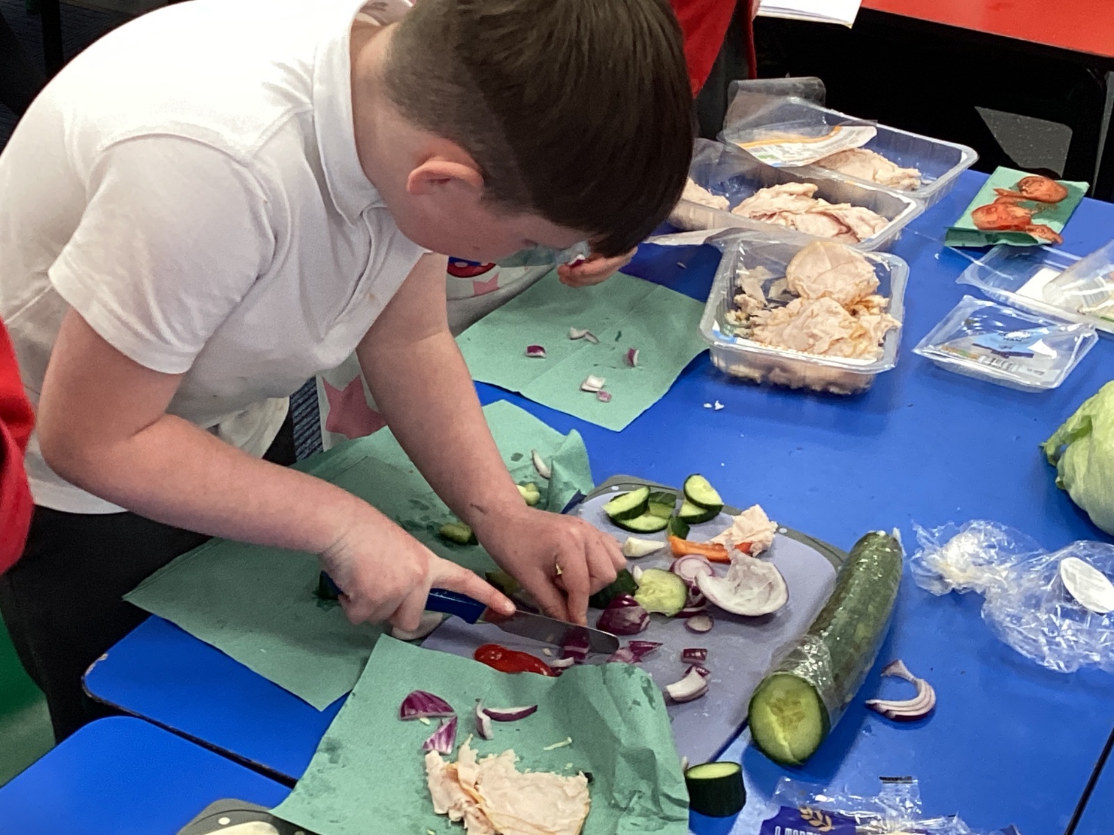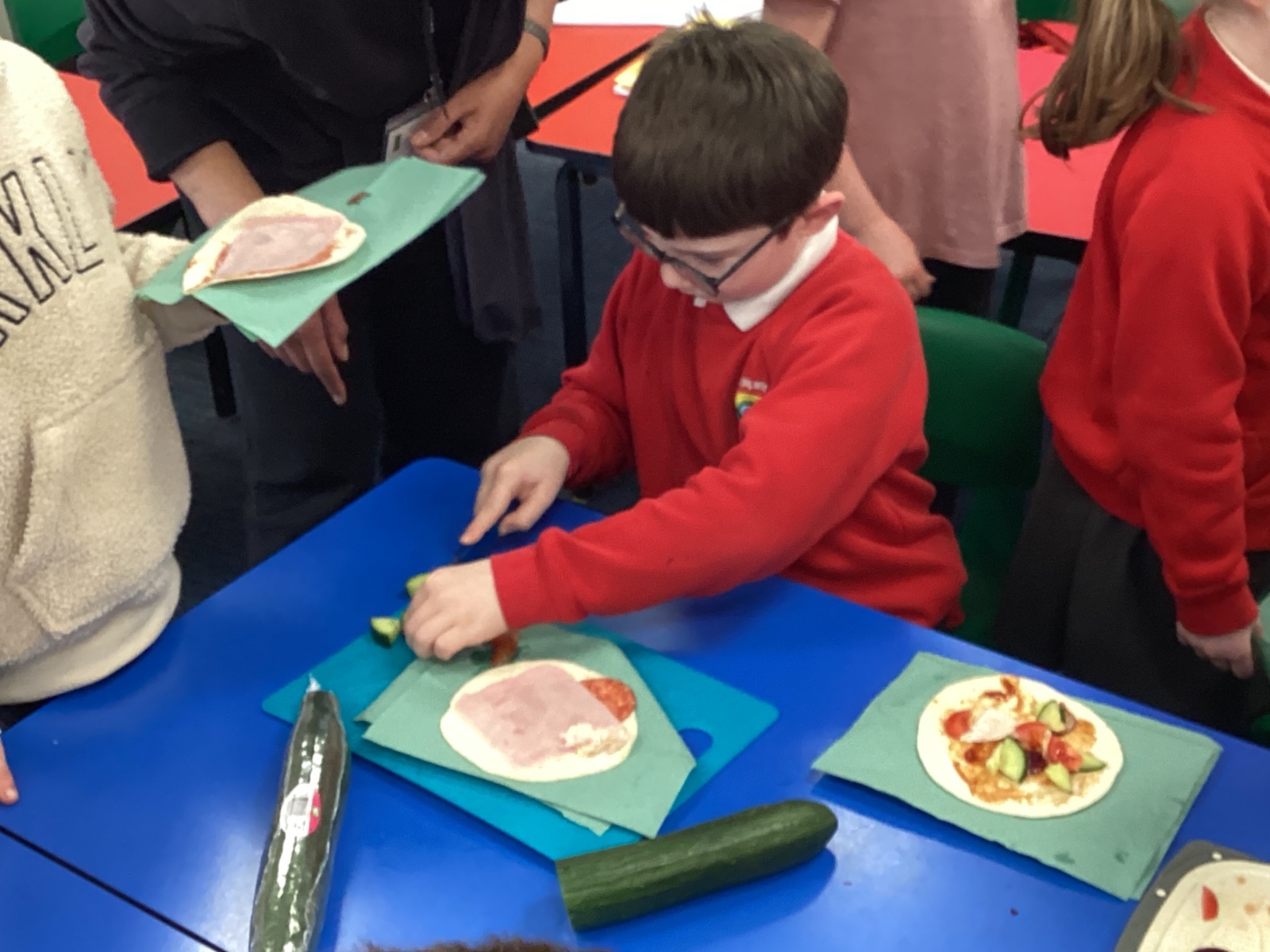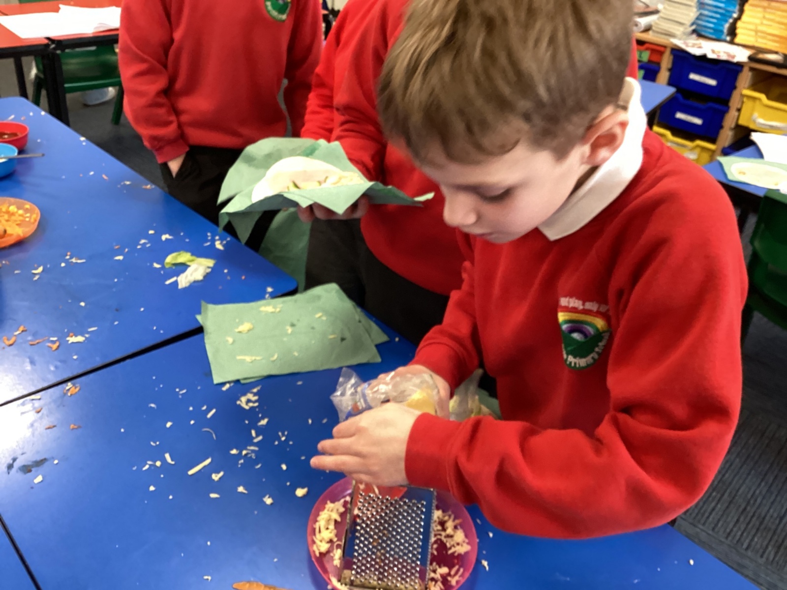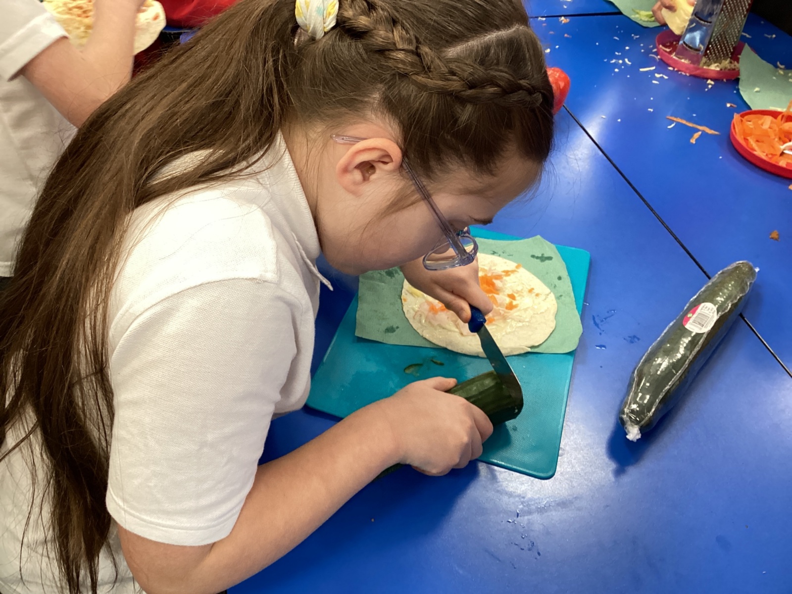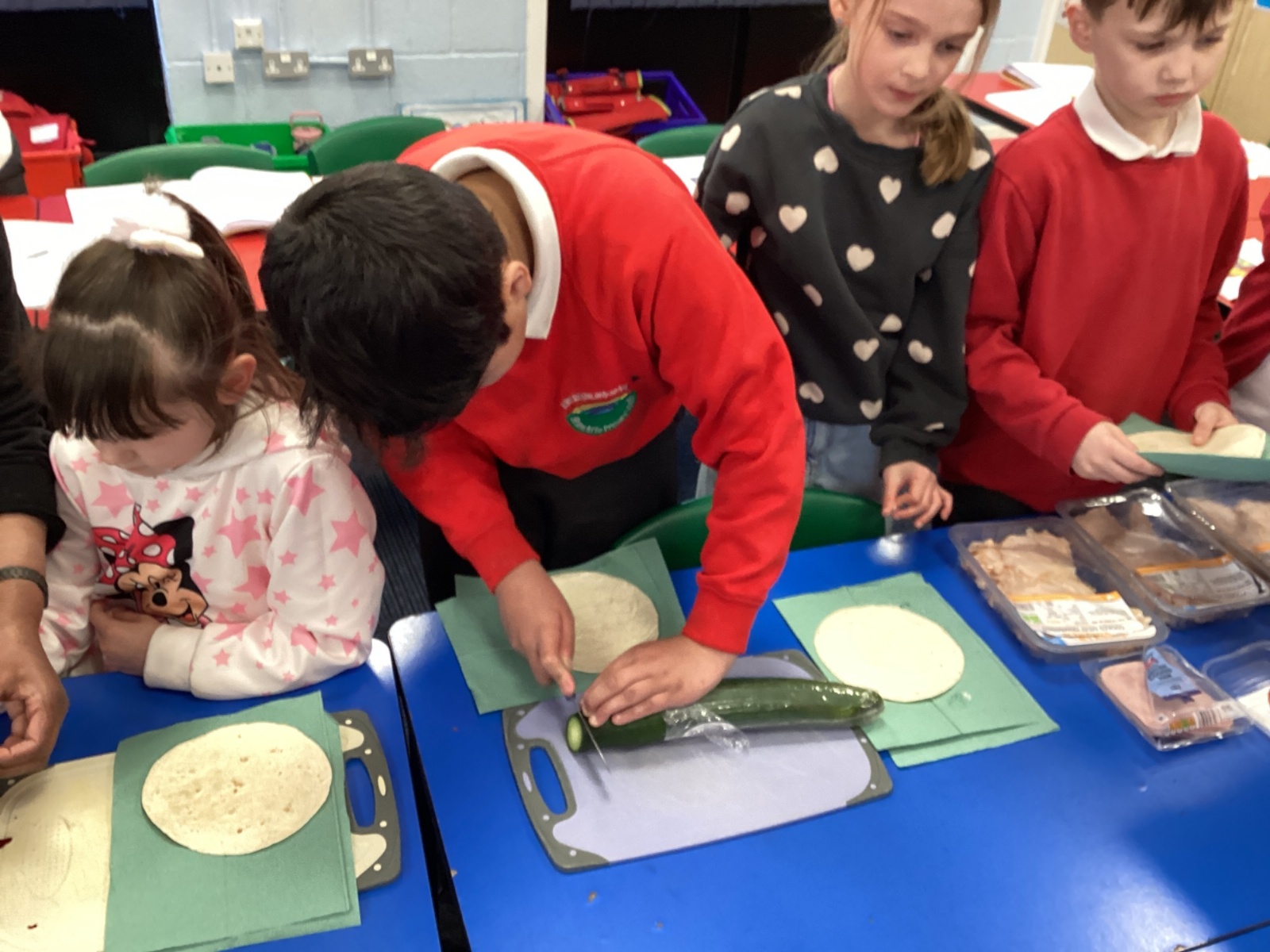 In D.T. the children produced their own booming bread based lunch using a range of healthy foods. They used knives, graters and peelers to prepare their ingredients and then explored the best ways to serve their final product. Michelin star pending...