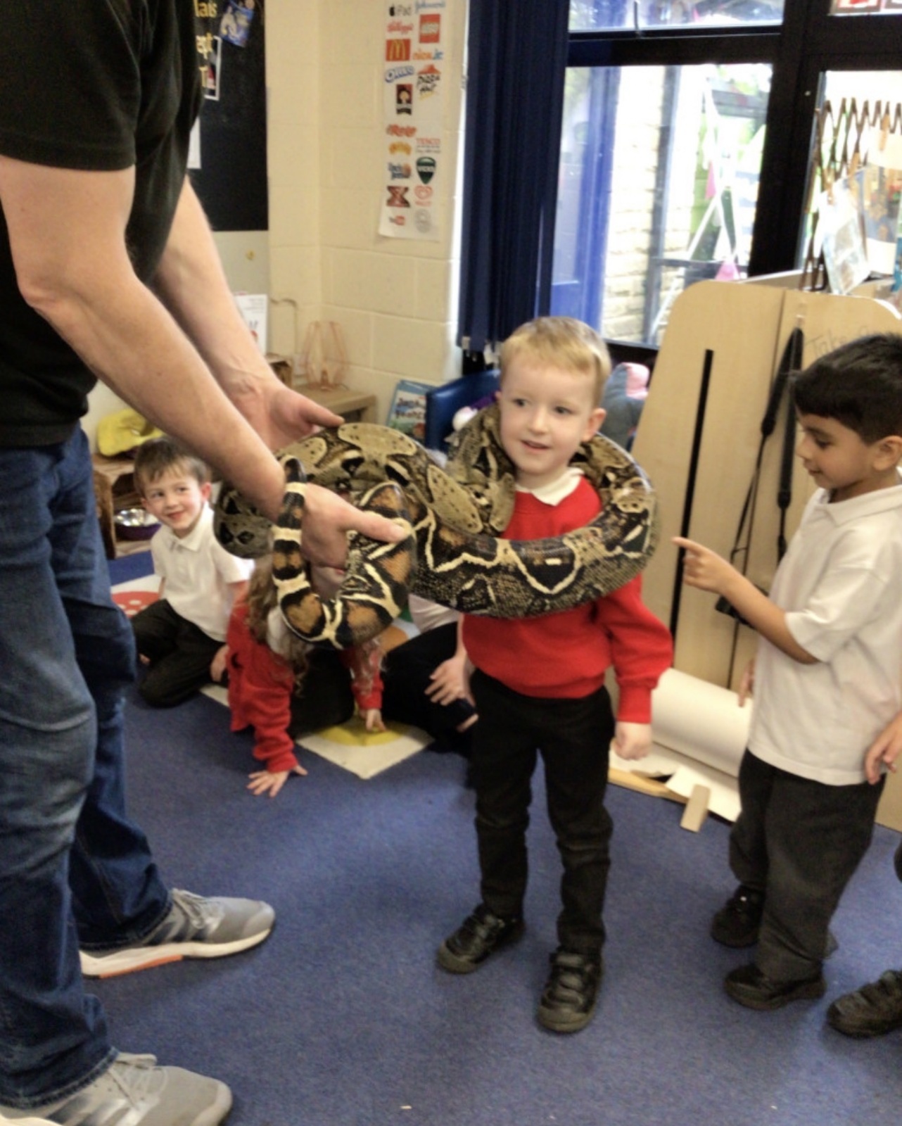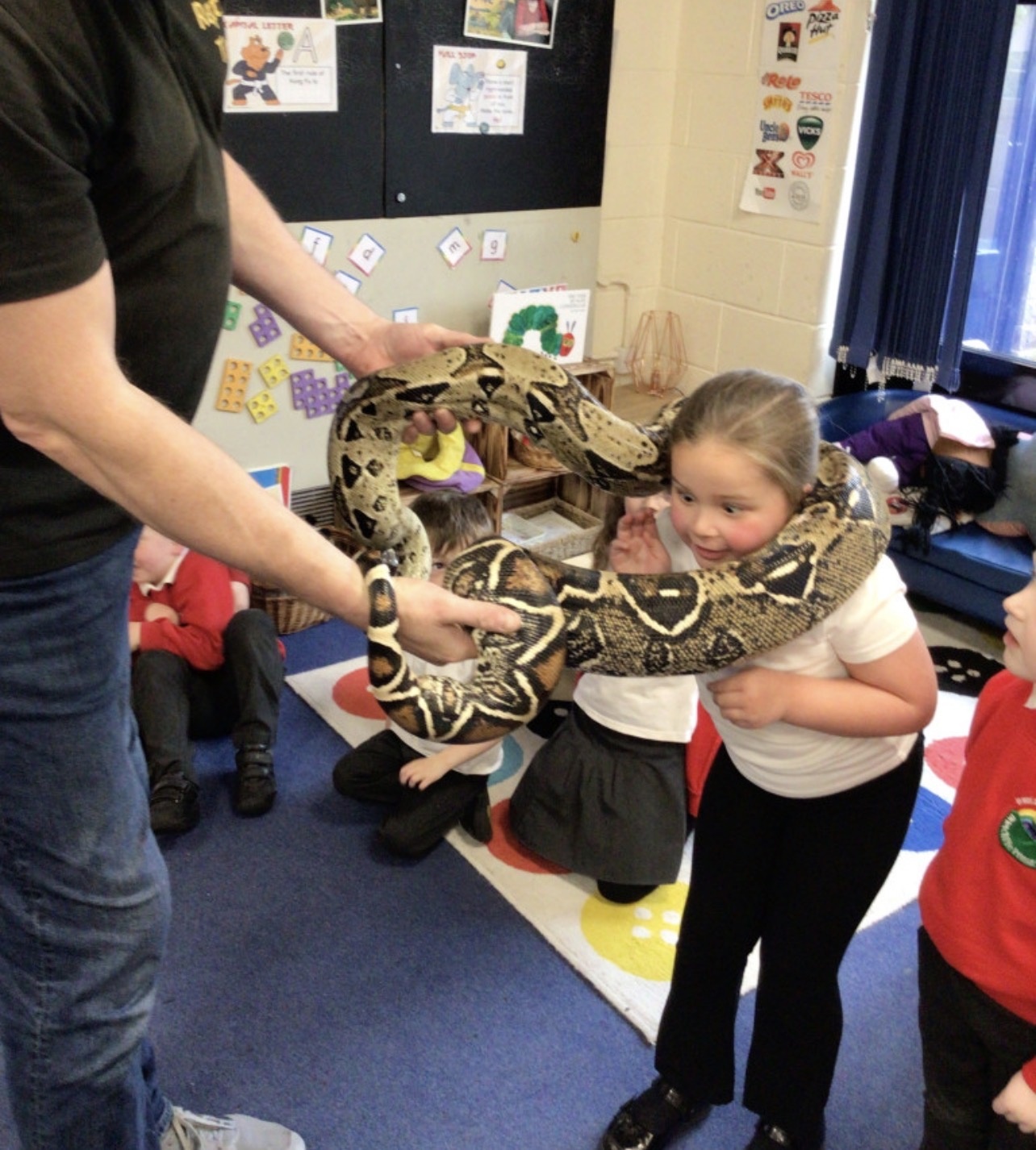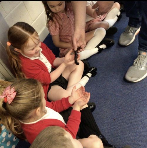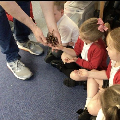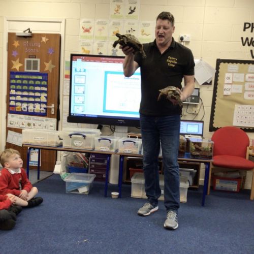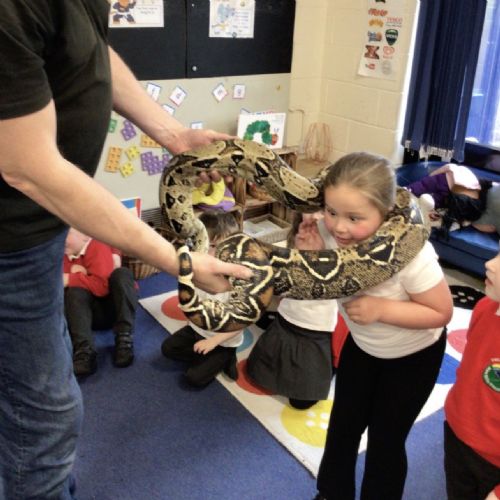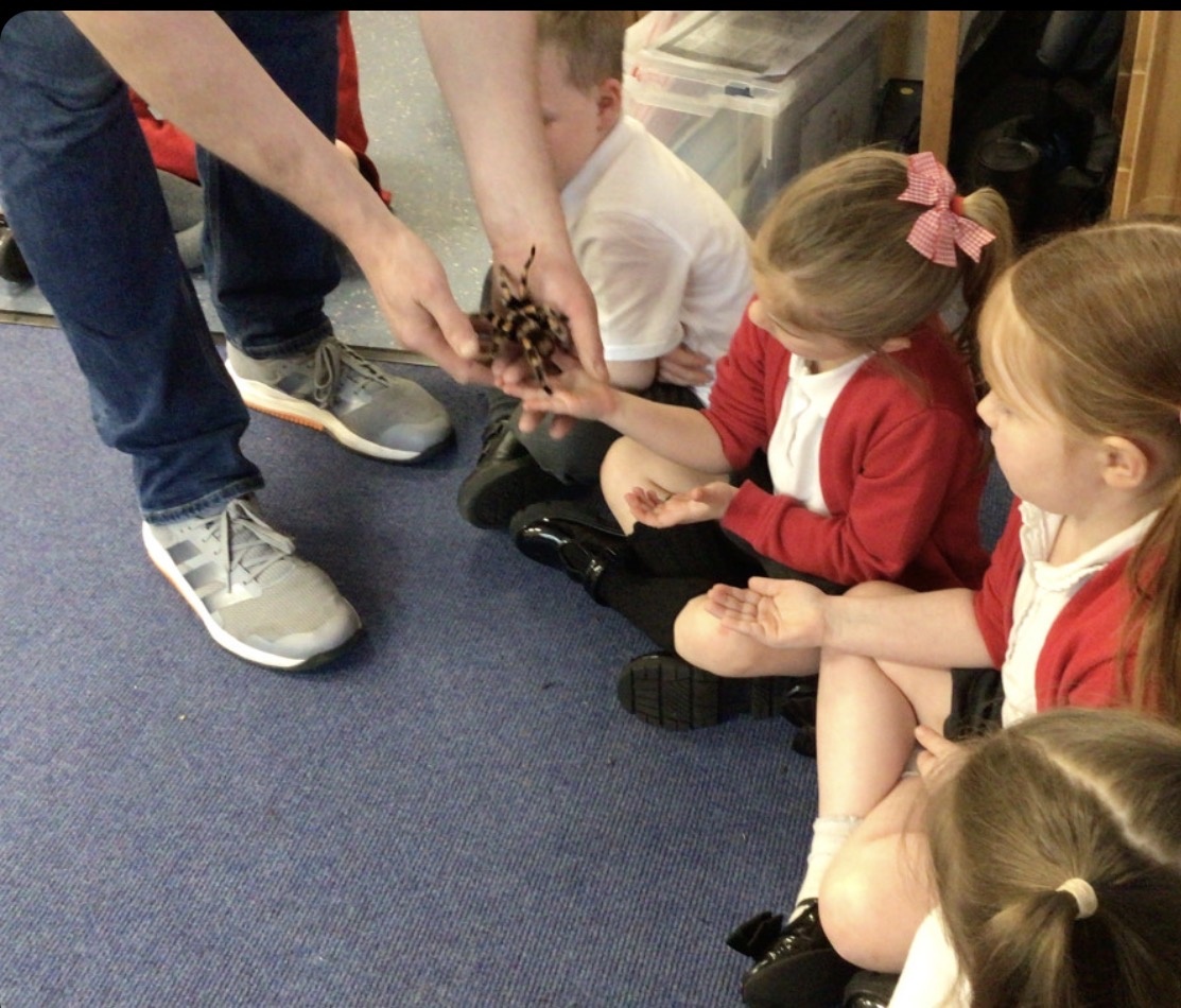 We had a visit from Dylan and his reptiles. He brought a selection of different reptiles including, a bearded dragon, African bull frog, two snakes, a tarantula and many more. He told lots of information whilst letting the children look, touch and hold the reptiles if they wanted to.